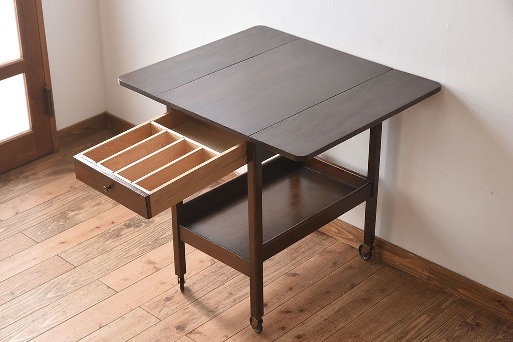 ラフジュ工房> オープンラック・シェルフ> ワゴン > アンティーク家具 バタフライサイドテーブル ウォールナット材製 イギリスアンティーク