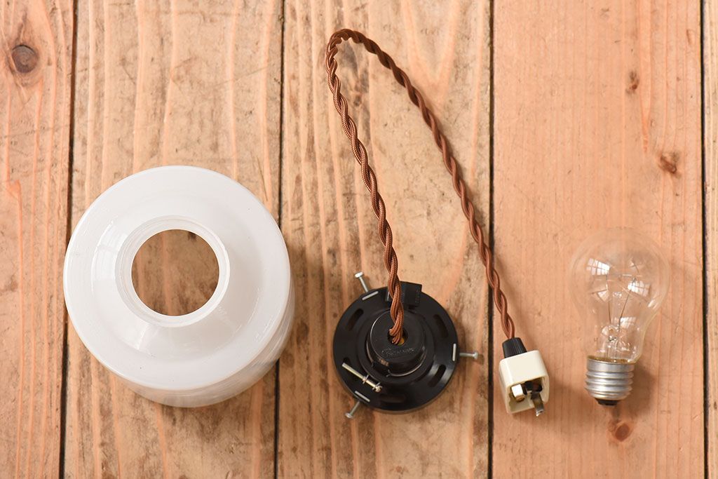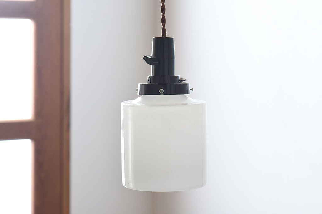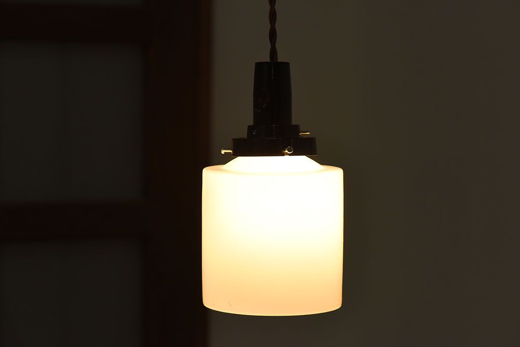 アンティーク 古い吊り下げ天井照明 白いガラスシェード(2)