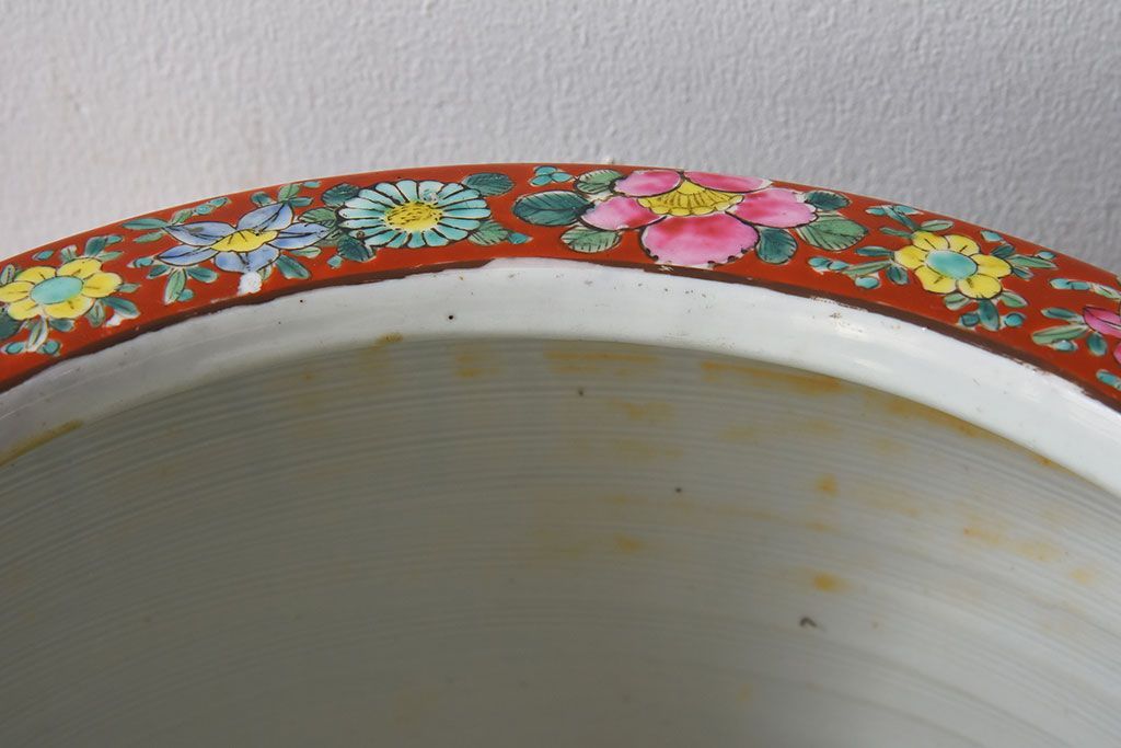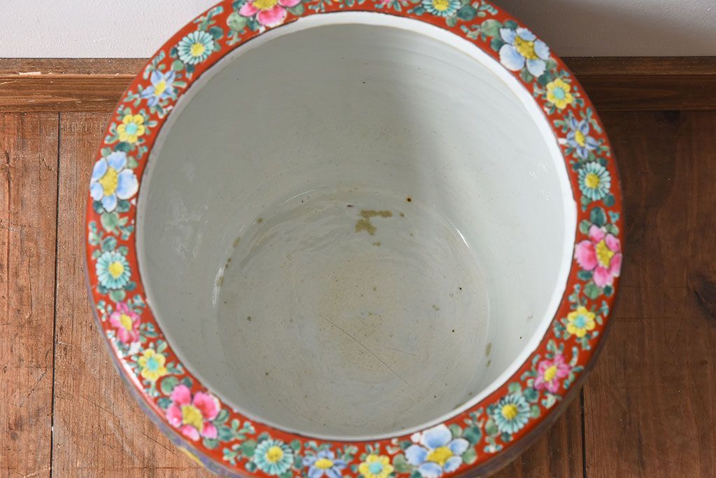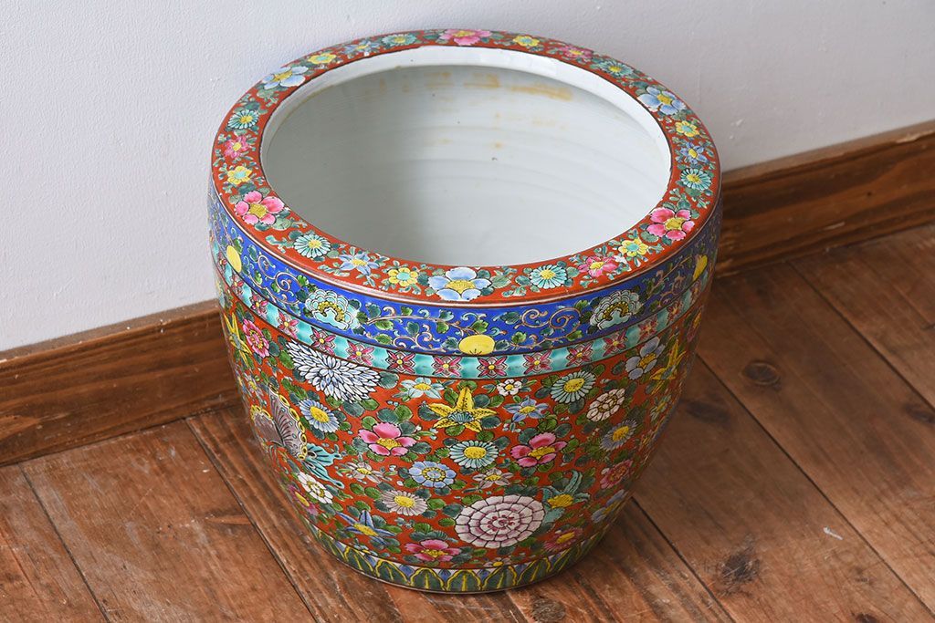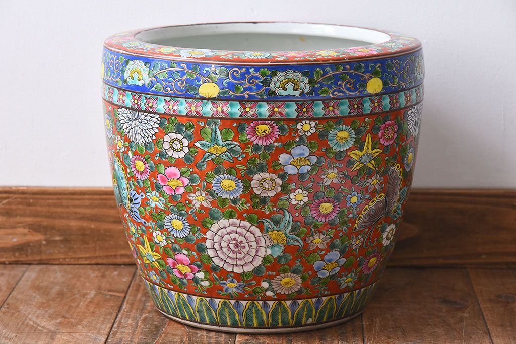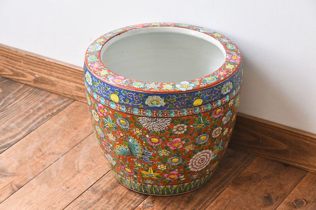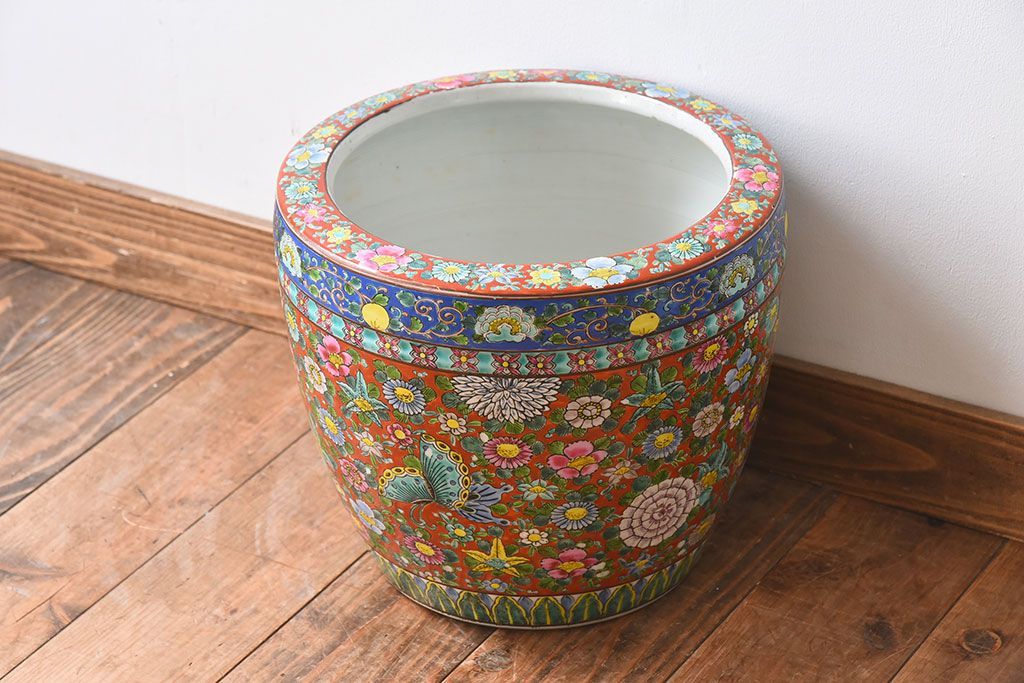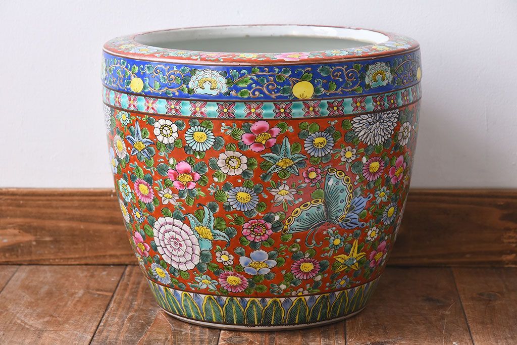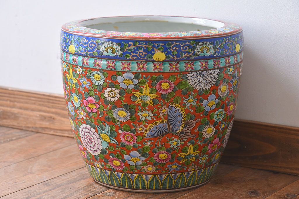 アンティーク雑貨 和製アンティーク 鮮やかな十錦手火鉢 蝶の図