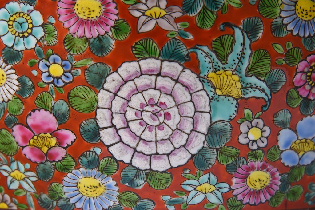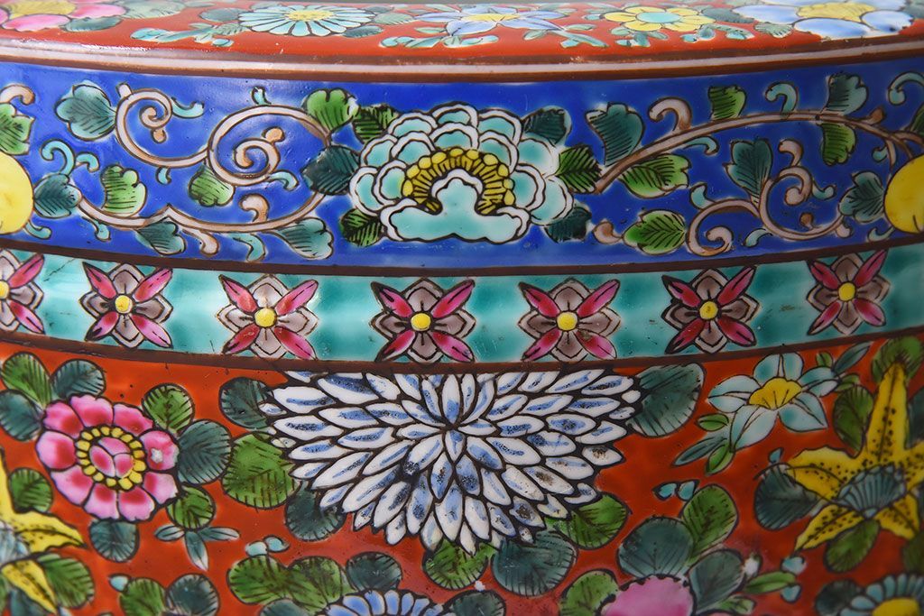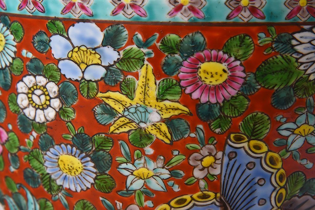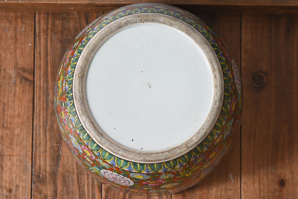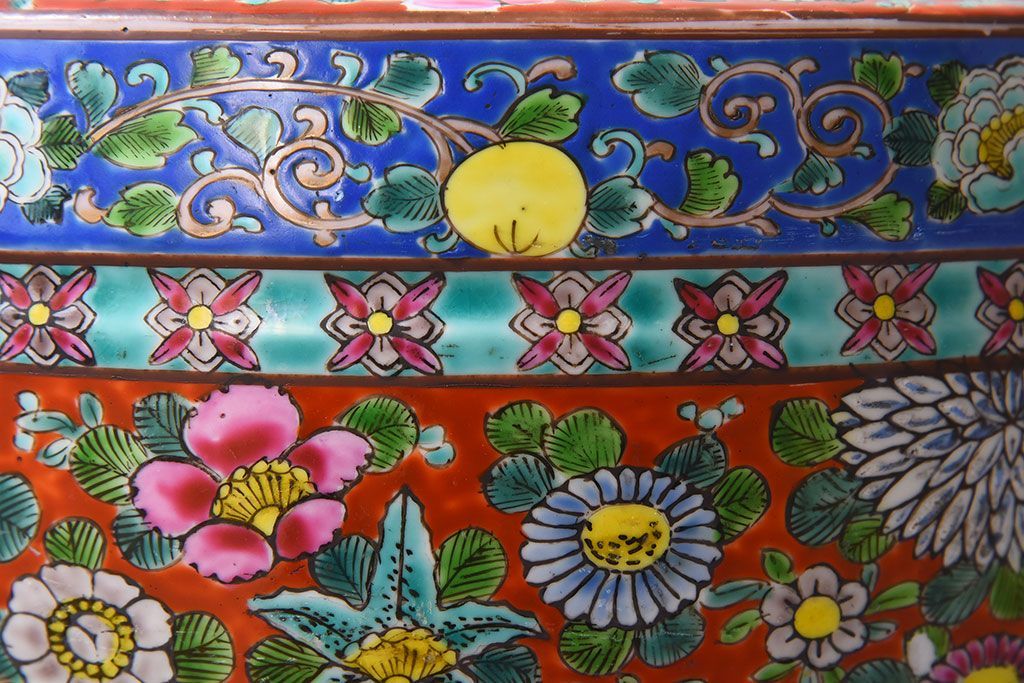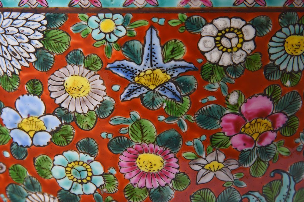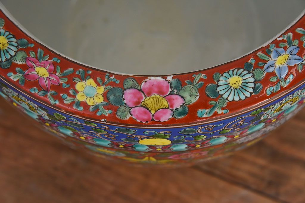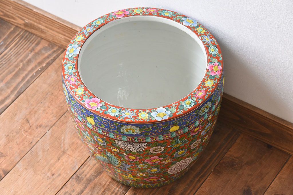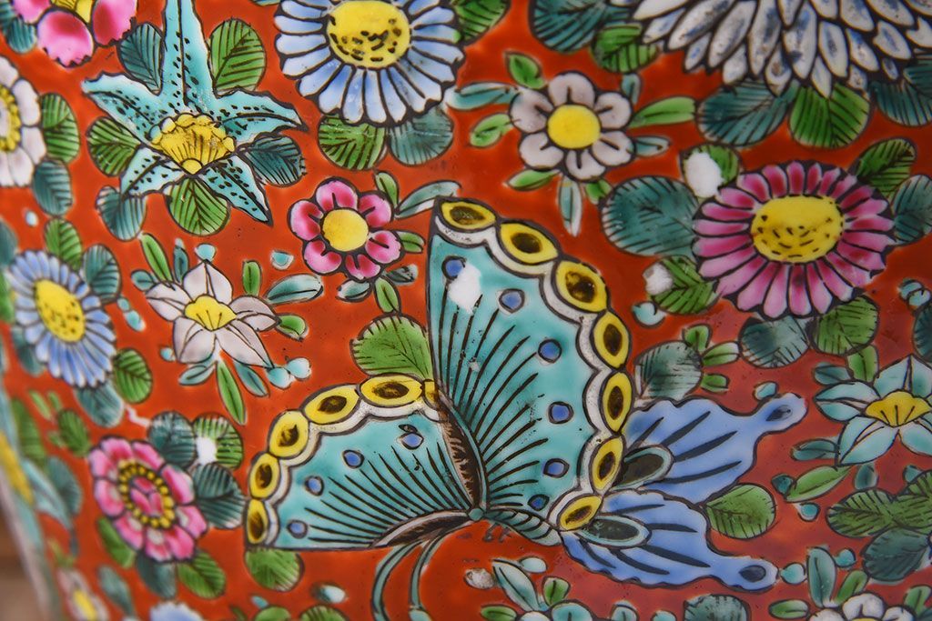 アンティーク雑貨 和製アンティーク 鮮やかな十錦手火鉢 蝶の図