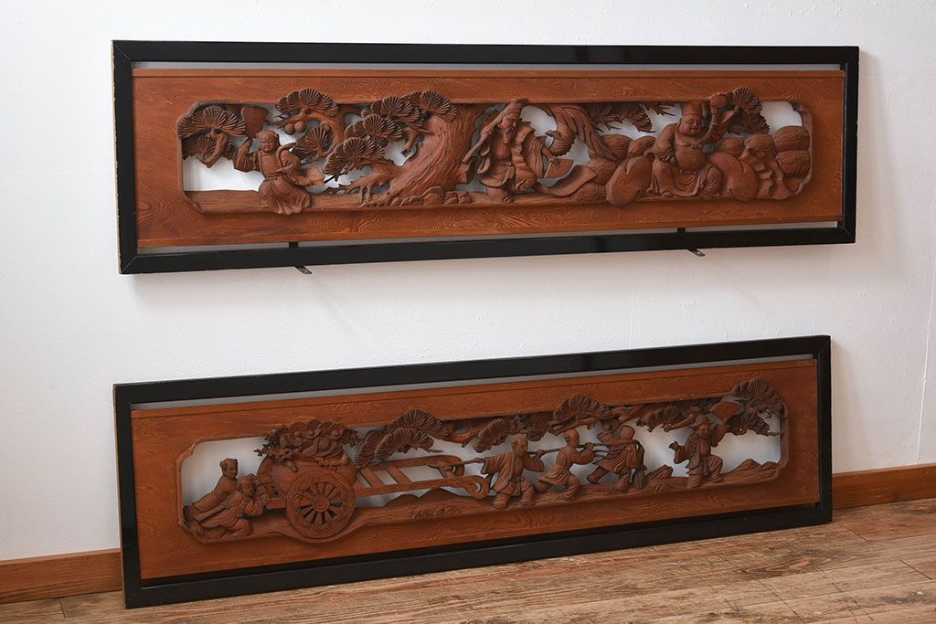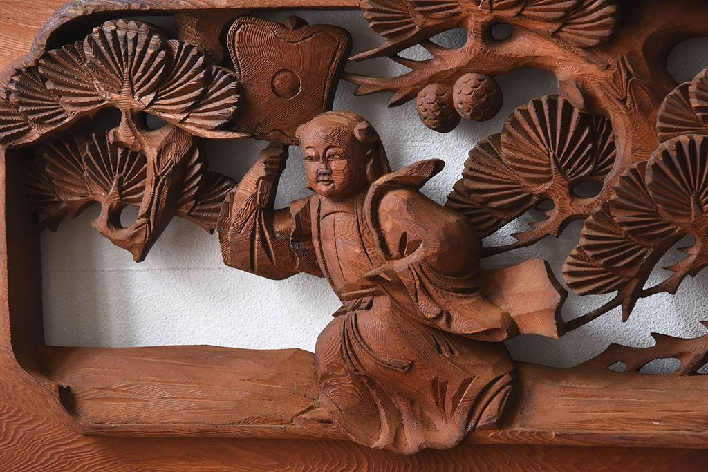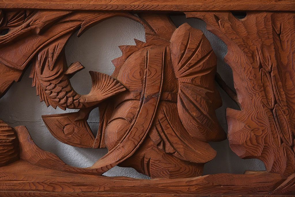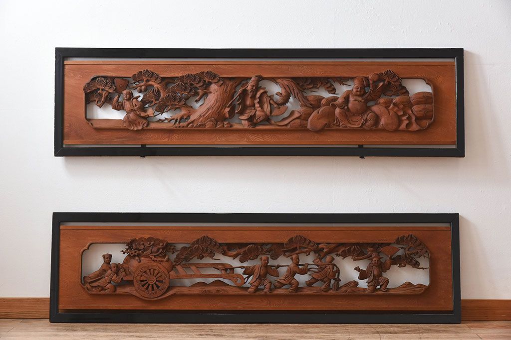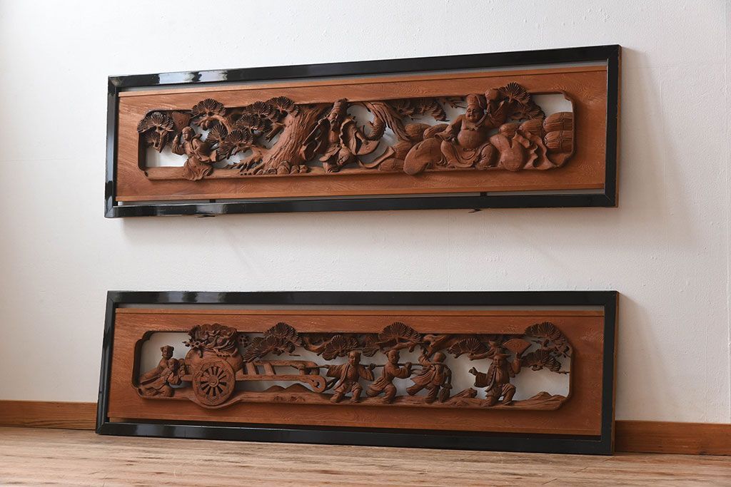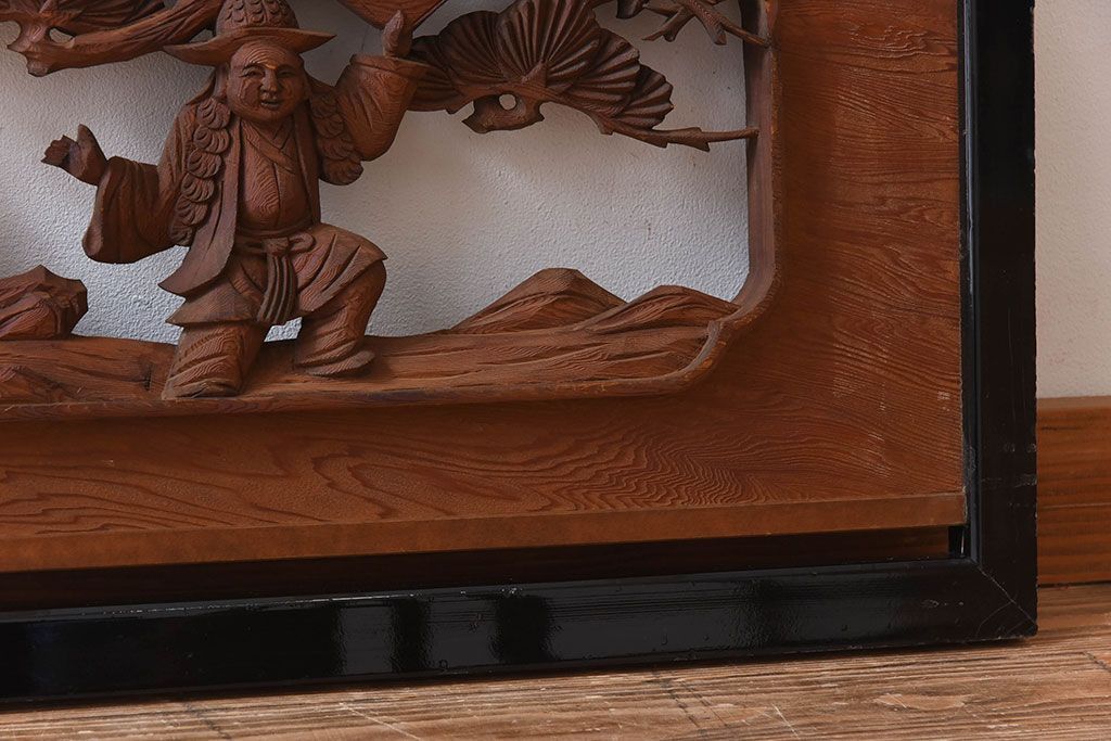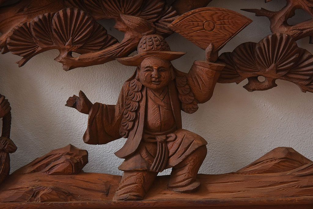古民具・骨董 アンティーク 恵比寿・大黒 彫刻欄間一対