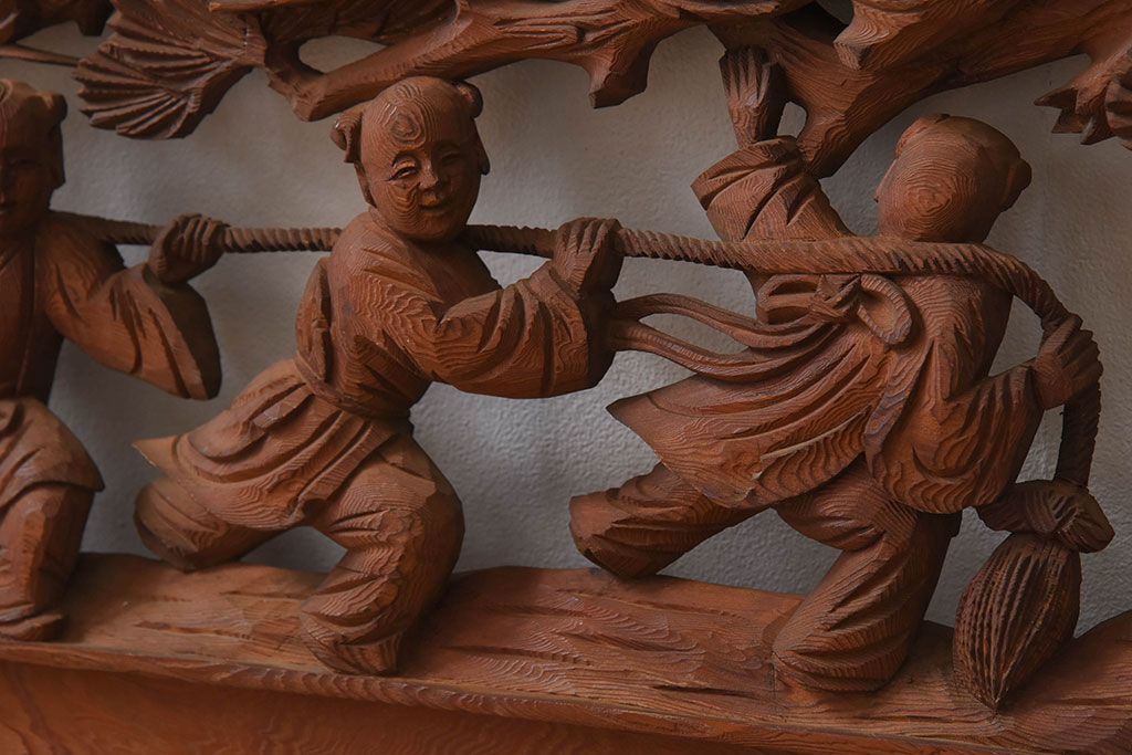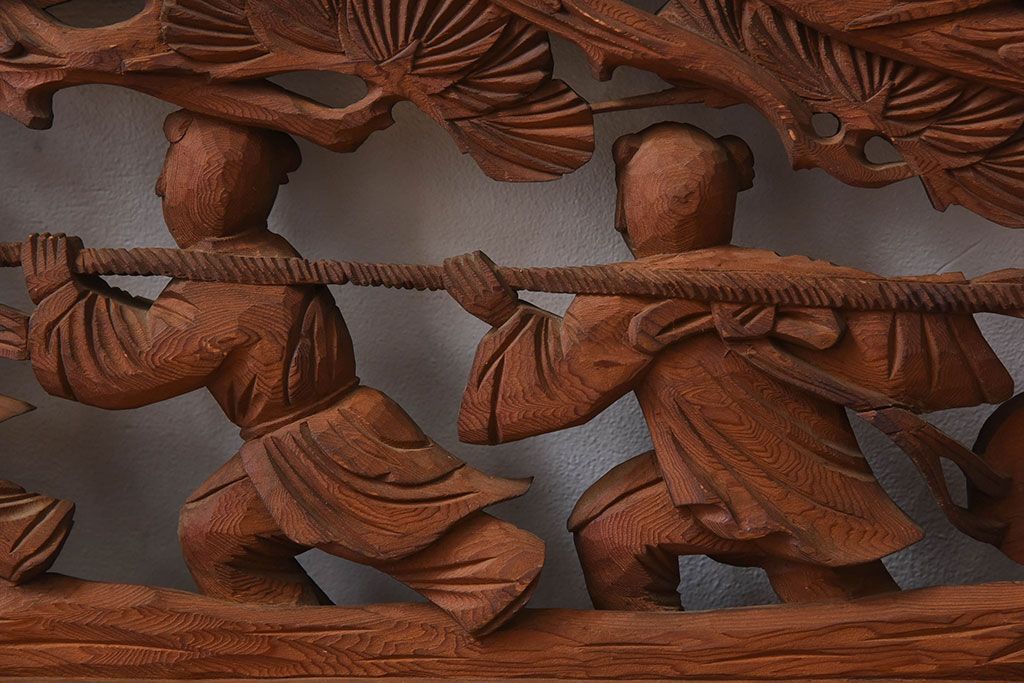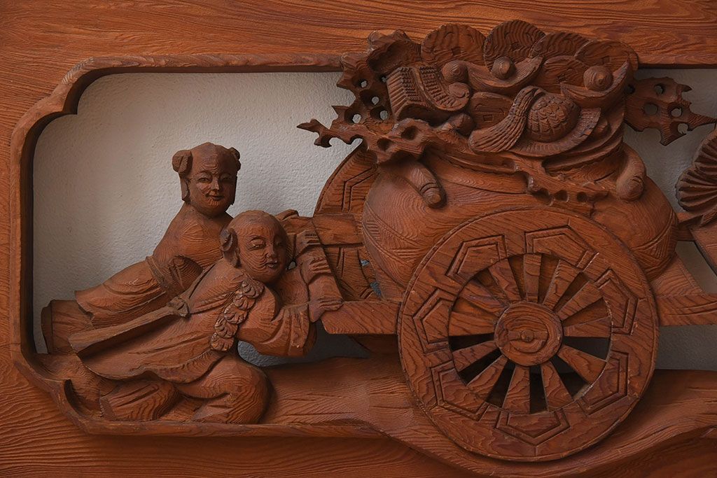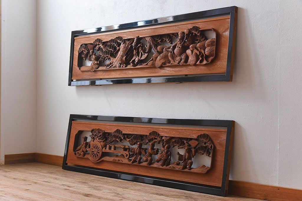 古民具・骨董 アンティーク 恵比寿・大黒 彫刻欄間一対です。