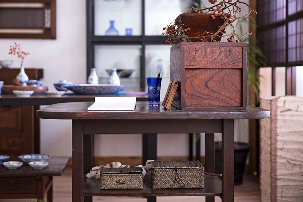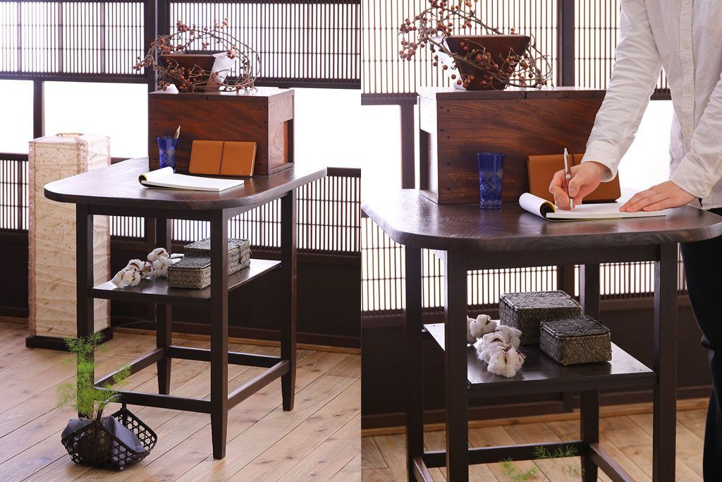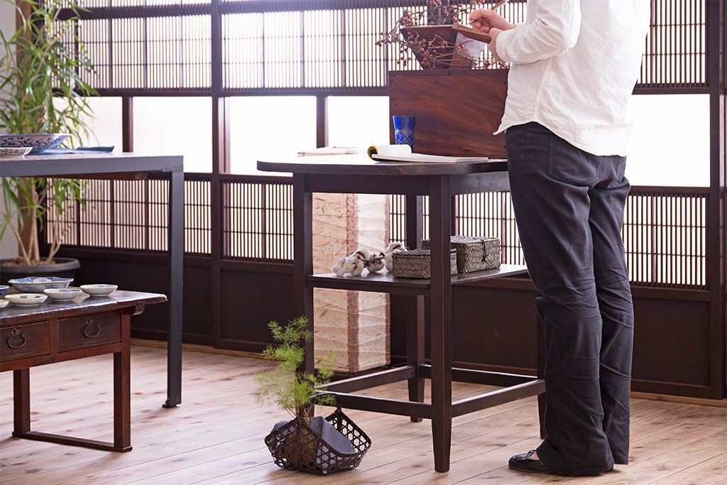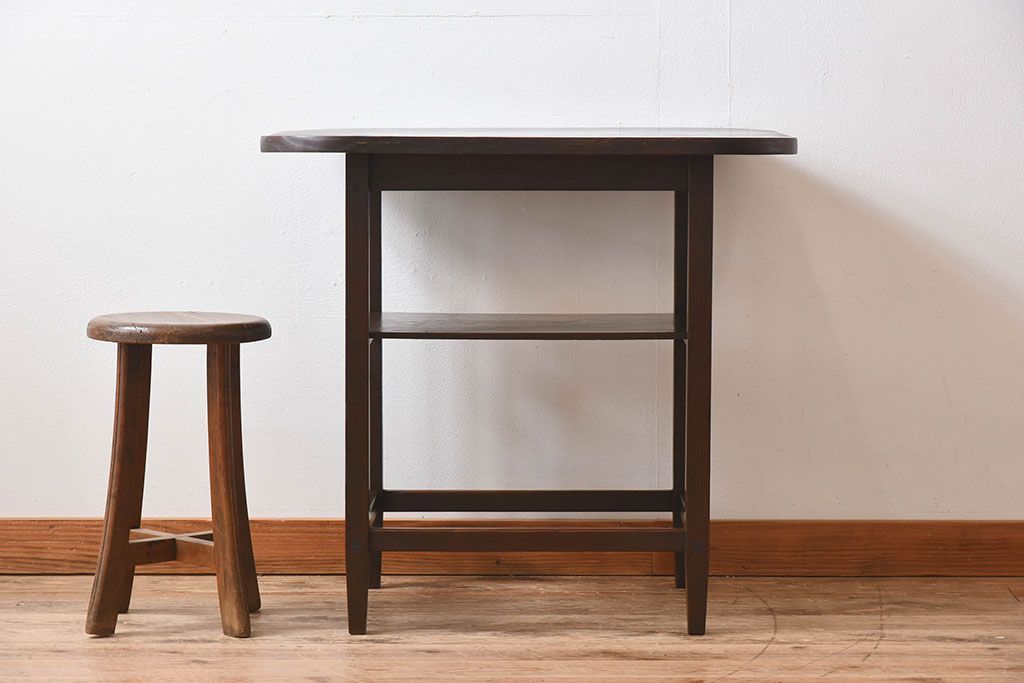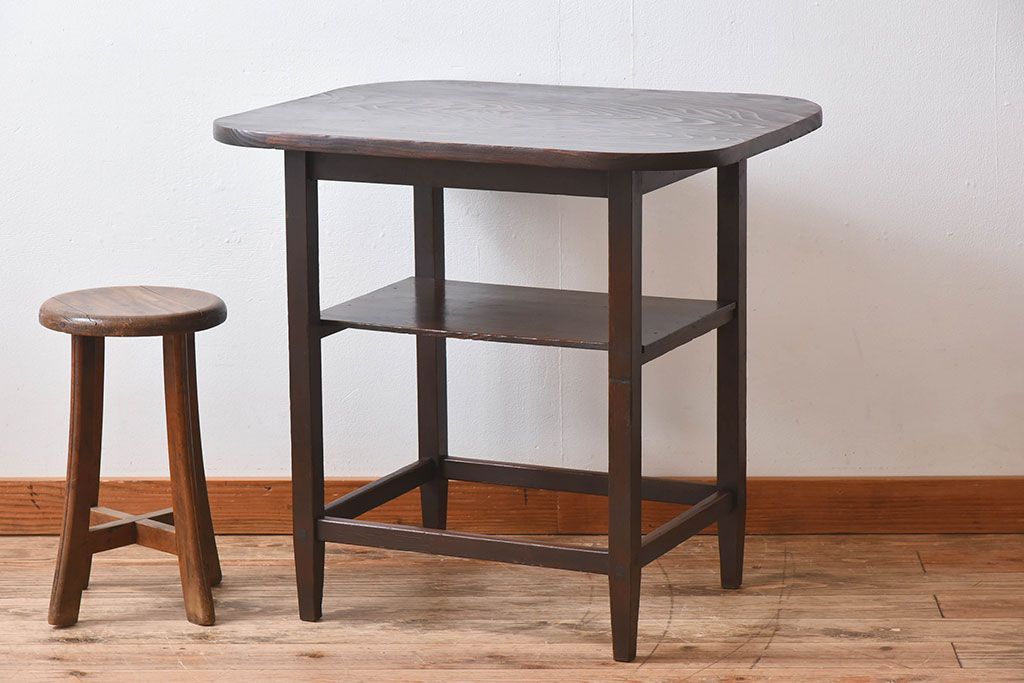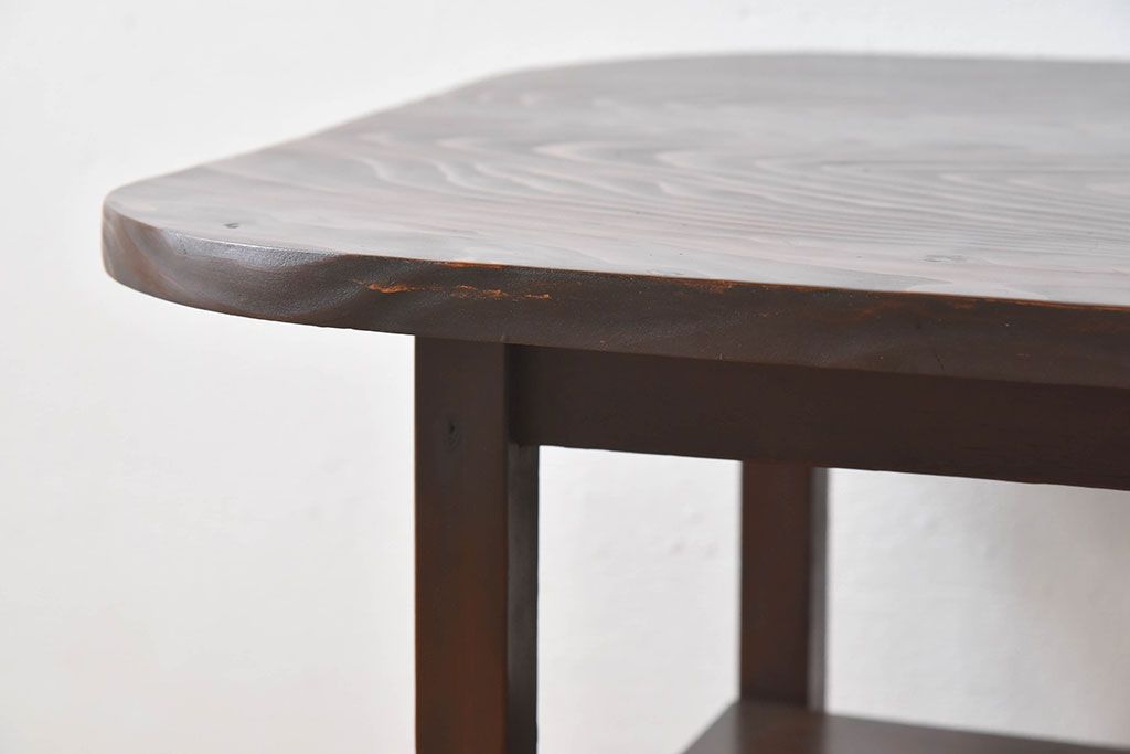 アンティーク家具 檜材 天板一枚板 古い木製のシンプルなサイドテーブル