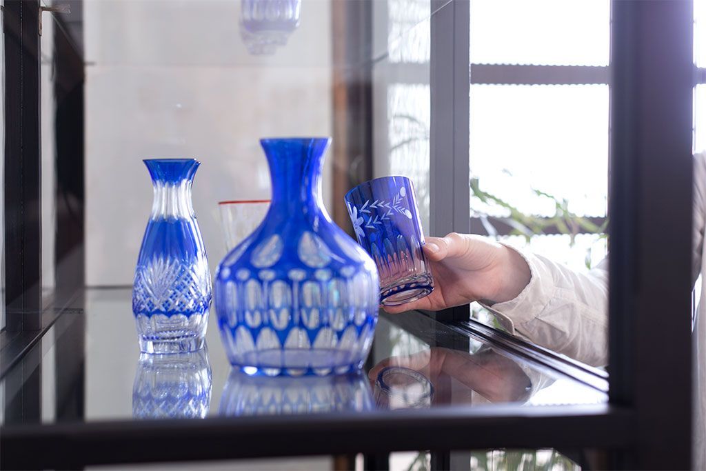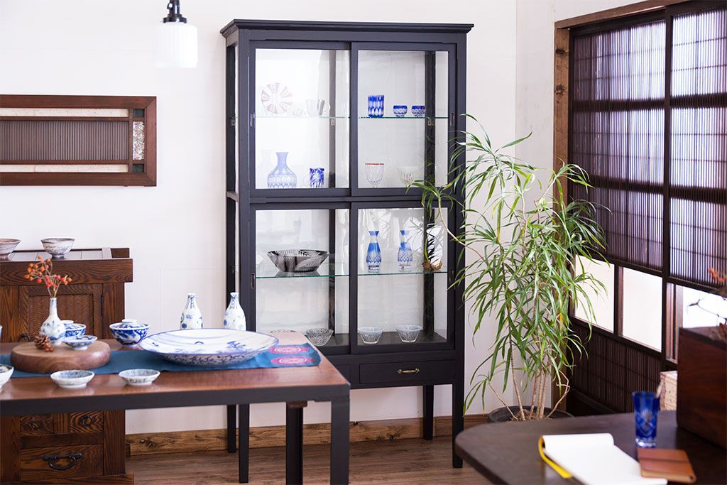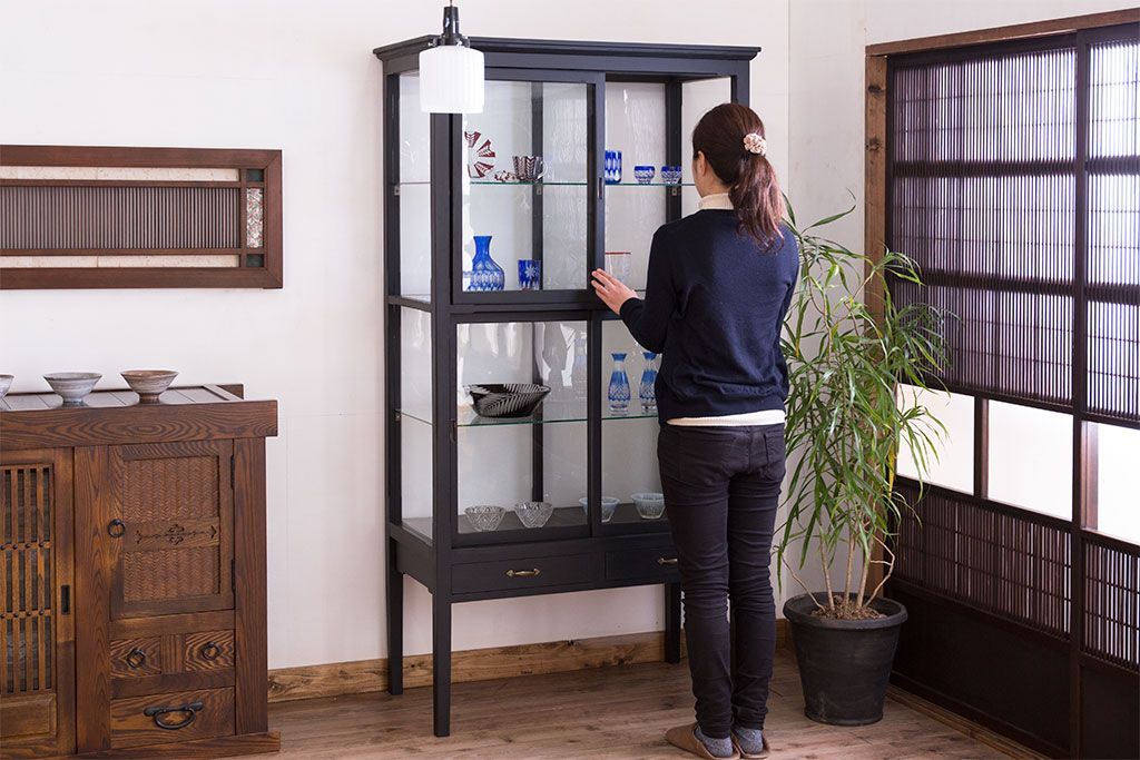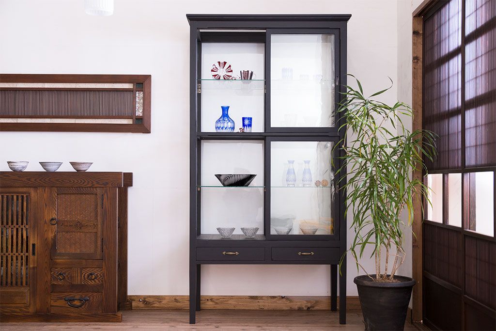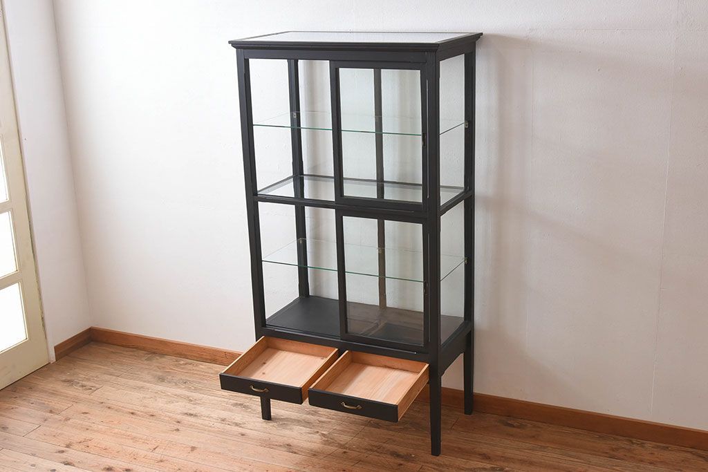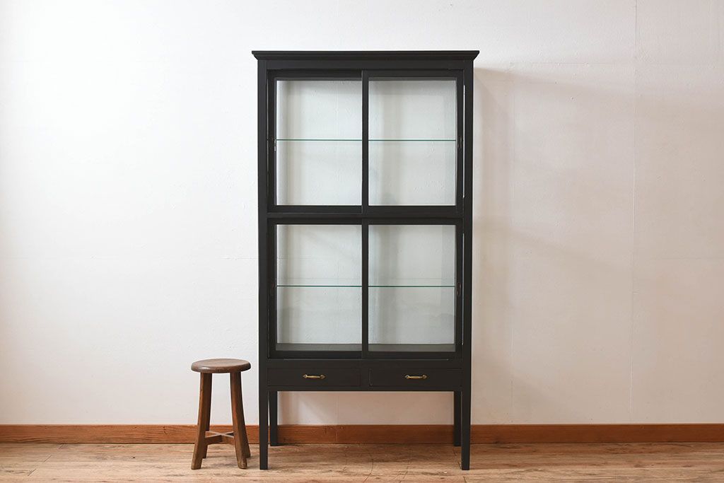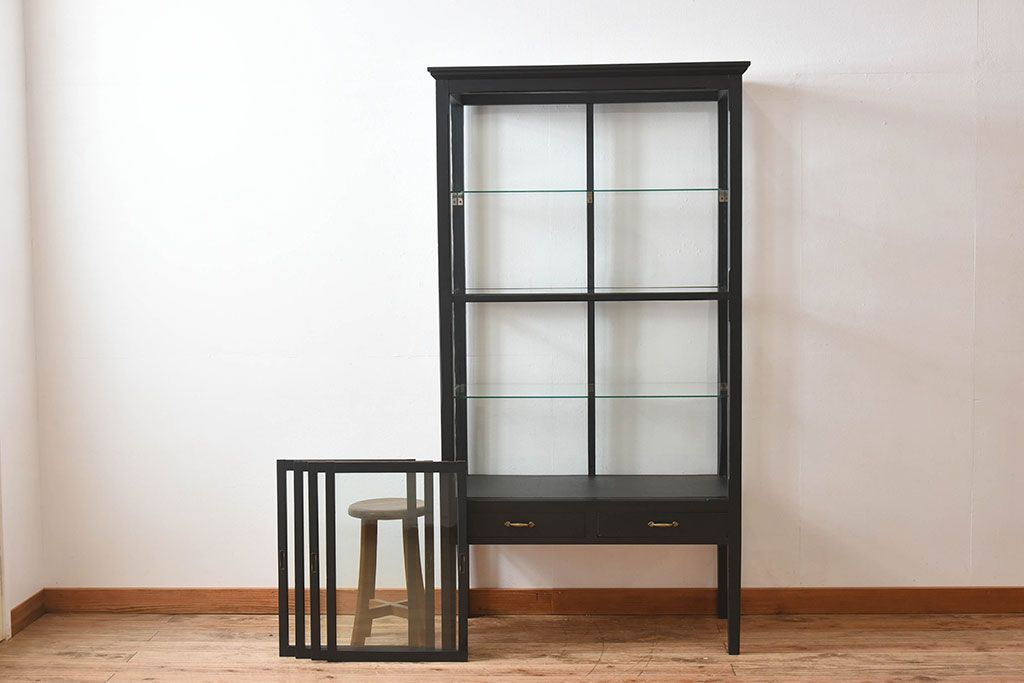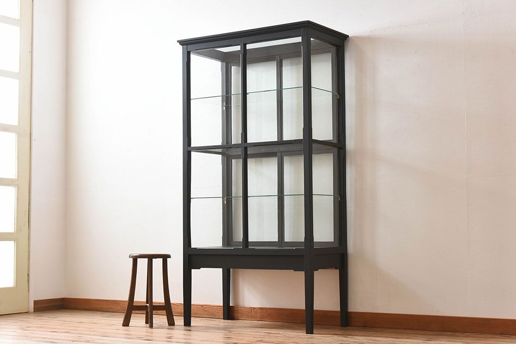 ラフジュ工房> ガラスケース・ショーケース > アンティーク家具 アンティーク 脚付き 縦型 上品なペイントガラスケース(2)