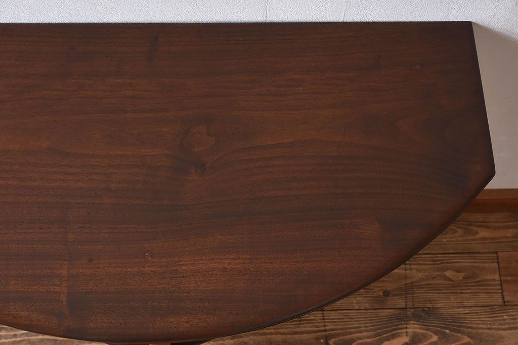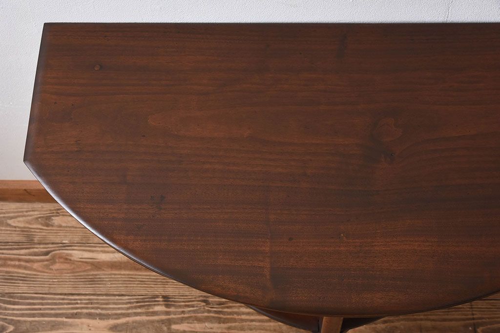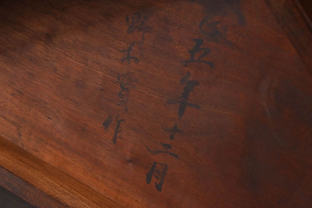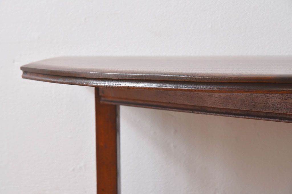 古い木の質感が味わい深い、大正期のコンソールテーブルです。和製アンティークのコンソールテーブルは珍しく、なかなかお目にかかれない貴重な一品です。天板には楠木材が使われていて、素朴で温かみのある木肌と濃淡のある美しい木目が素敵です。和モダンスタイルやシックな雰囲気のお部屋にも合わせやすいお品です。リビングや寝室で、写真や小物を飾るディスプレイスペースとしておすすめです。