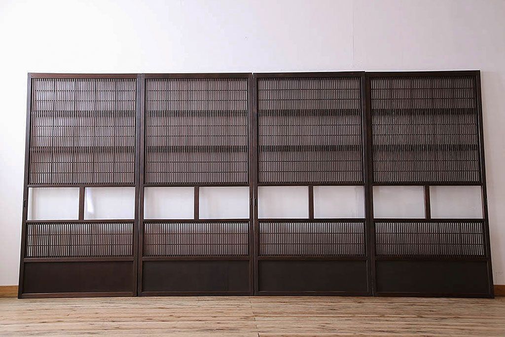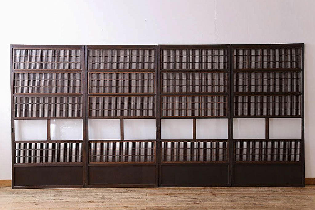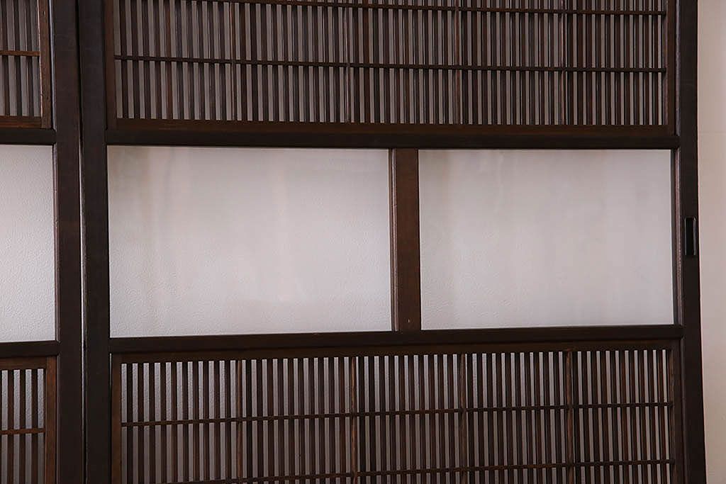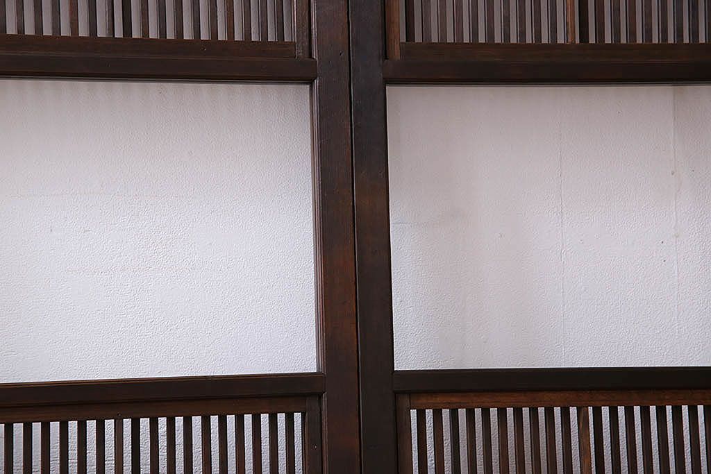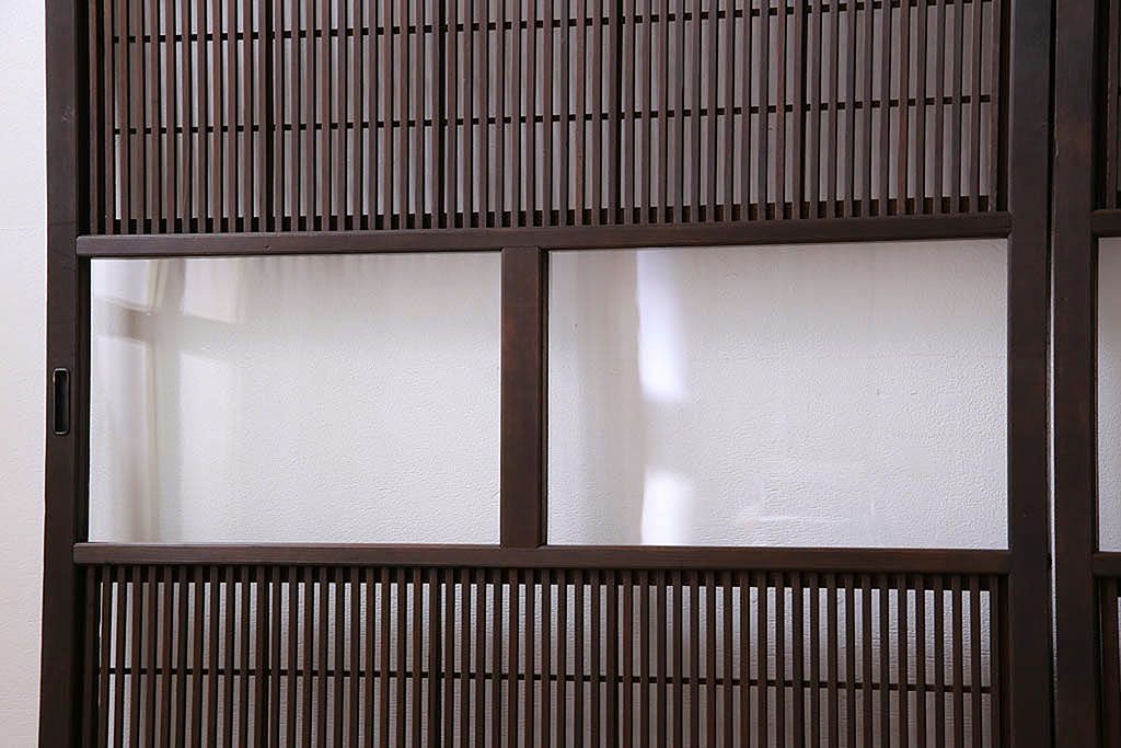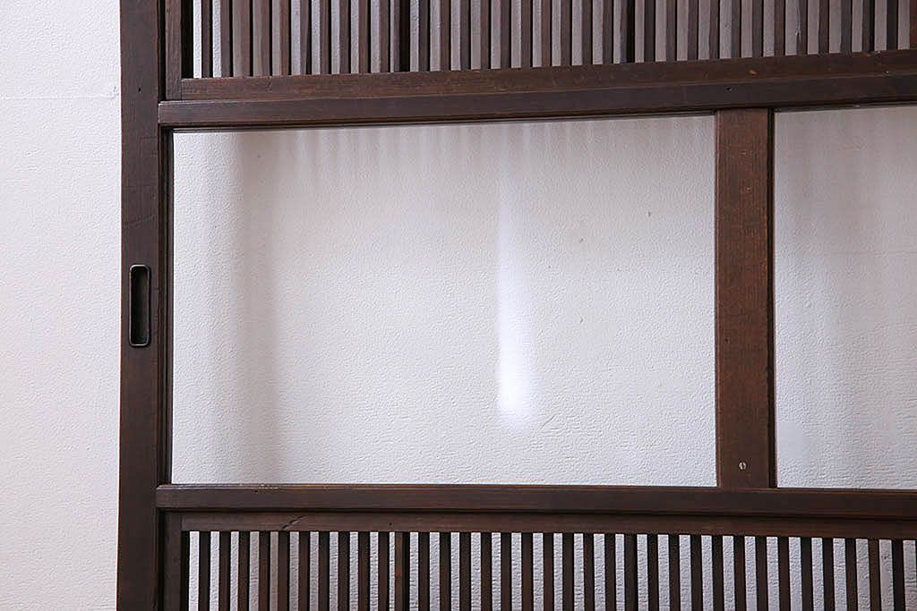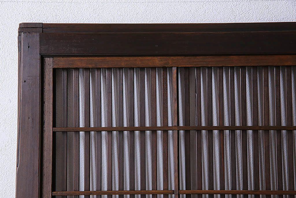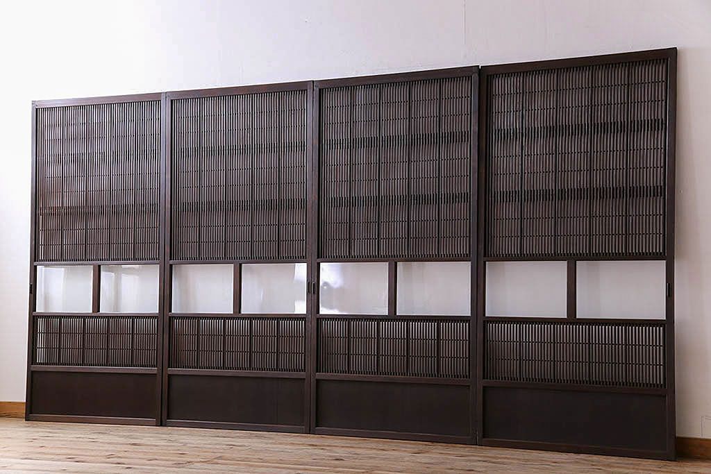 裏障子付き!クリアガラス帯の格子戸4枚セット 和製アンティーク