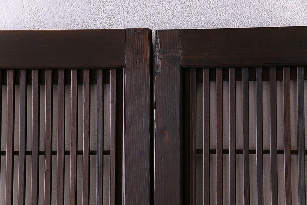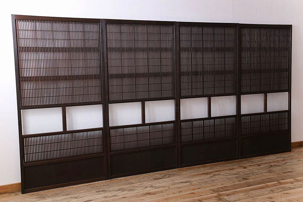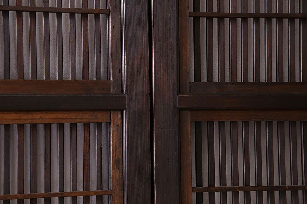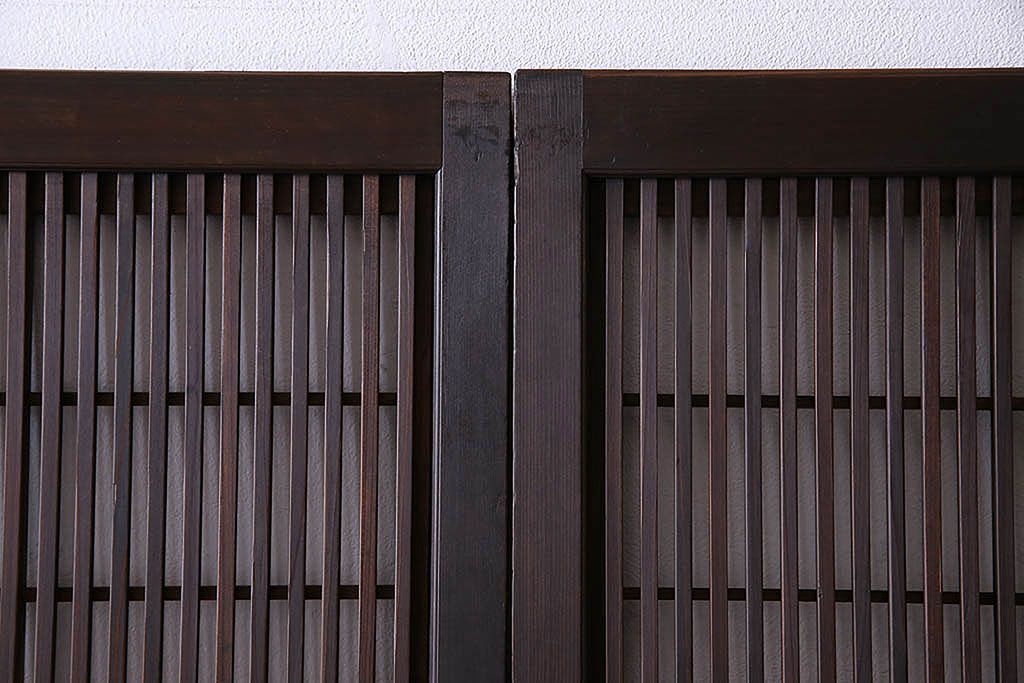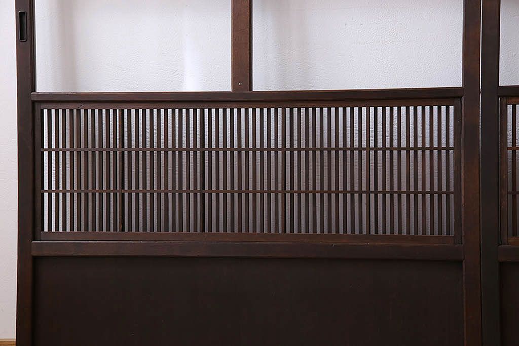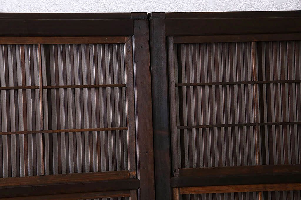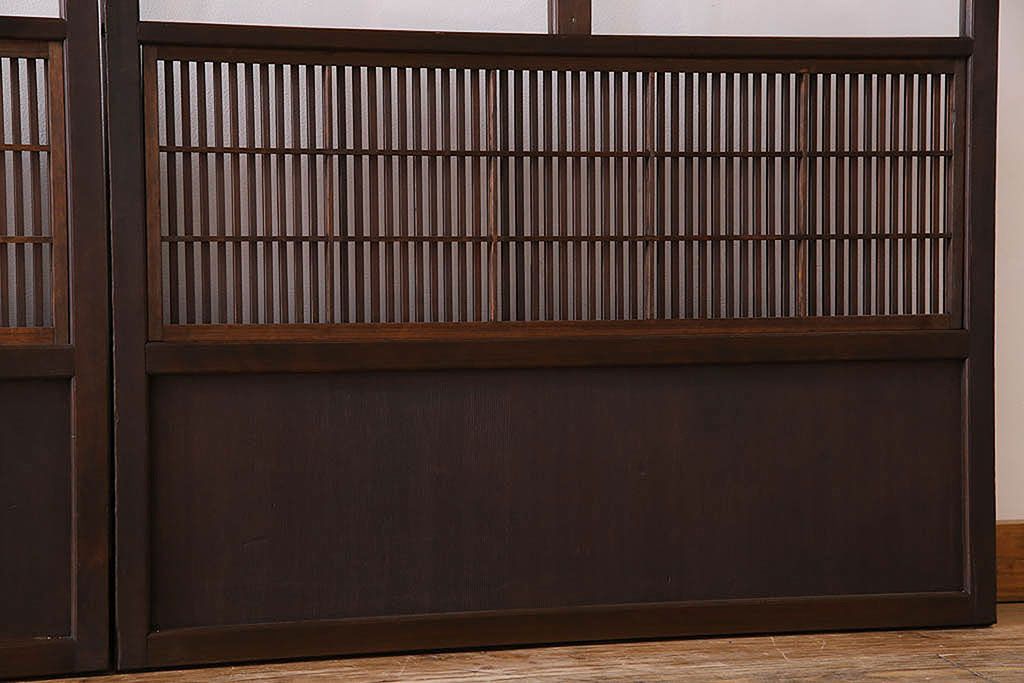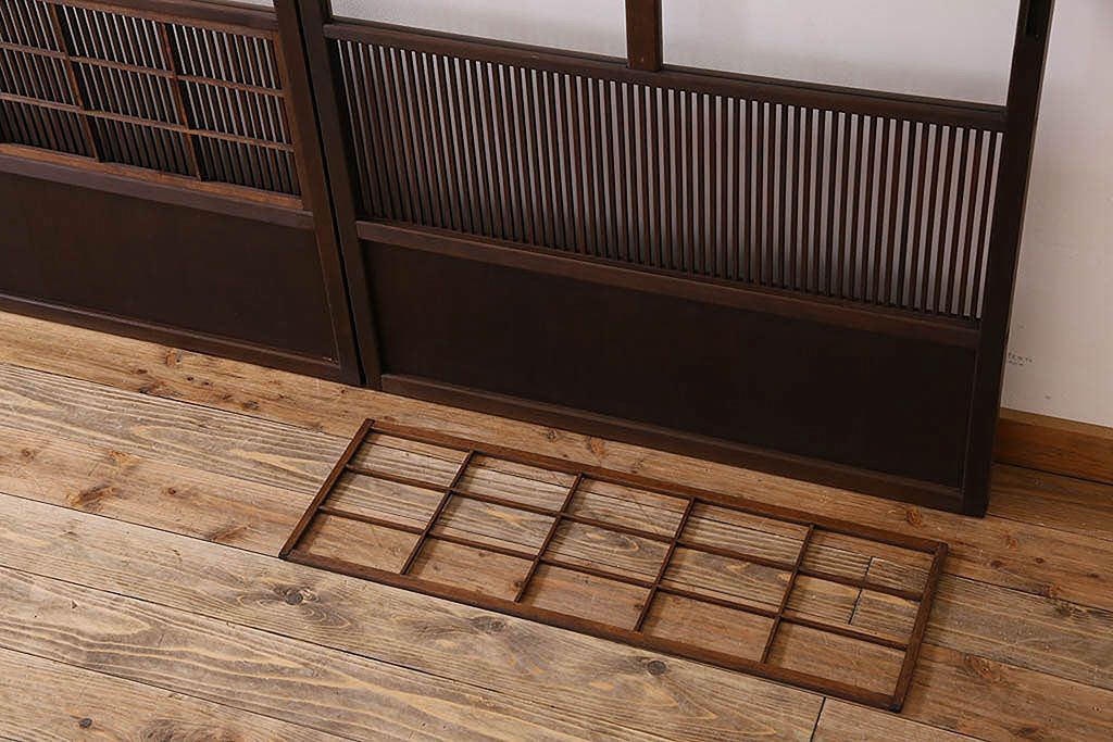 裏障子付き!クリアガラス帯の格子戸4枚セット 和製アンティーク