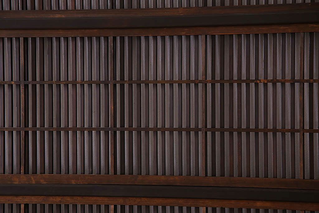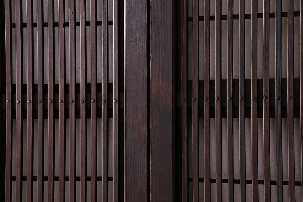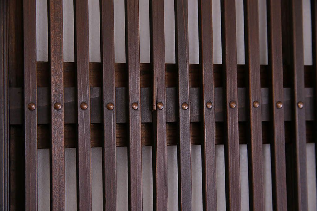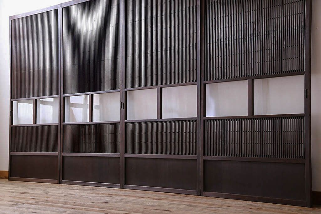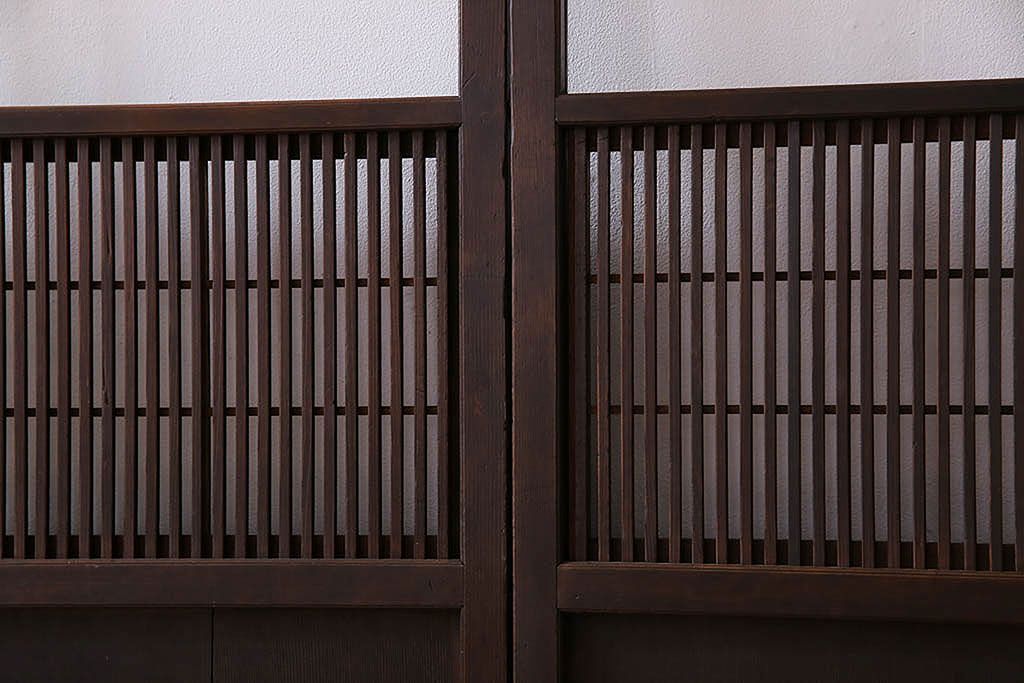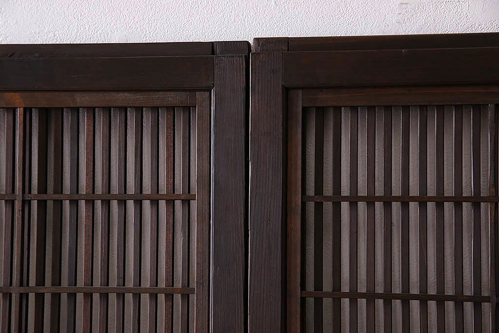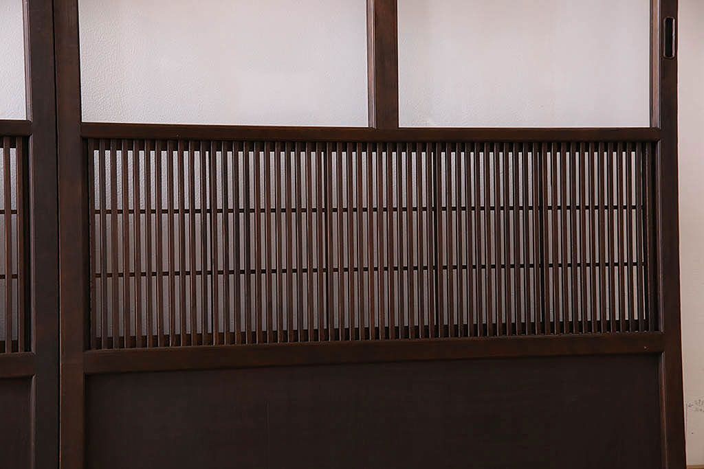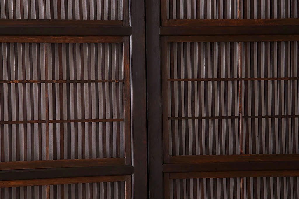 裏障子付き!クリアガラス帯の格子戸4枚セット 和製アンティーク