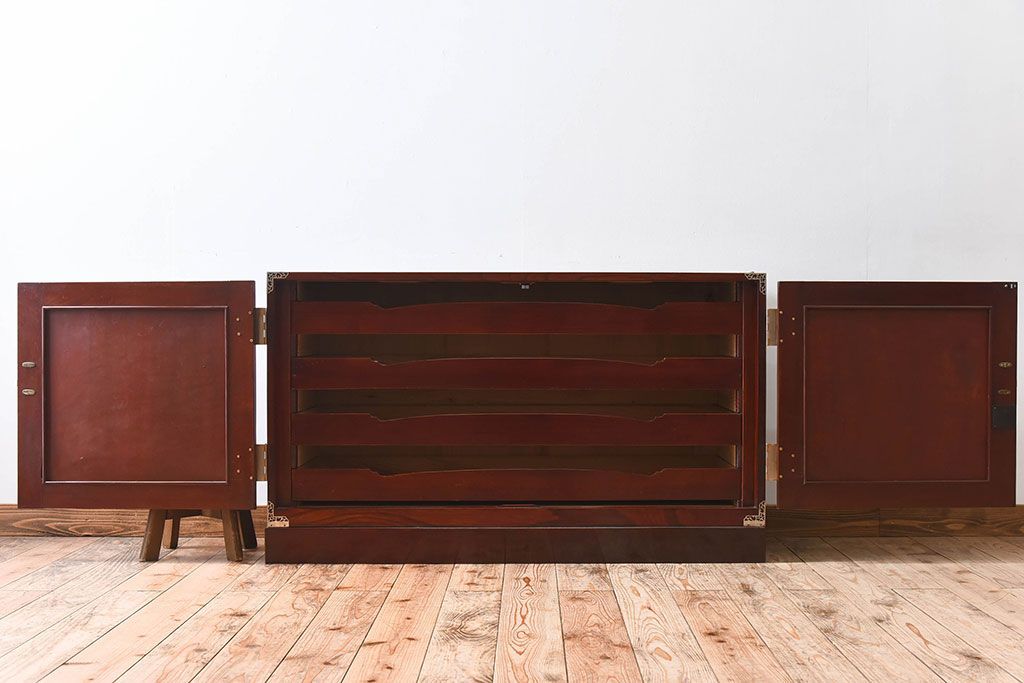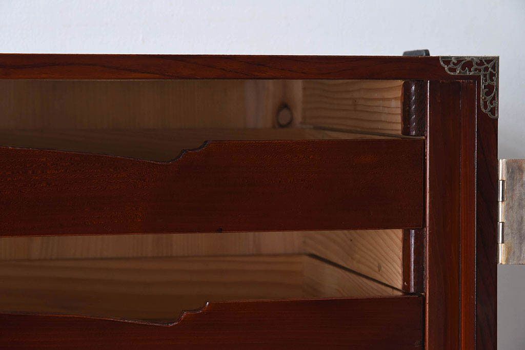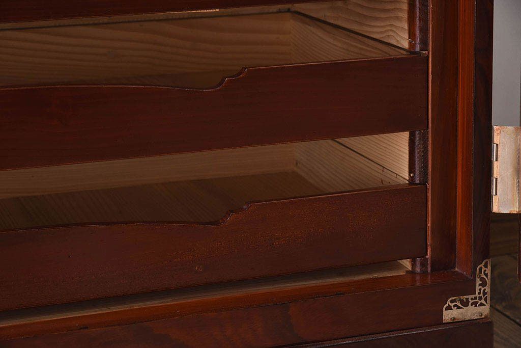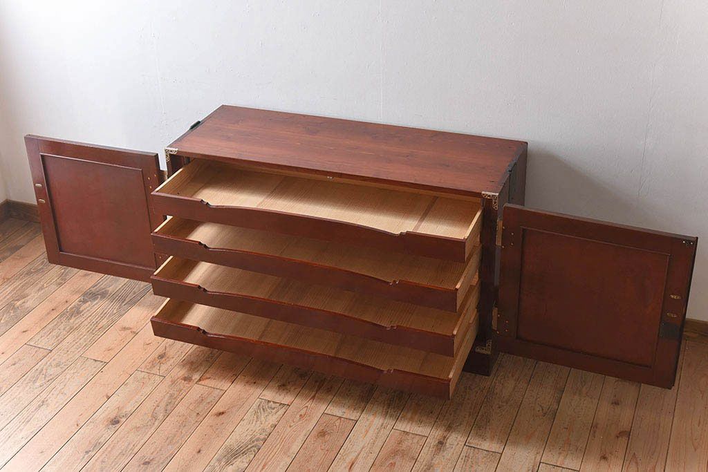 アンティーク家具 和モダン 欅玉杢材 漆塗り 古い衣装箪笥ローボード(3)