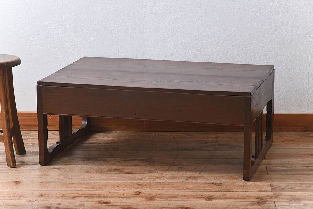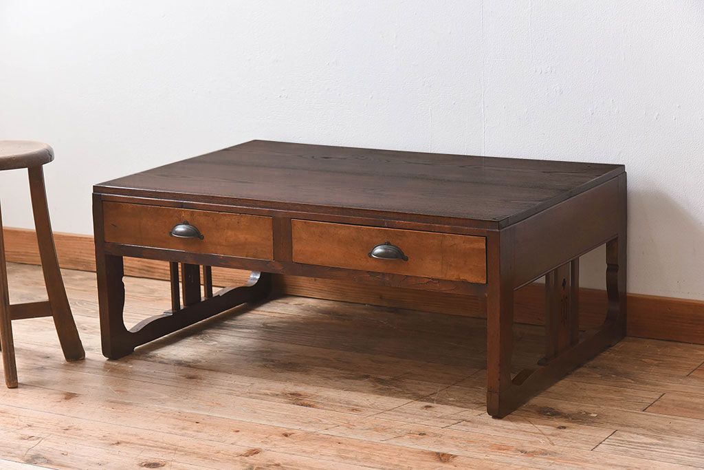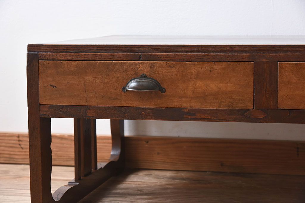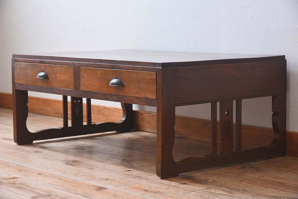 レトロ家具 栗材製 レトロな透かし彫り入りのアンティーク文机