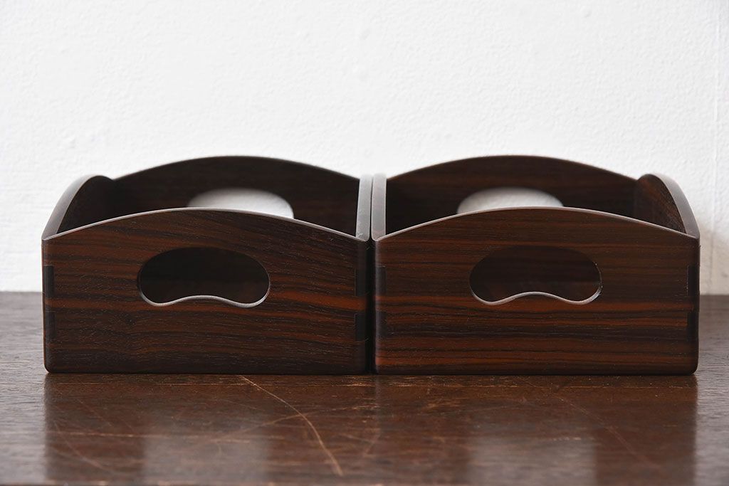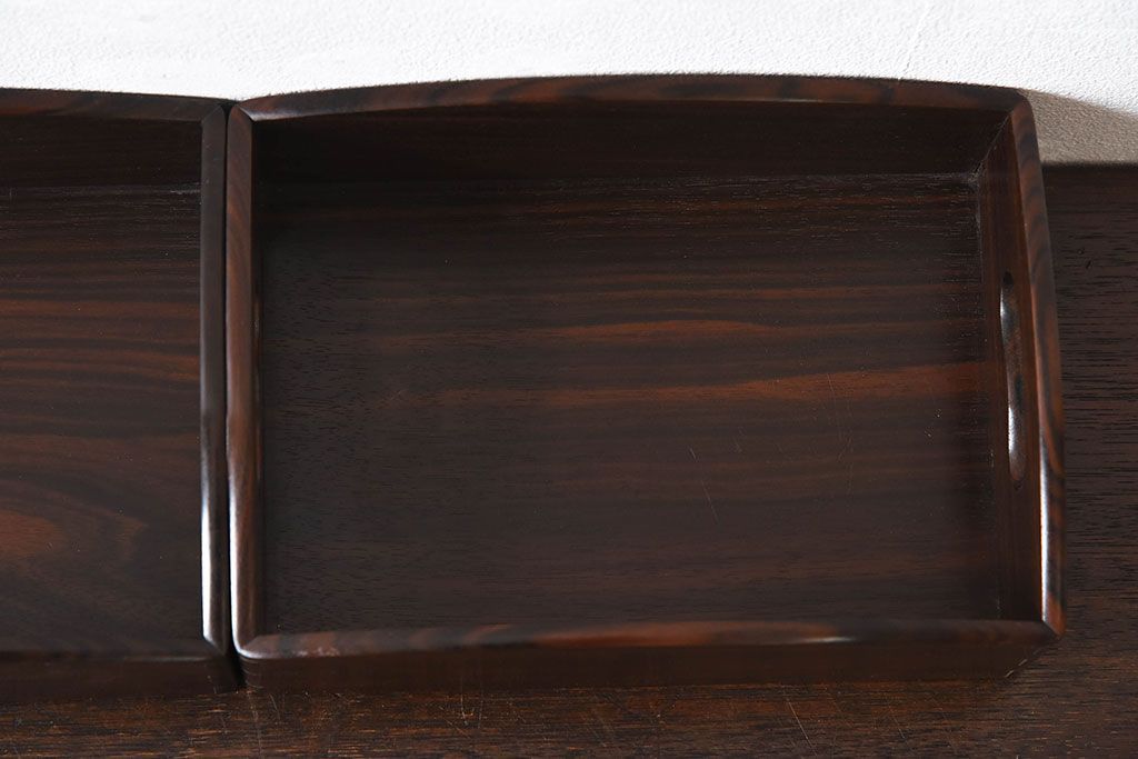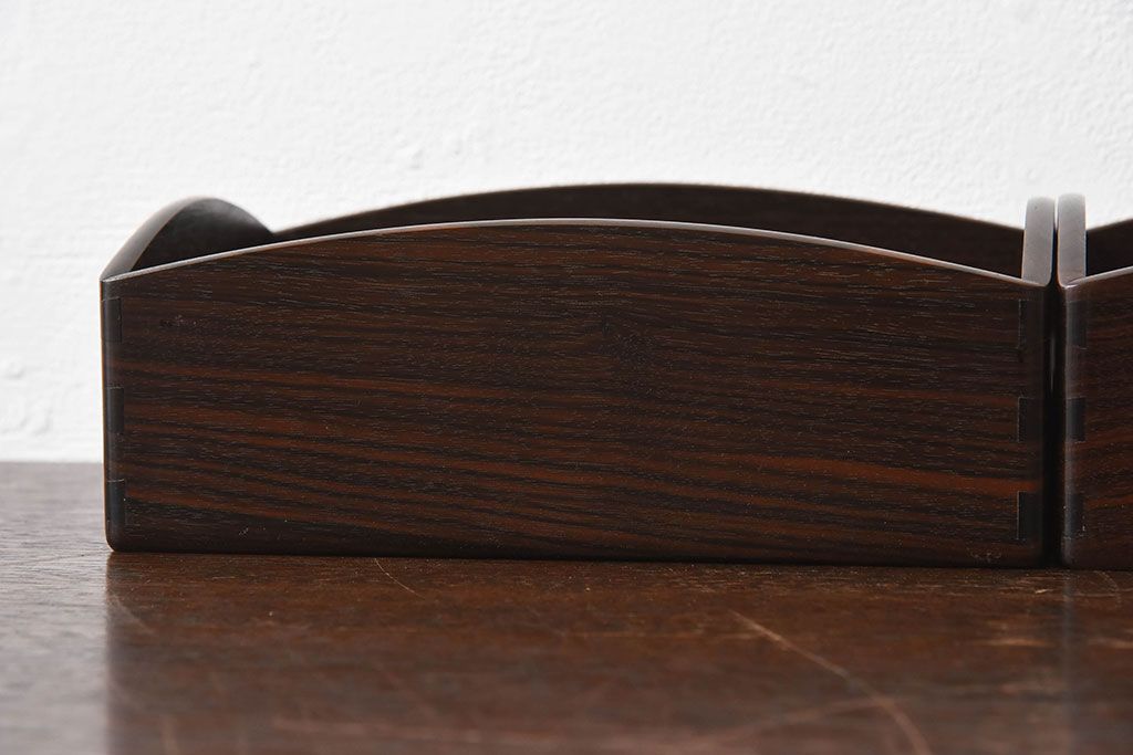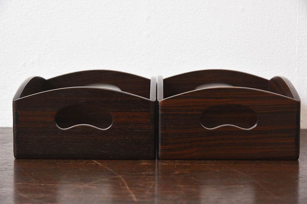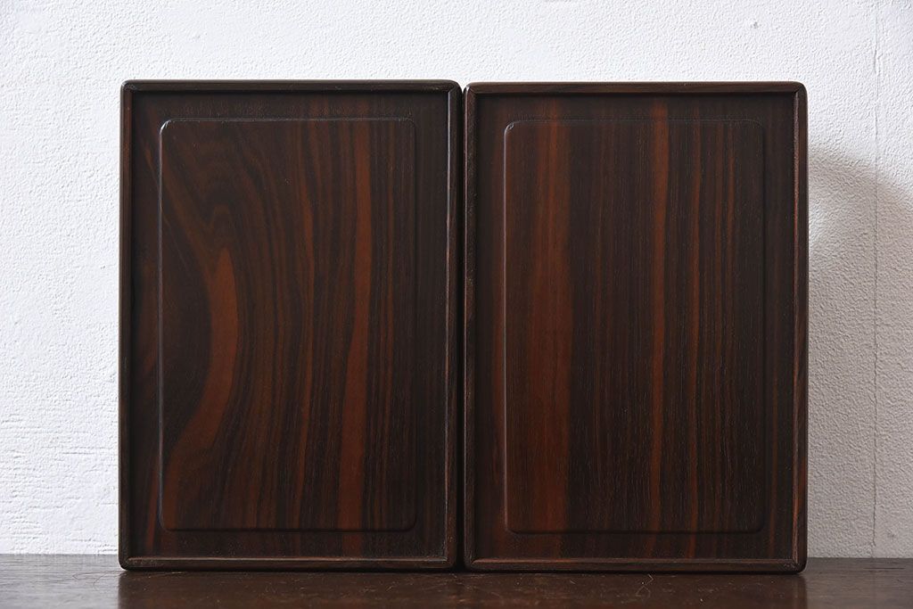 アンティーク雑貨 唐木 縞黒檀材製 上品な和製アンティーク煙草盆一対