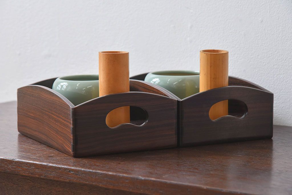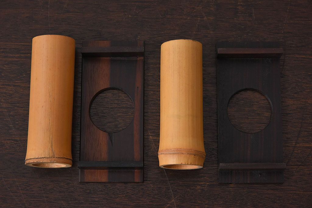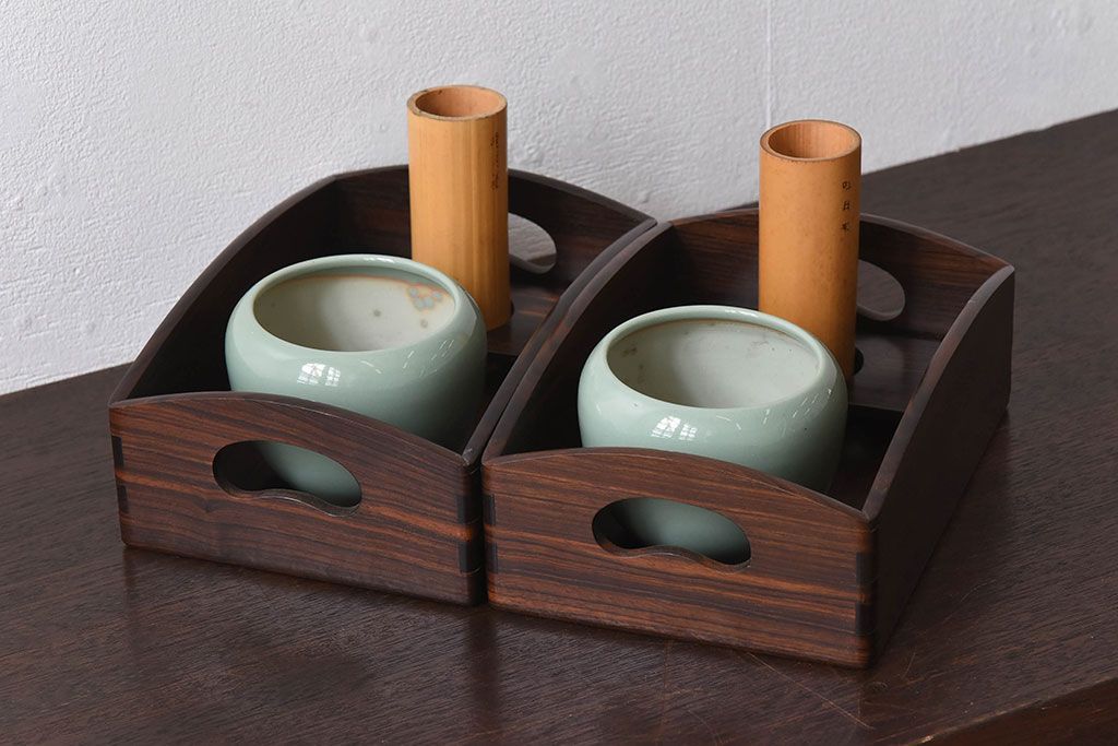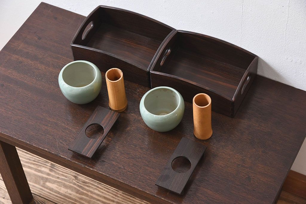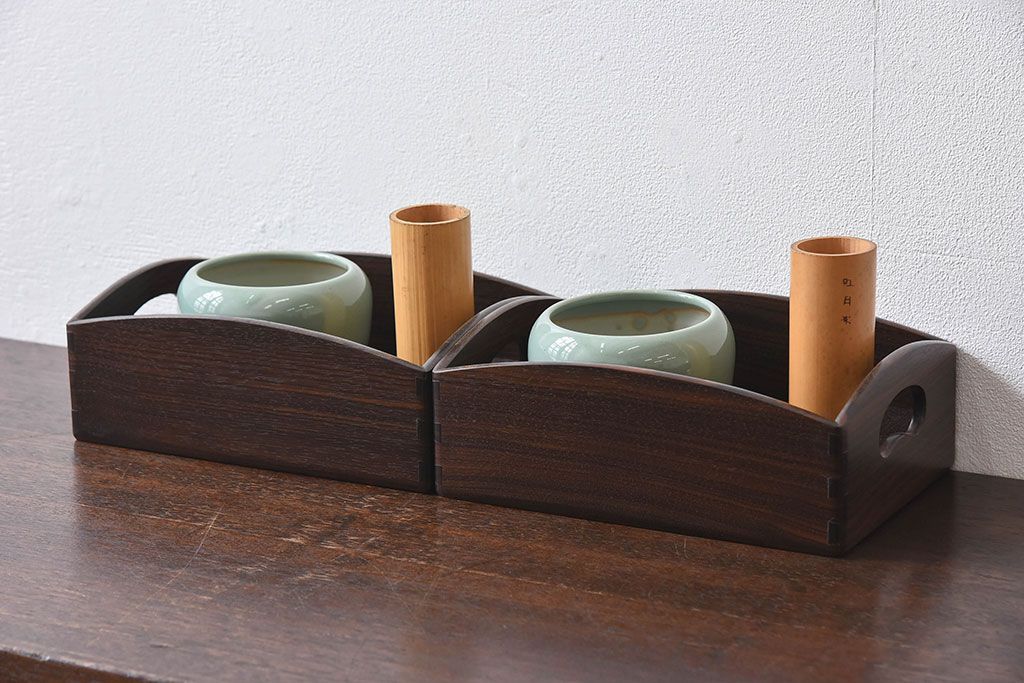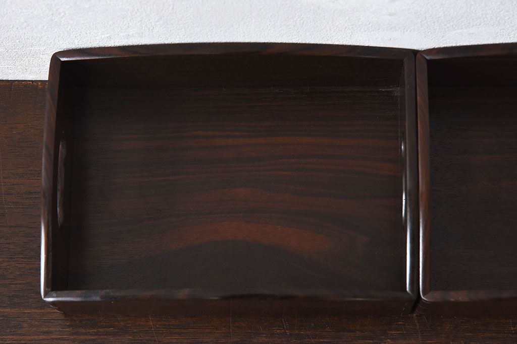 アンティーク雑貨 唐木 縞黒檀材製 上品な和製アンティーク煙草盆一対