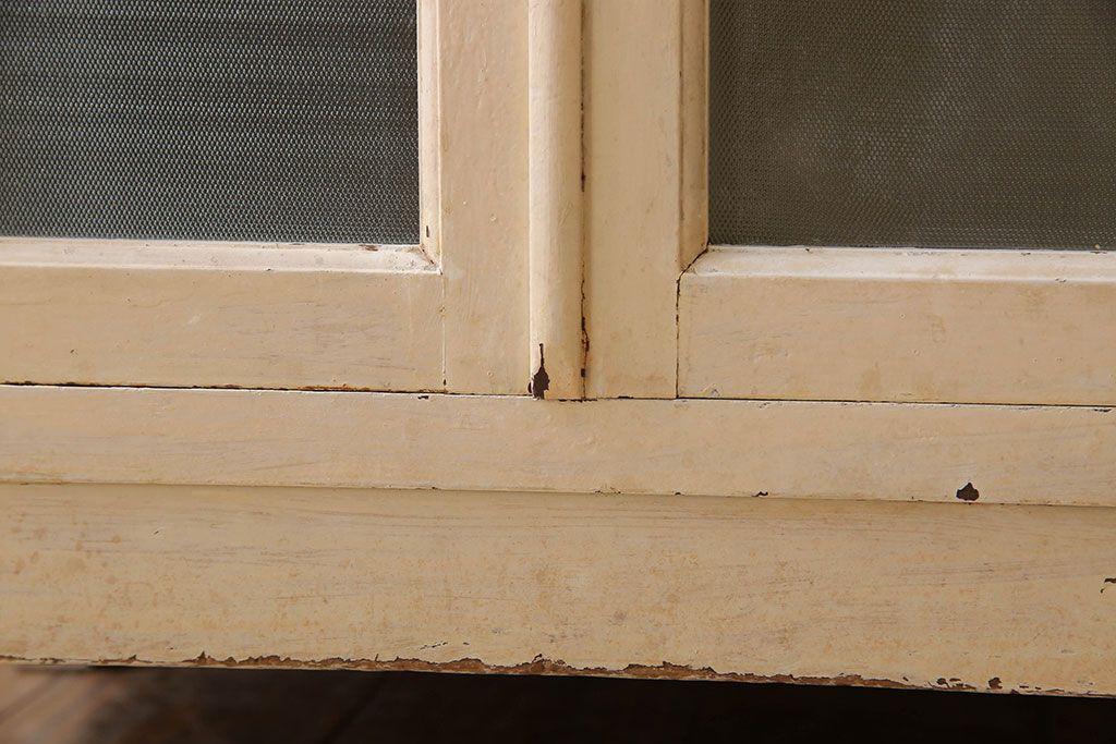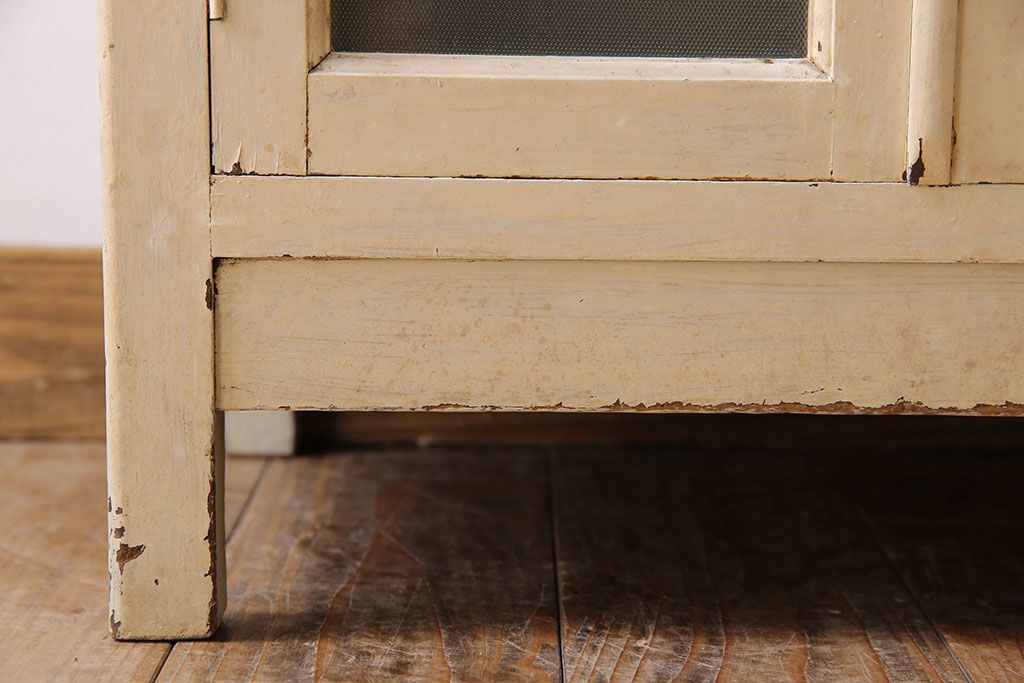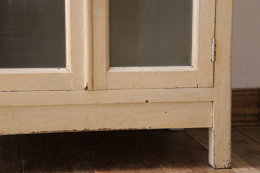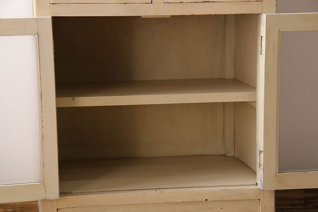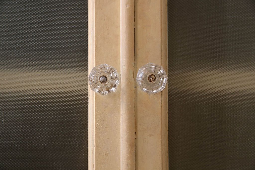 ラフジュ工房> キャビネット・戸棚> 医療用キャビネット・ケビント > アンティーク家具 ガラスの取っ手のペイントデンタルキャビネット ミストガラス