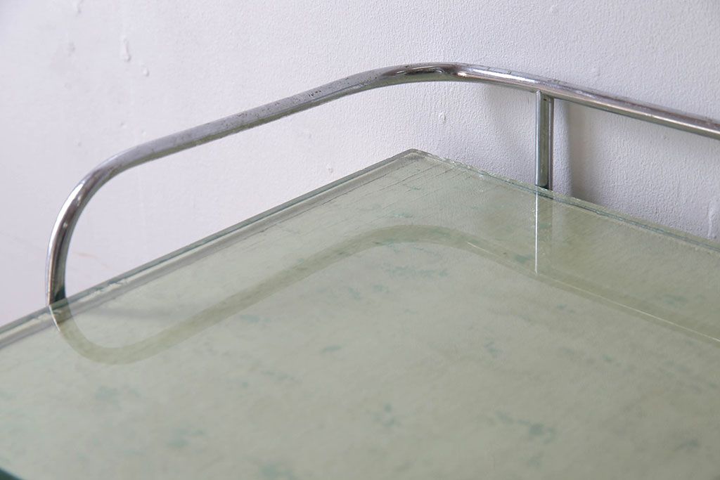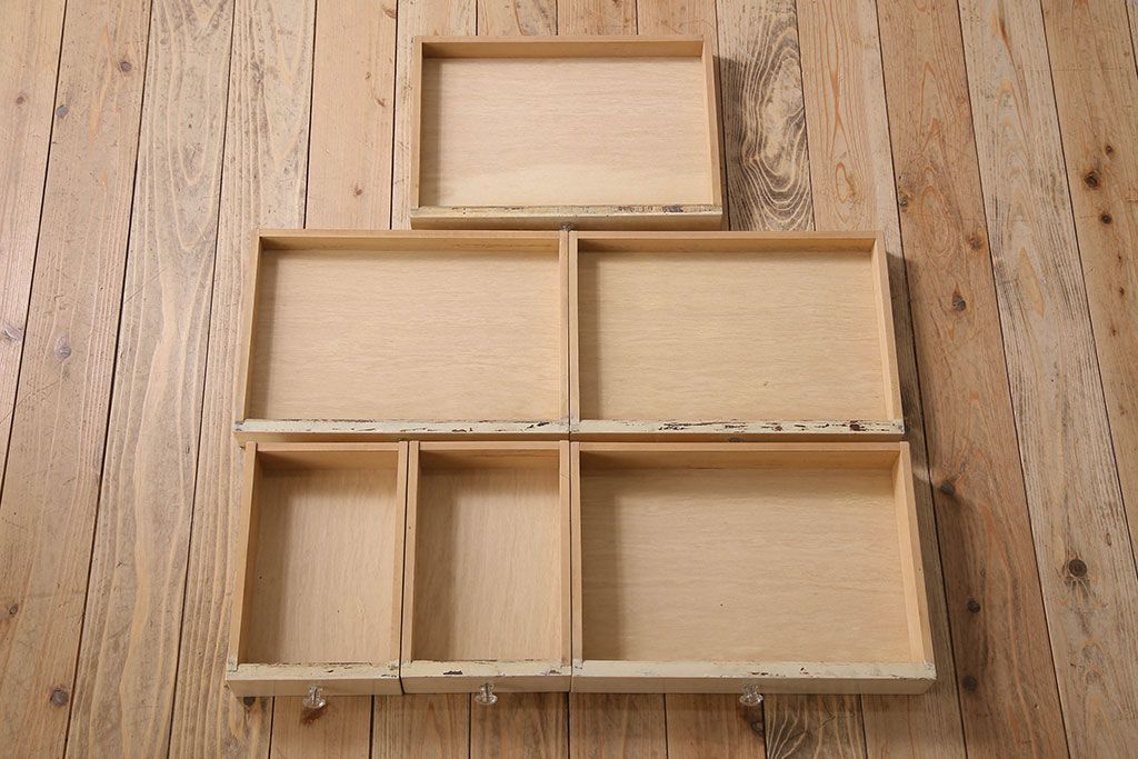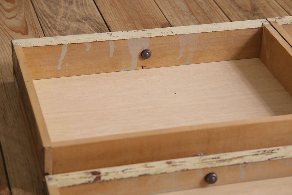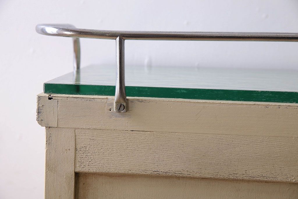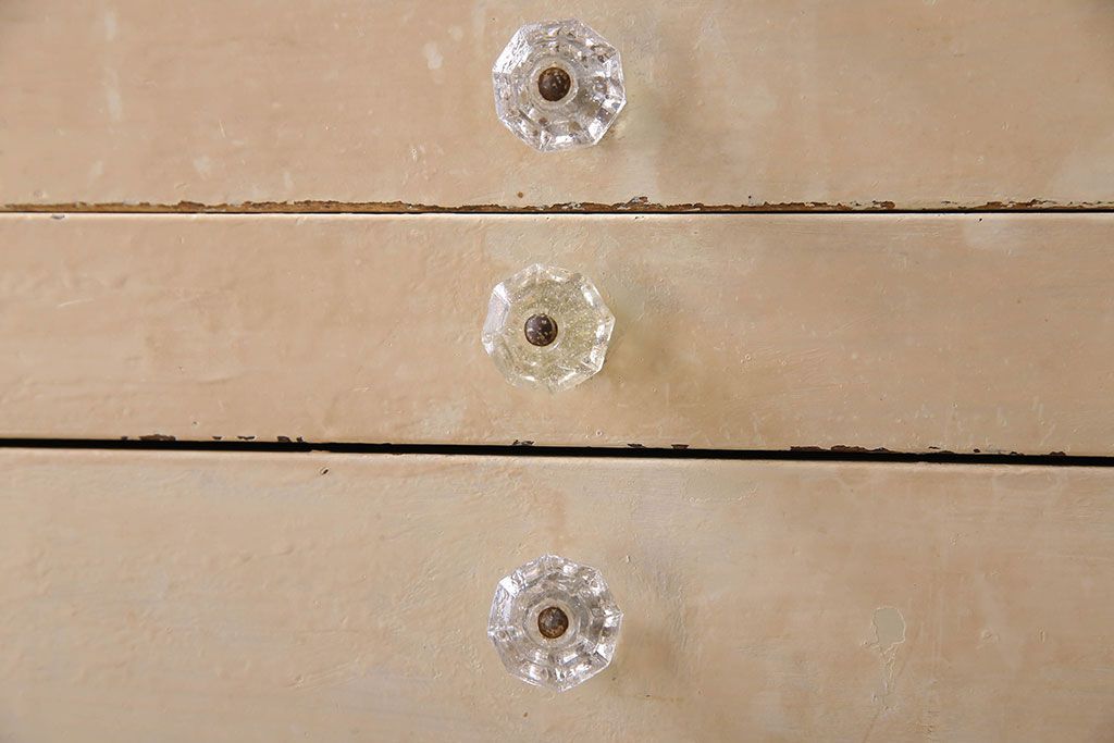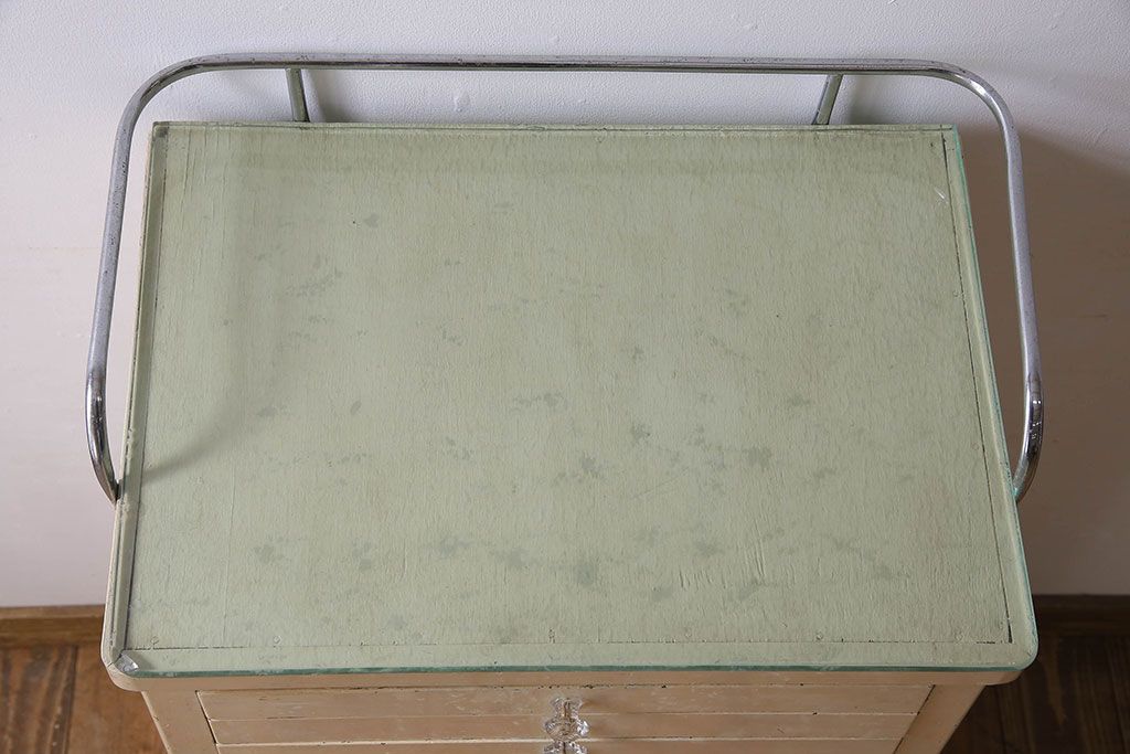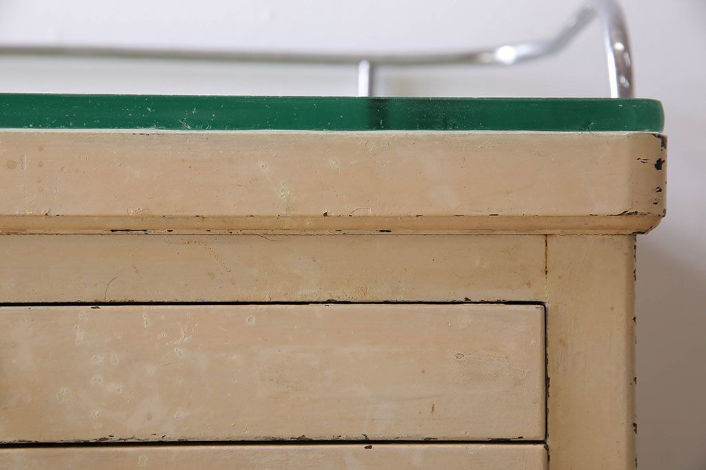 ラフジュ工房> チェスト・引き出し> サイドチェスト > アンティーク家具 ガラスの取っ手のペイントデンタルキャビネット ミストガラス