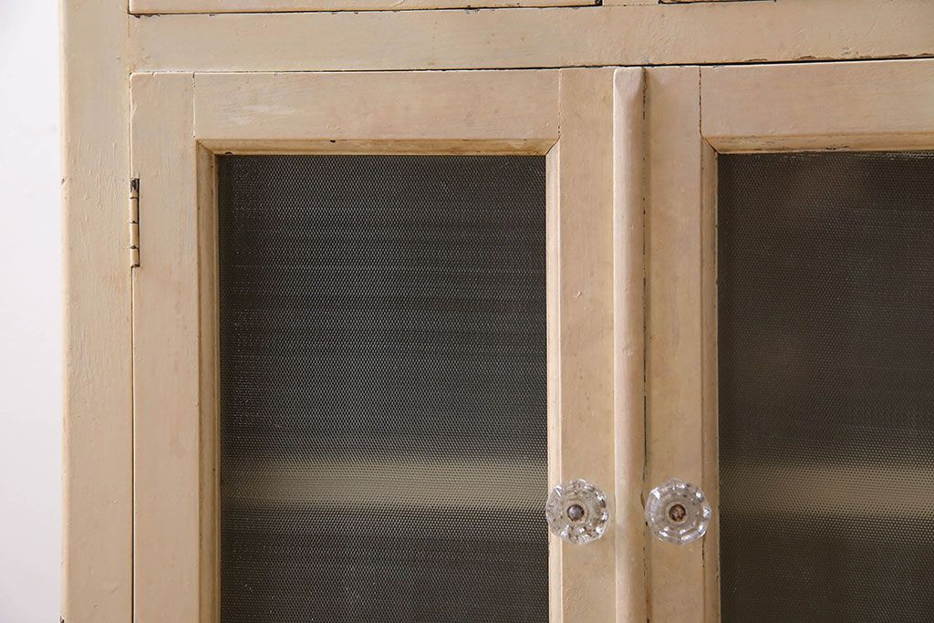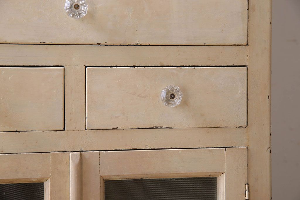 アンティーク家具 ガラスの取っ手のペイントデンタルキャビネット ミストガラス