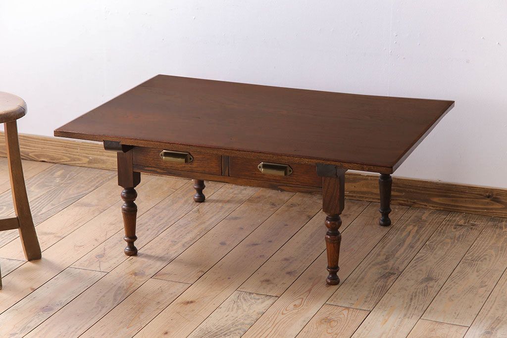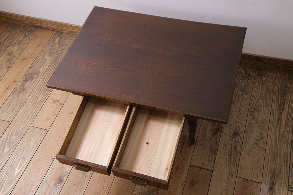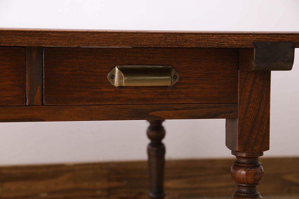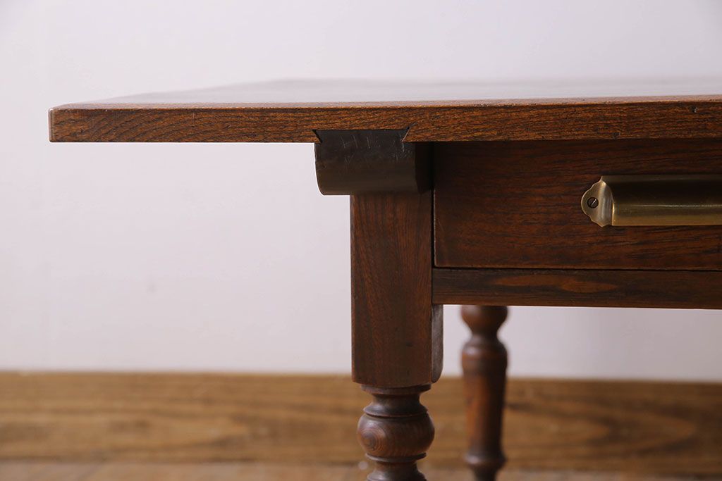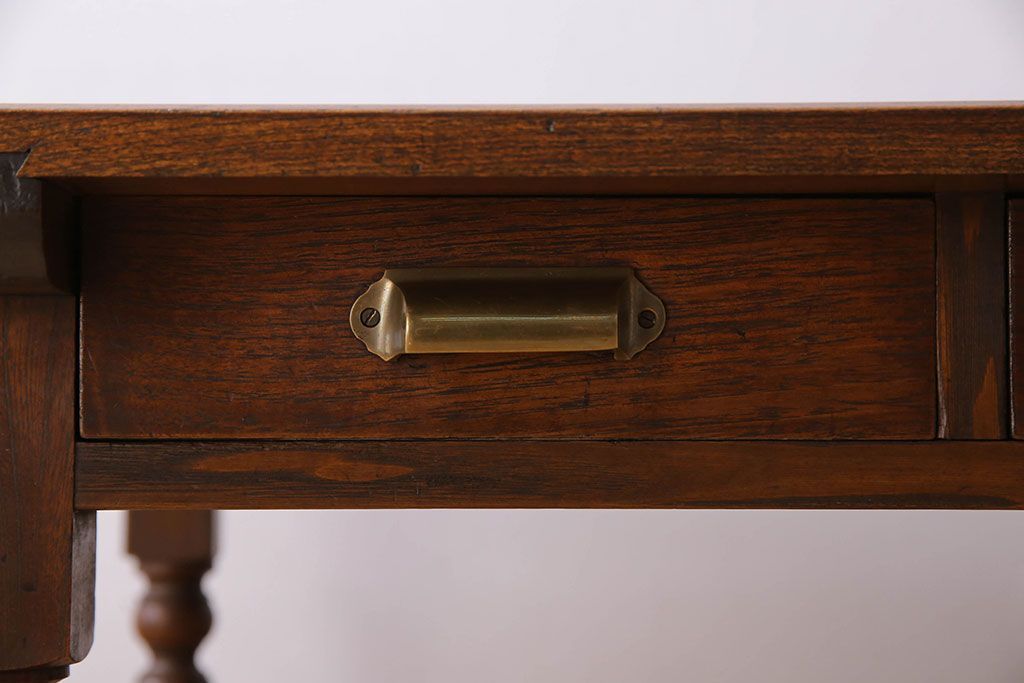 アンティーク家具 欅材 天板一枚板 大正期 おしゃれな脚の古い文机 和製アンティーク