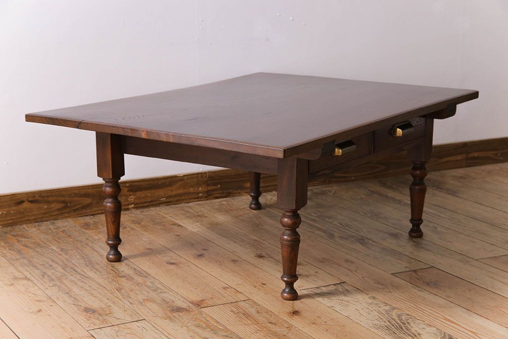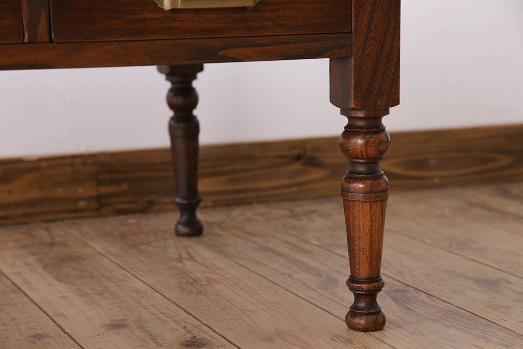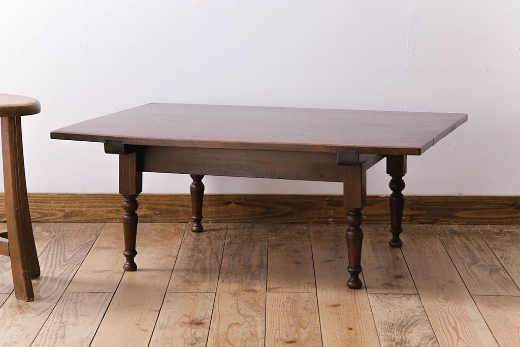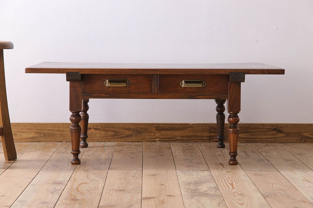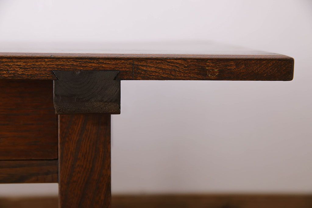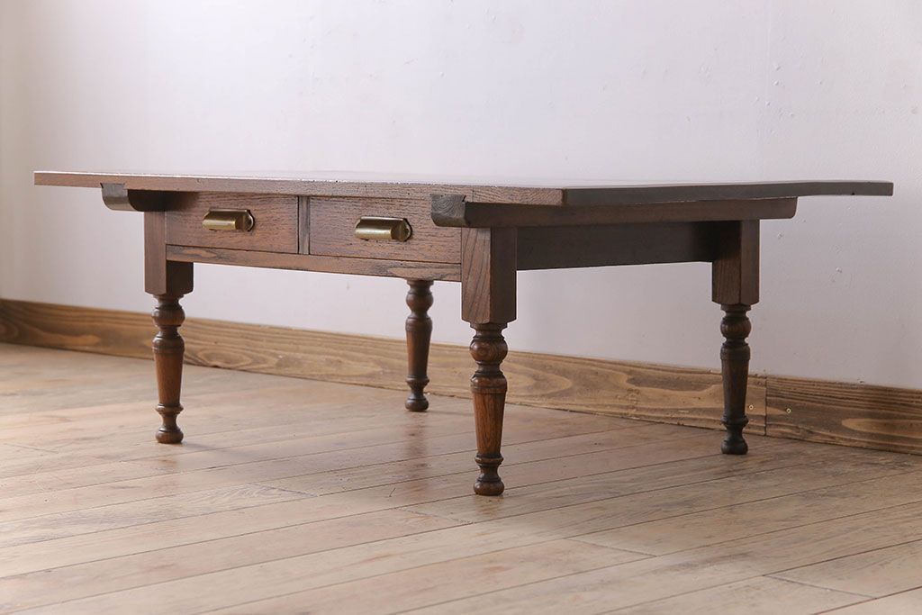 アンティーク家具 欅材 天板一枚板 大正期 おしゃれな脚の古い文机 和製アンティーク