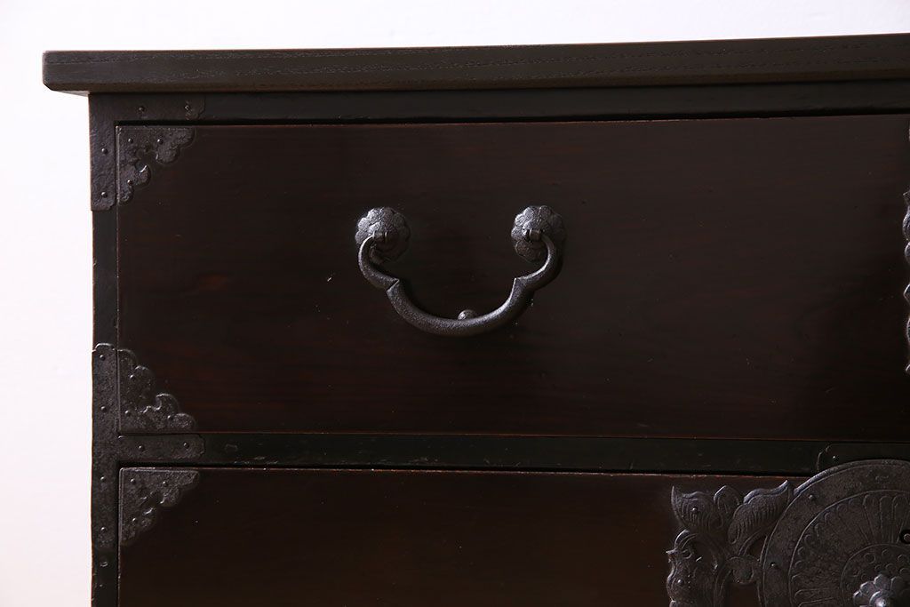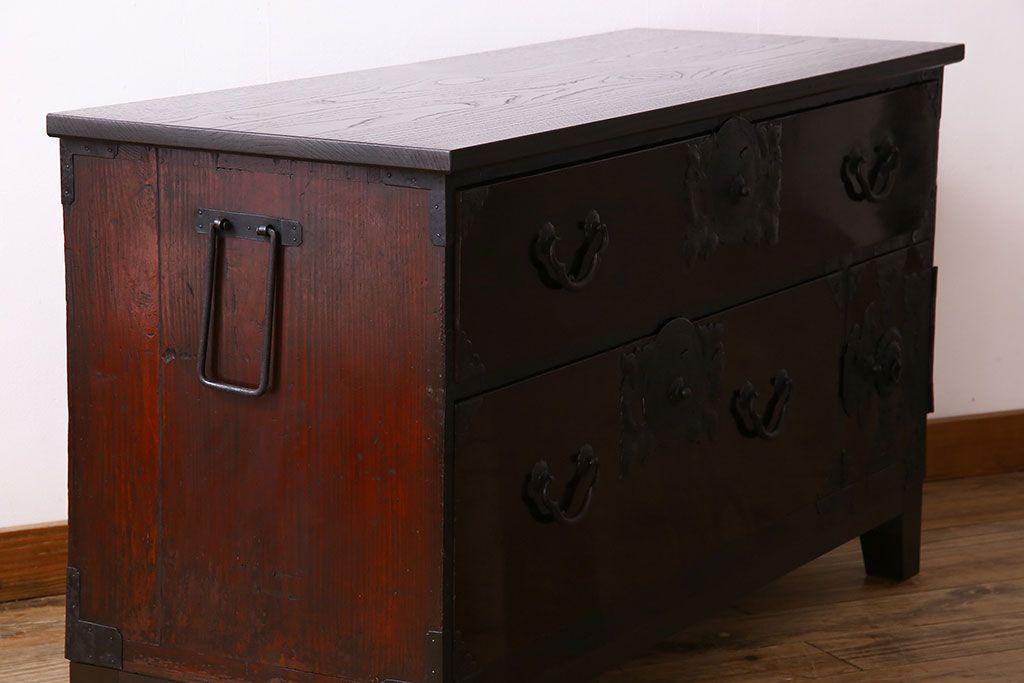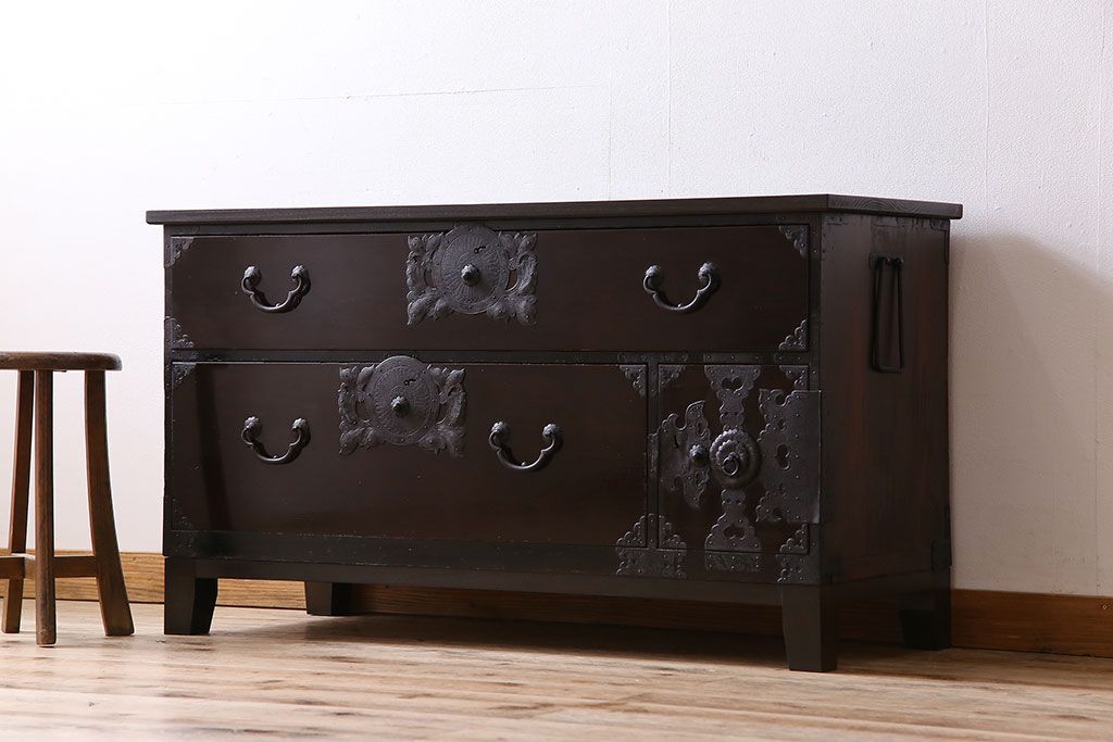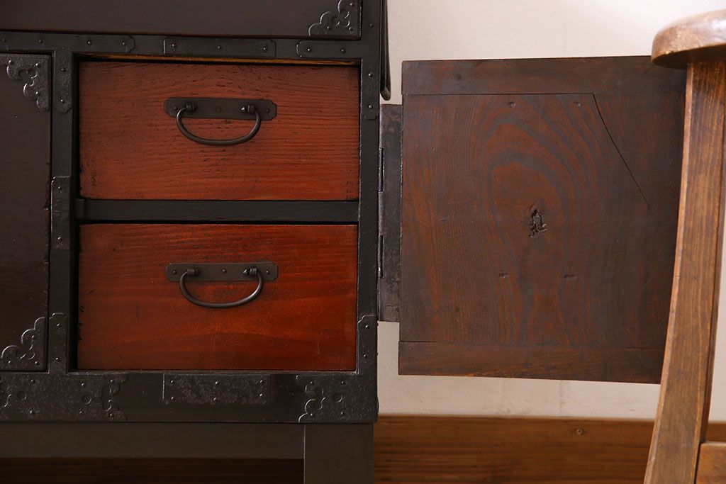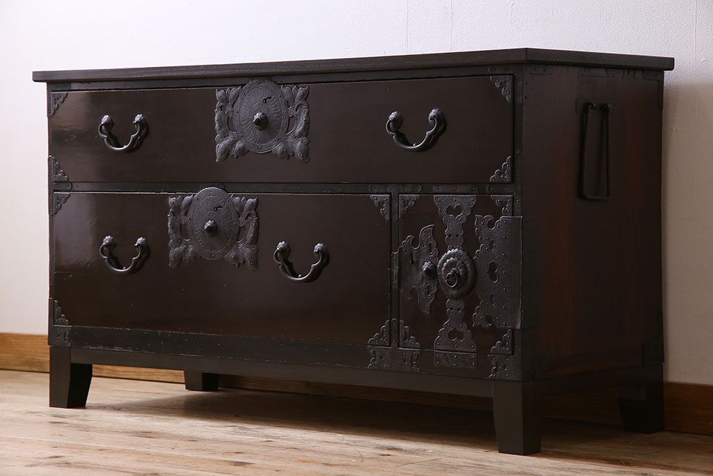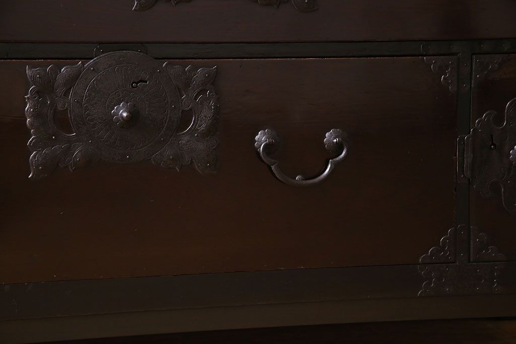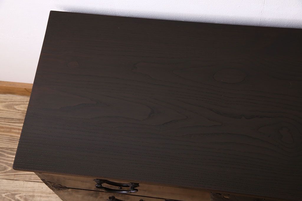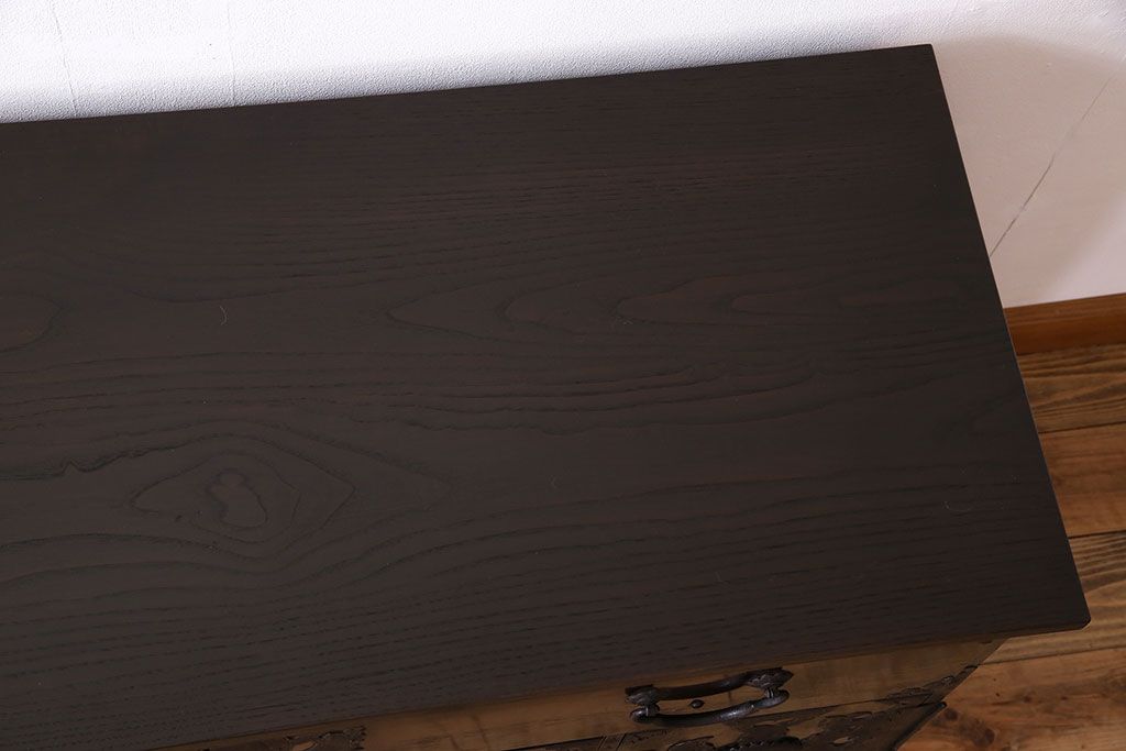 アンティーク家具 明治期 前面欅材 天板・脚付き!仙台箪笥ローボード(衣装箪笥)(2)