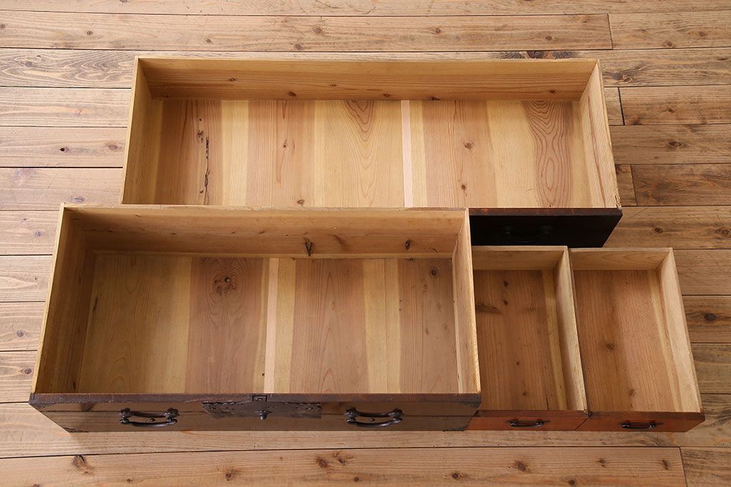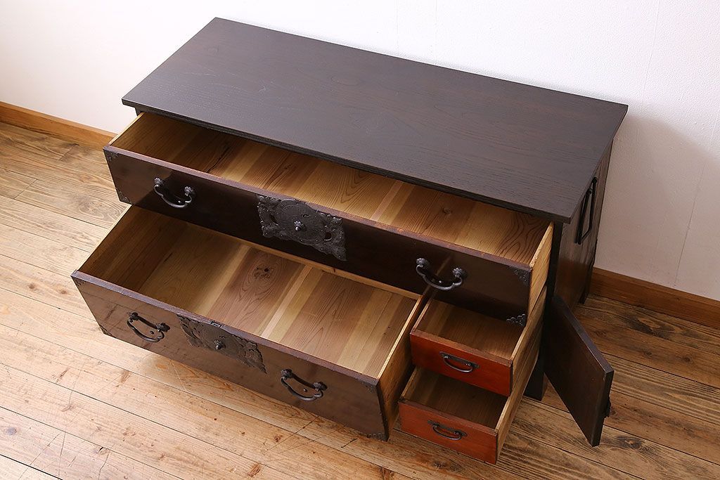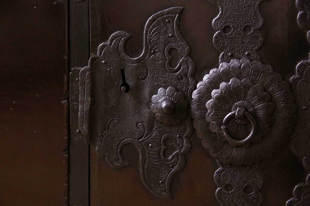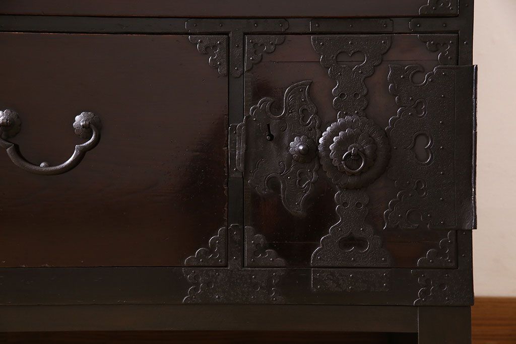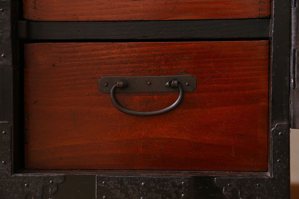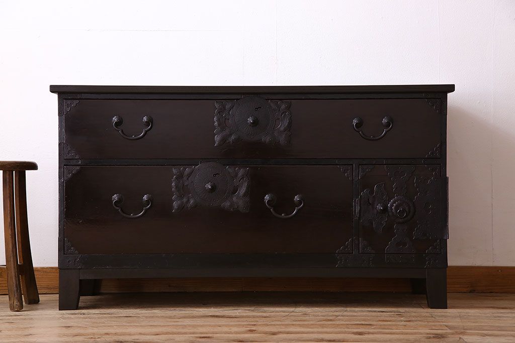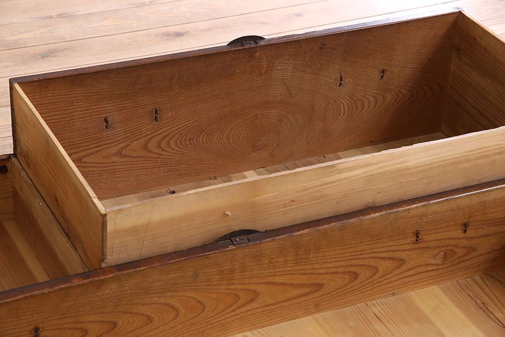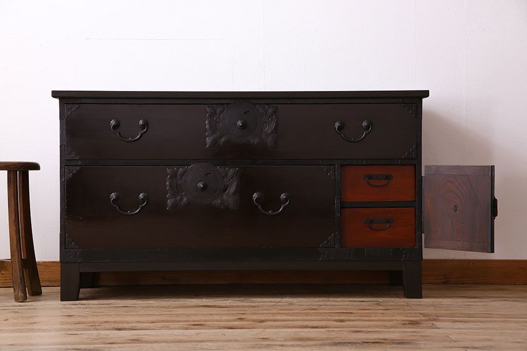 アンティーク家具 明治期 前面欅材 天板・脚付き!仙台箪笥ローボード(衣装箪笥)(2)