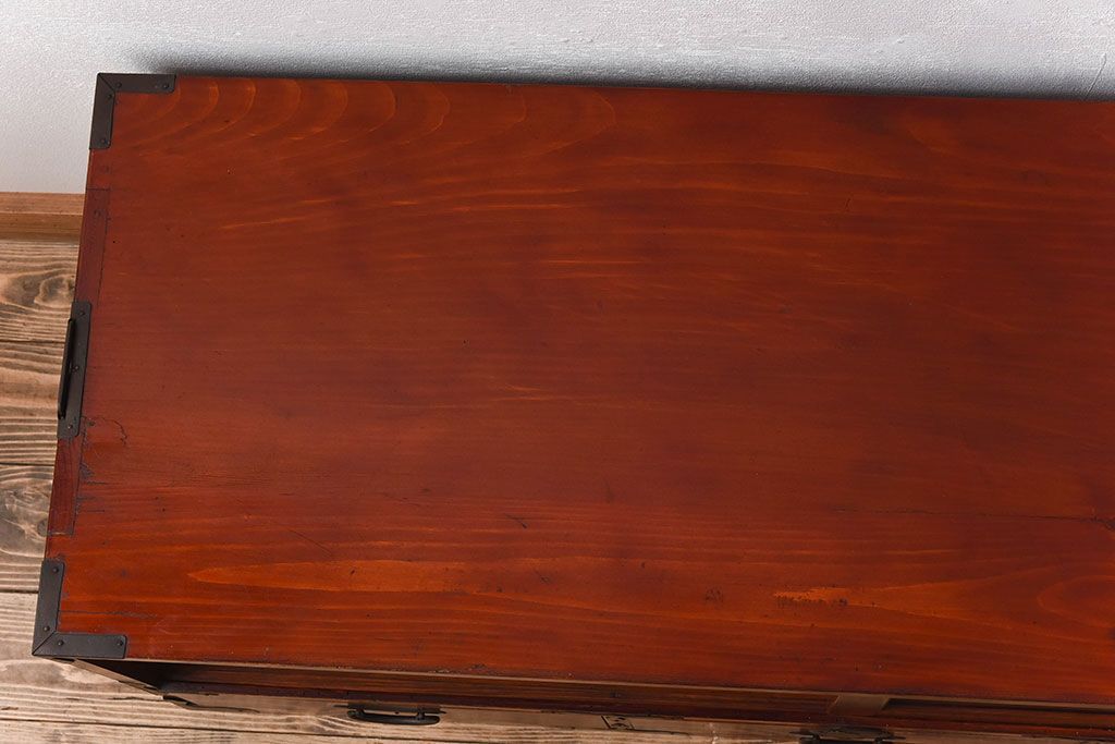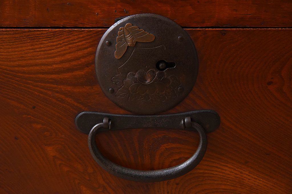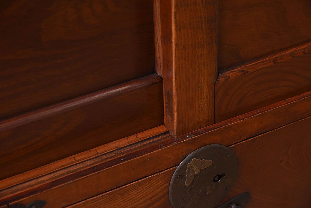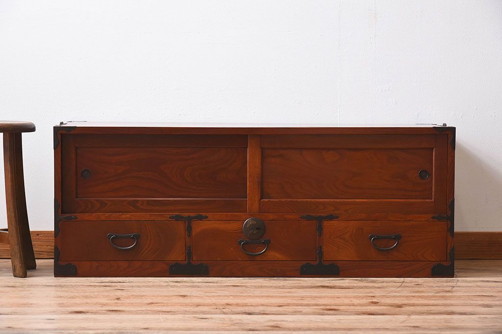 ラフジュ工房> 和箪笥 > アンティーク家具 前面欅材 漆塗りがきれいな箪笥ローボード