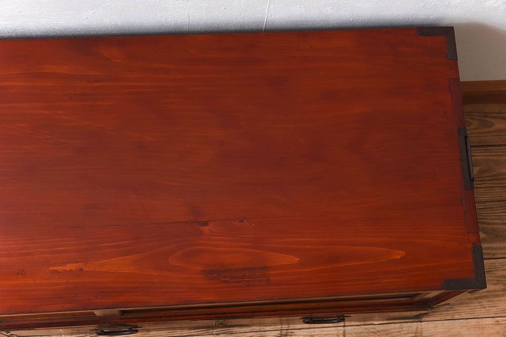 ラフジュ工房> キャビネット・戸棚> テレビ台・ローボード > アンティーク家具 前面欅材 漆塗りがきれいな箪笥ローボード