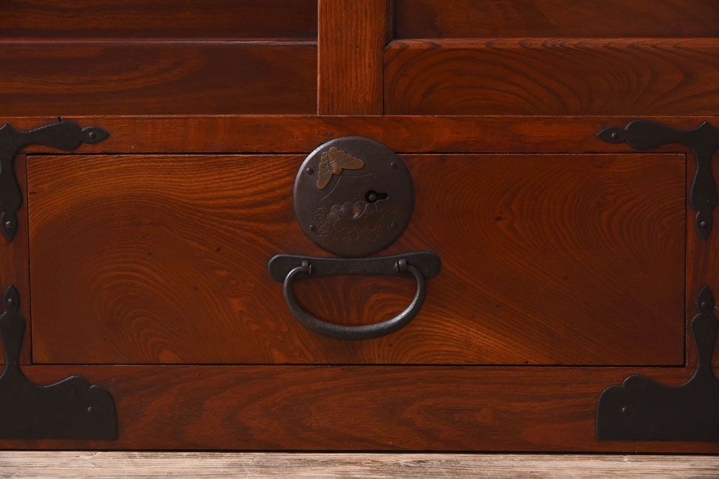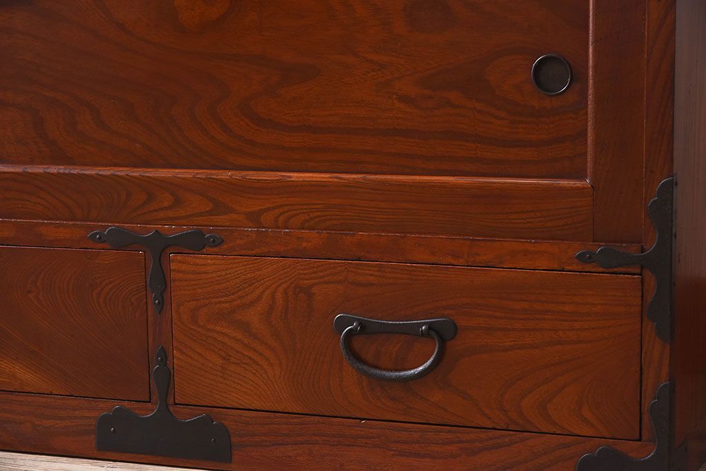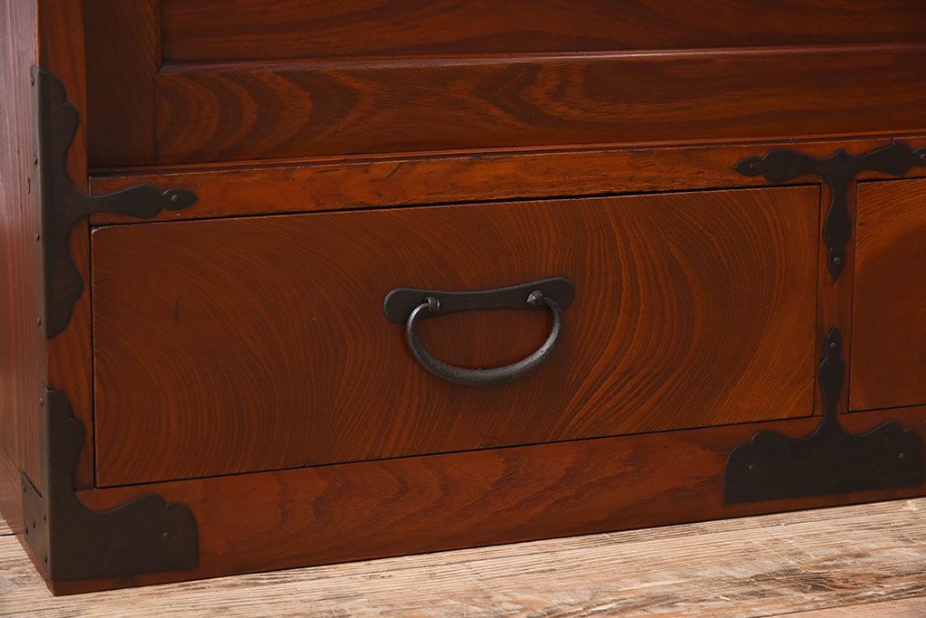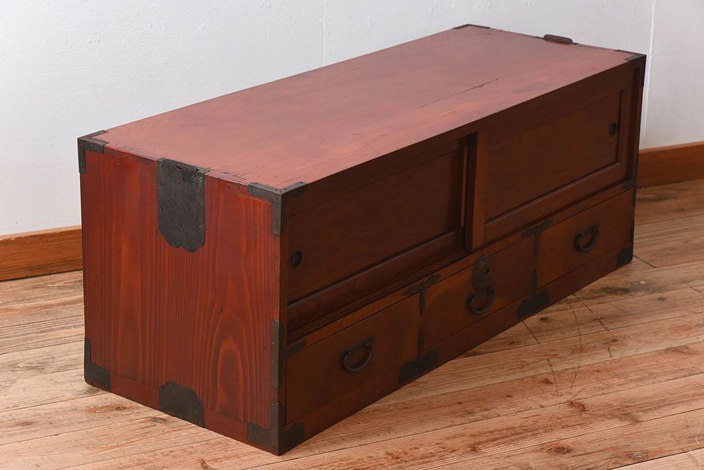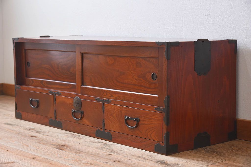 アンティーク家具 前面欅材 漆塗りがきれいな箪笥ローボード