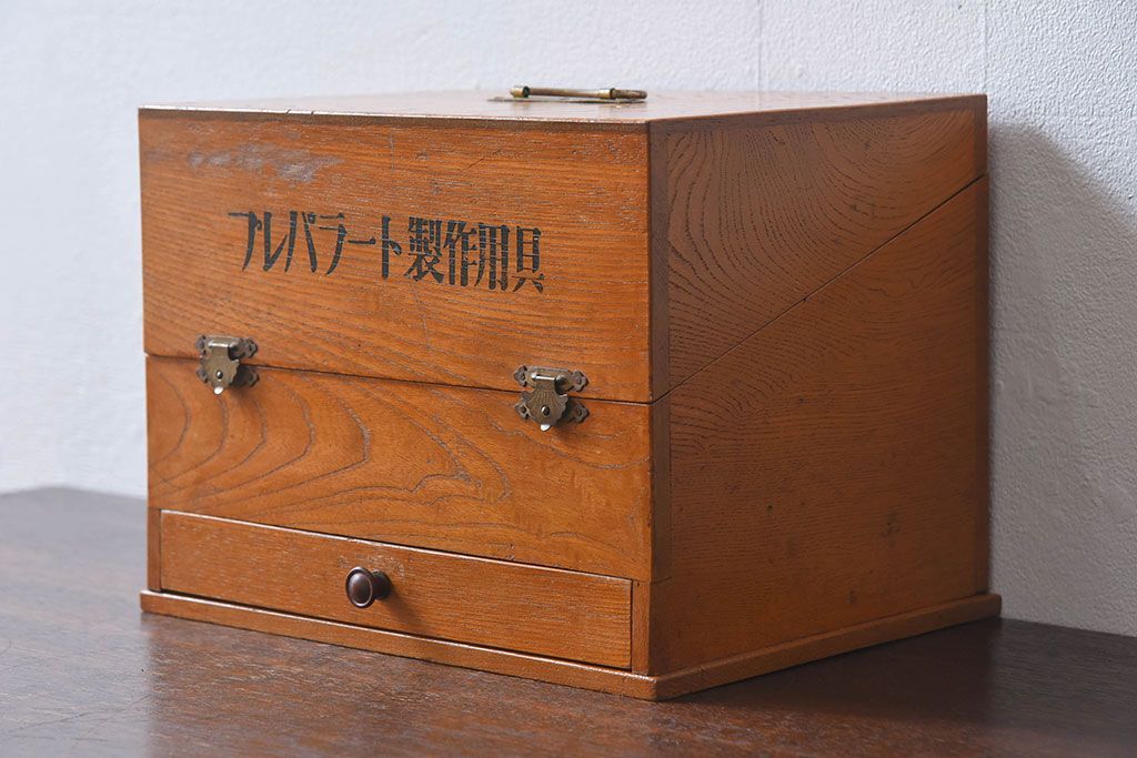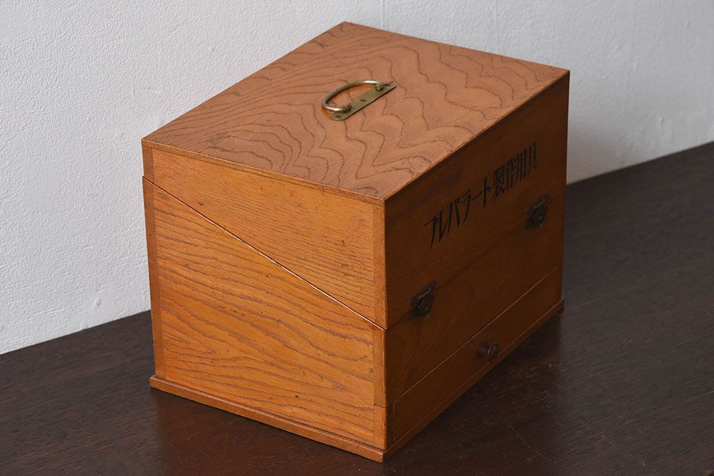 アンティーク雑貨 レトロデザイン 古い学校で使われていた小物入れ(木箱・収納箱)