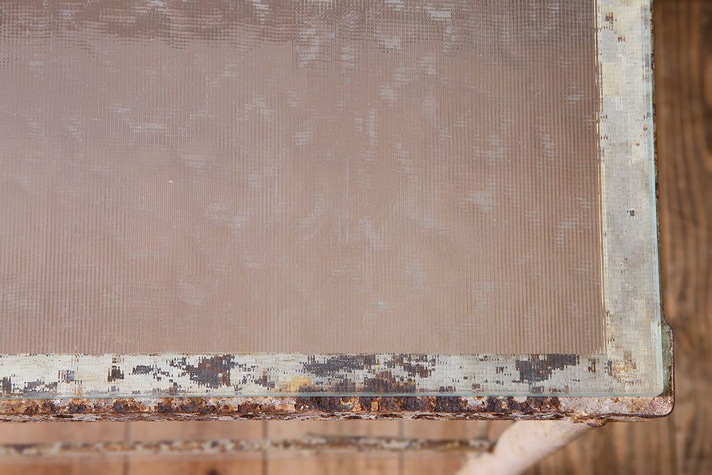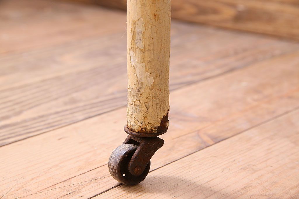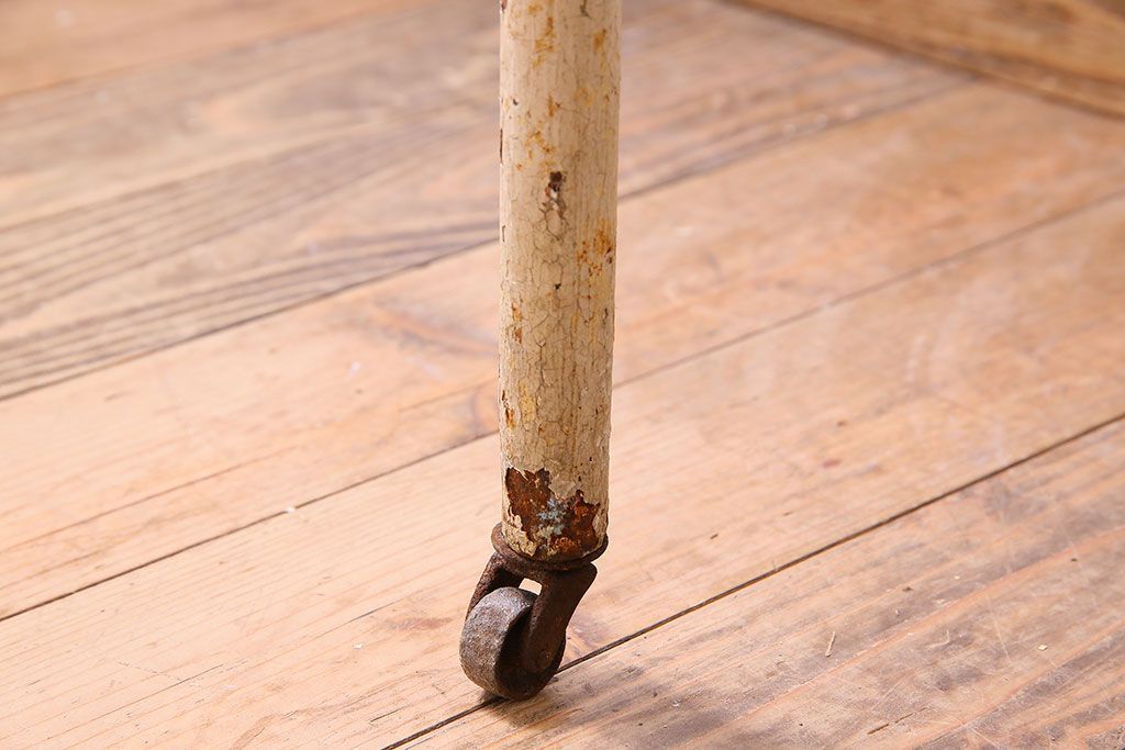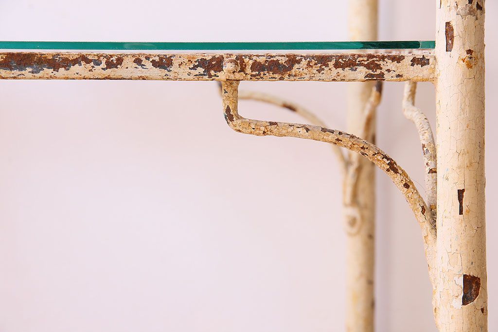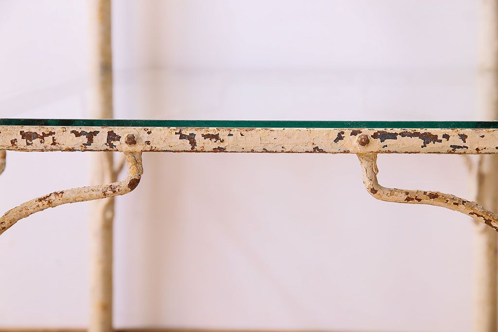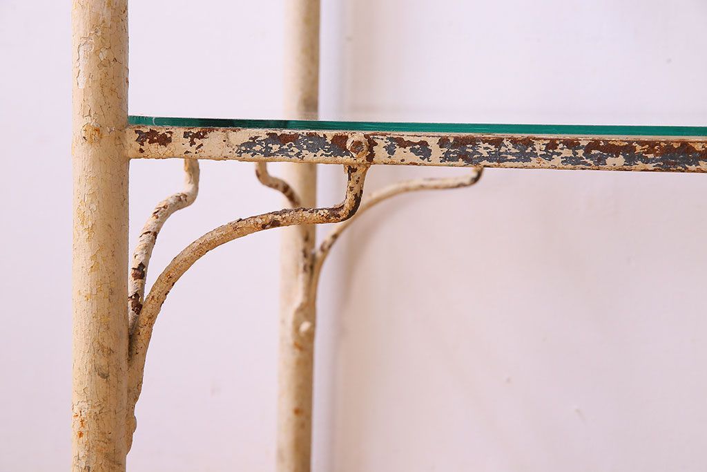 ラフジュ工房> 店舗什器 > レトロ家具 昭和レトロ アイアン製!ガラストップのキャスター付きテーブル(サイドテーブル、コンソールテーブル、アイアンラック、店舗什器)(R-024191)