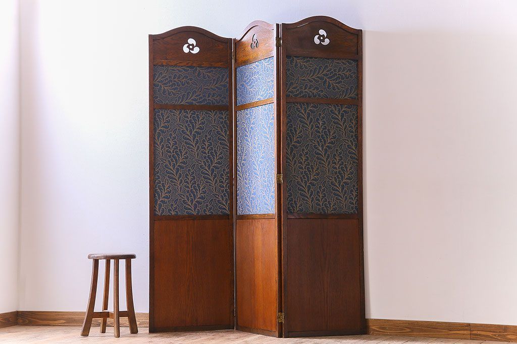 ラフジュ工房> 衝立・パーテーション > アンティーク雑貨 オーク材 イギリスアンティーク 屏風スクリーン(パーテーション)