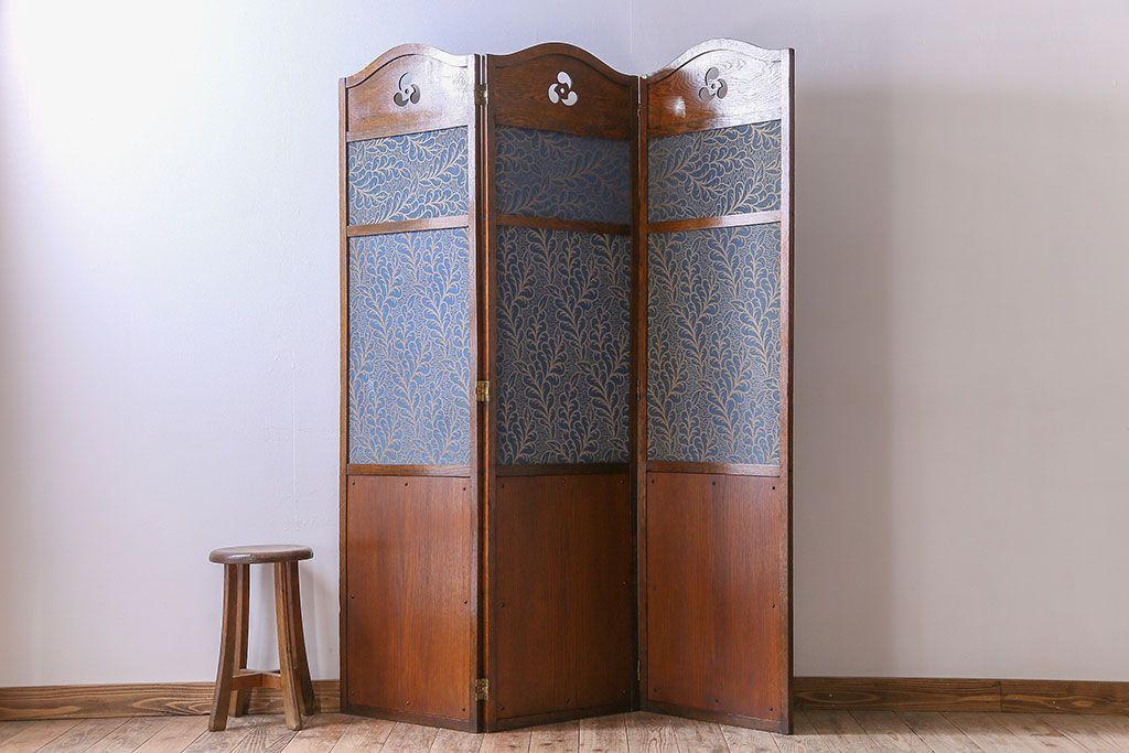 アンティーク雑貨 オーク材 イギリスアンティーク 屏風スクリーン(パーテーション)
