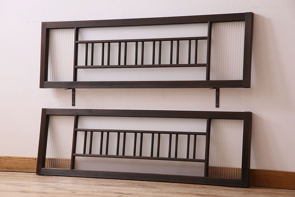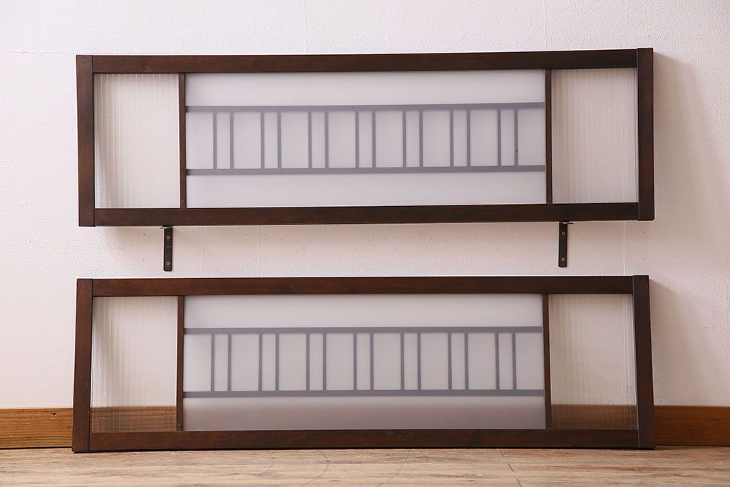 昭和レトロ モールガラス・すりガラス入り!古い木製の明り取り2枚セットです。