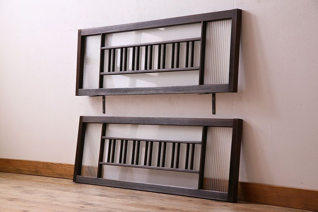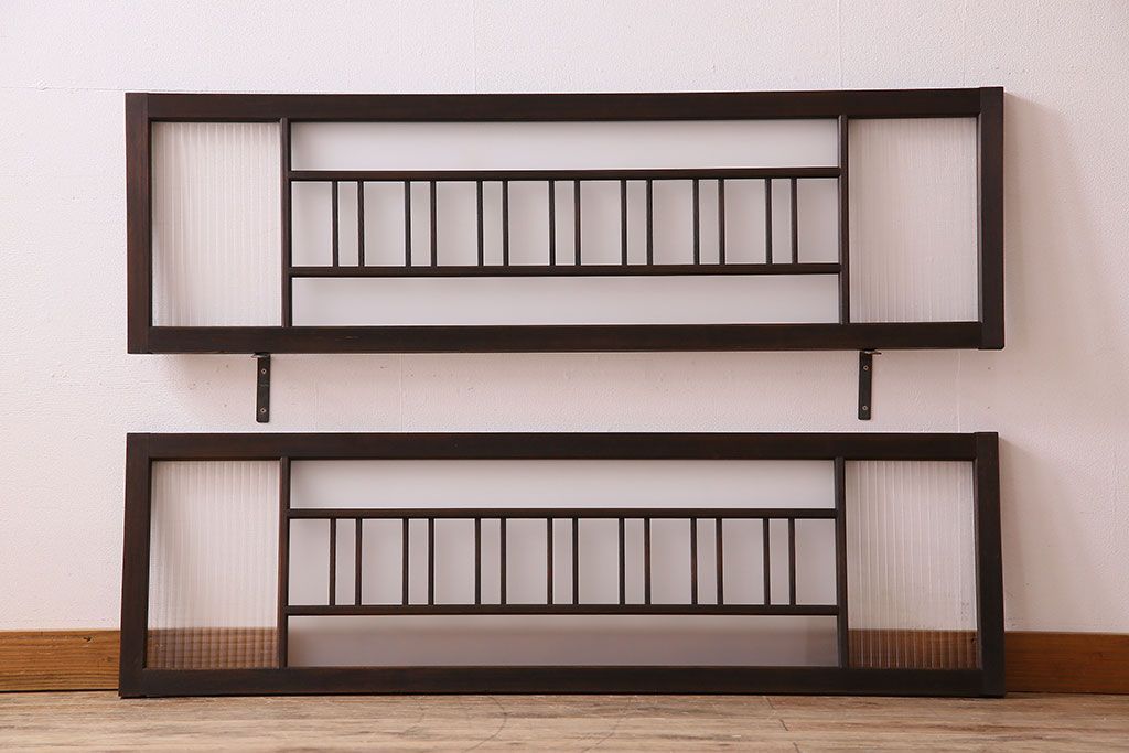 昭和レトロ モールガラス・すりガラス入り!古い木製の明り取り2枚セット
