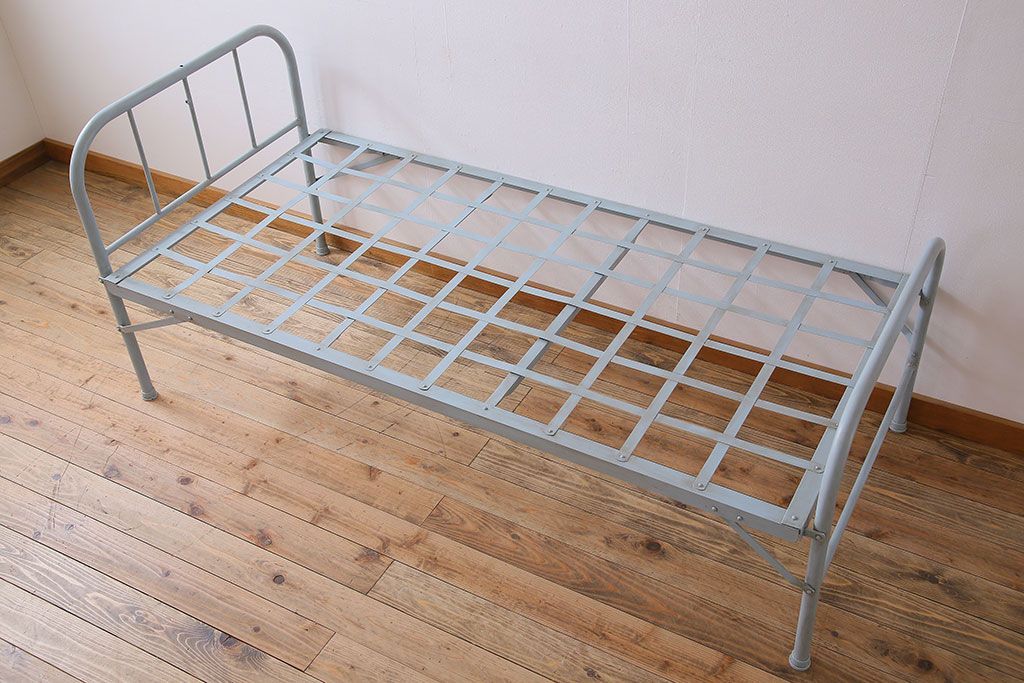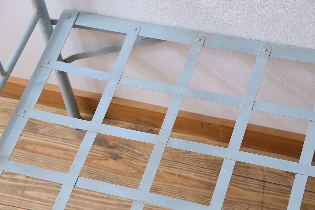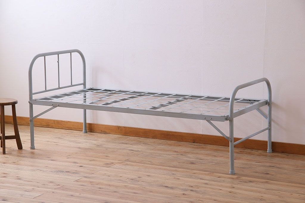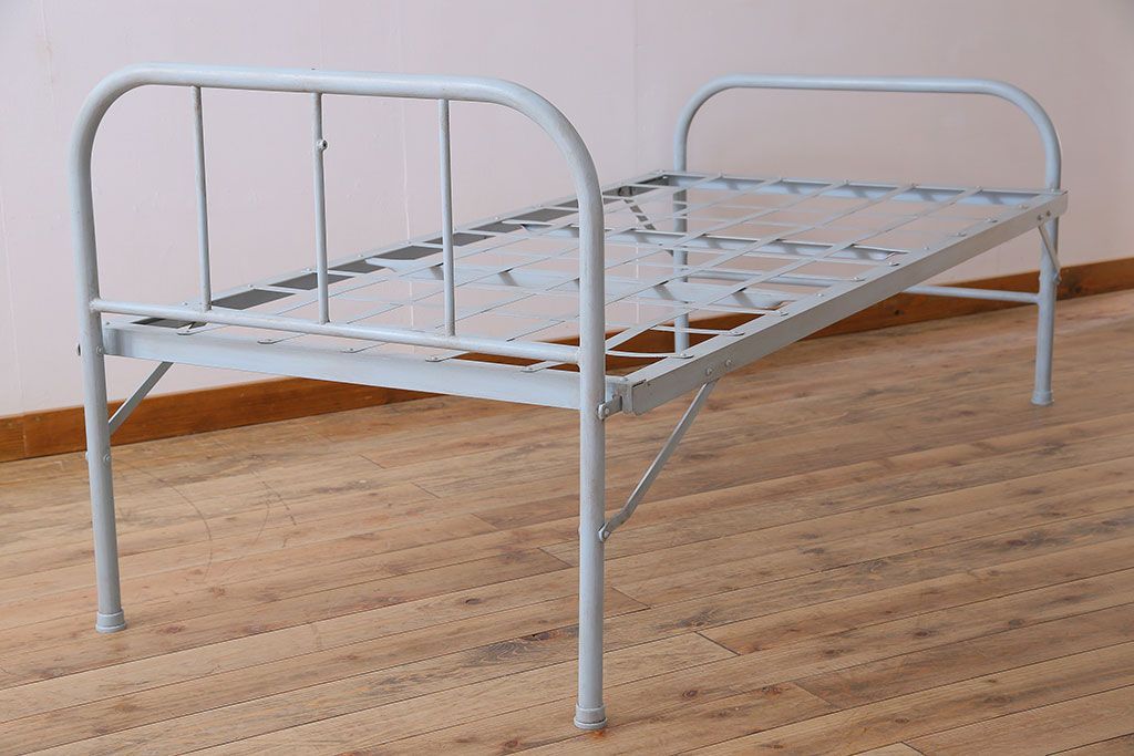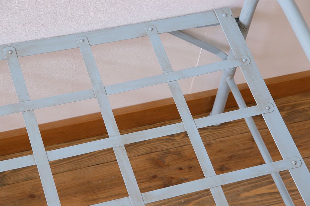 アンティークペイント アイアンフレームの折り畳み式シングルベッドです。