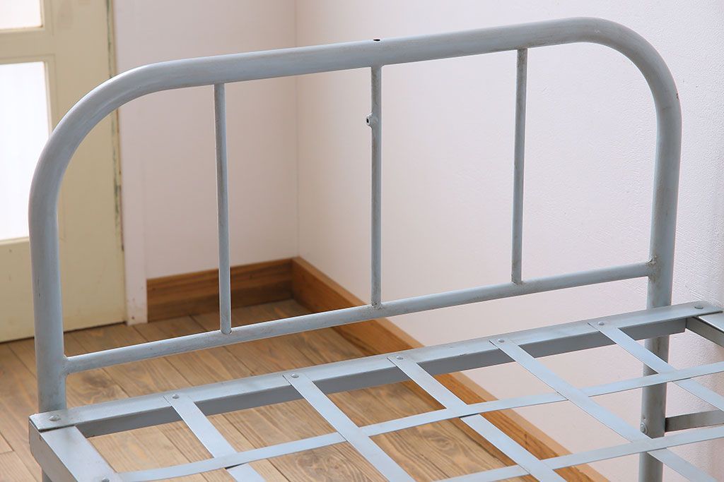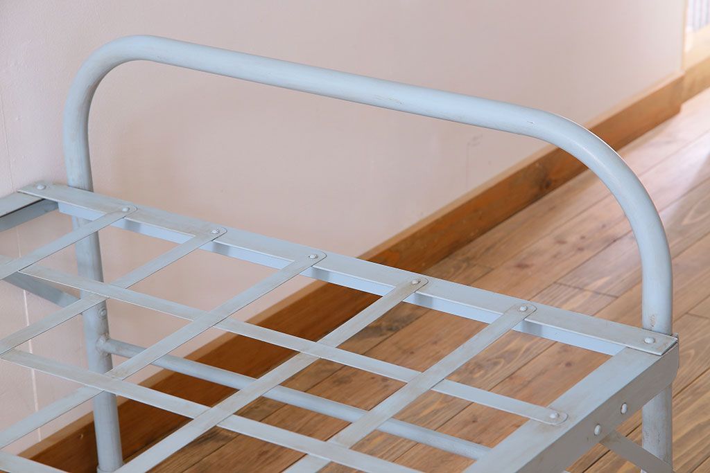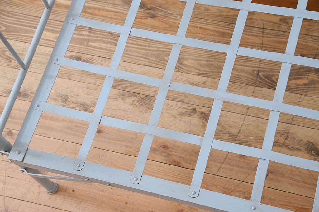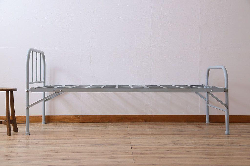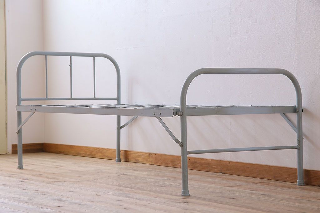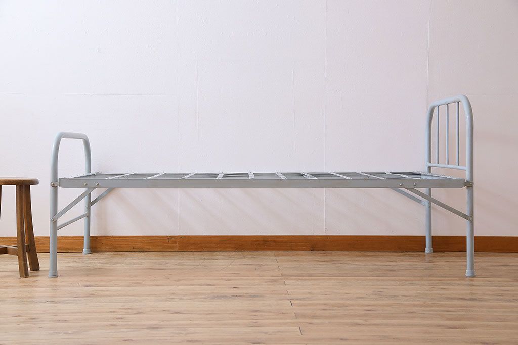 アンティークペイント アイアンフレームの折り畳み式シングルベッドです。