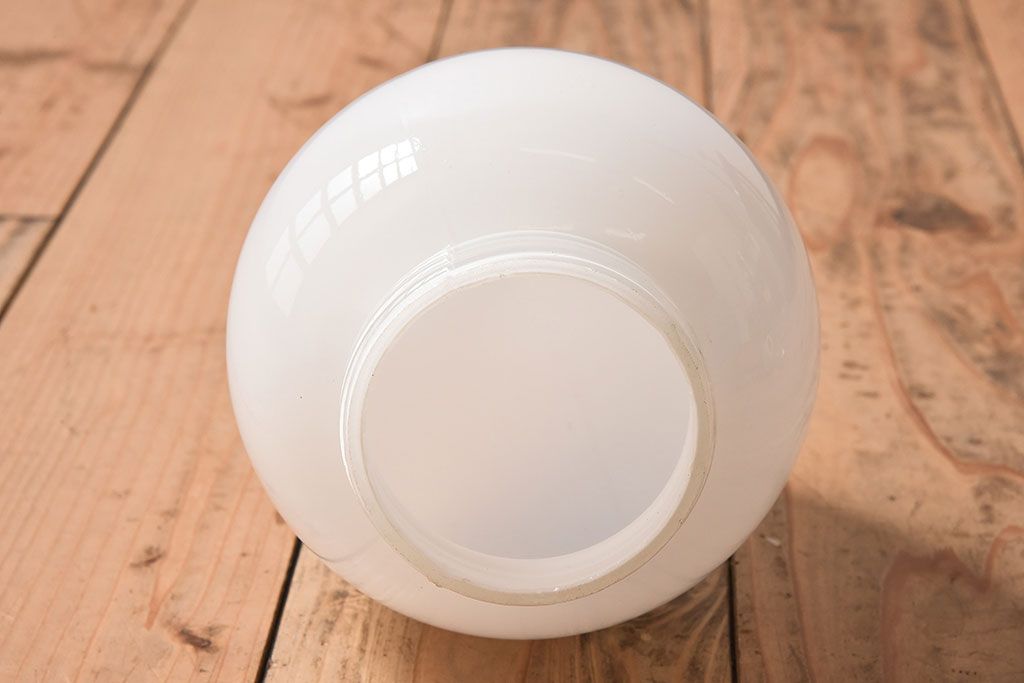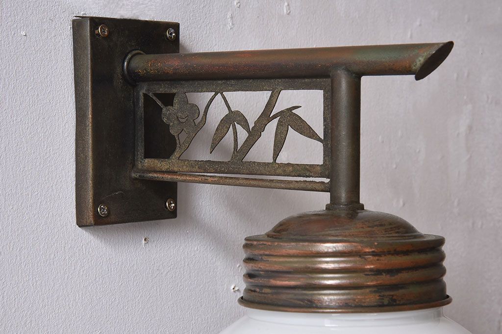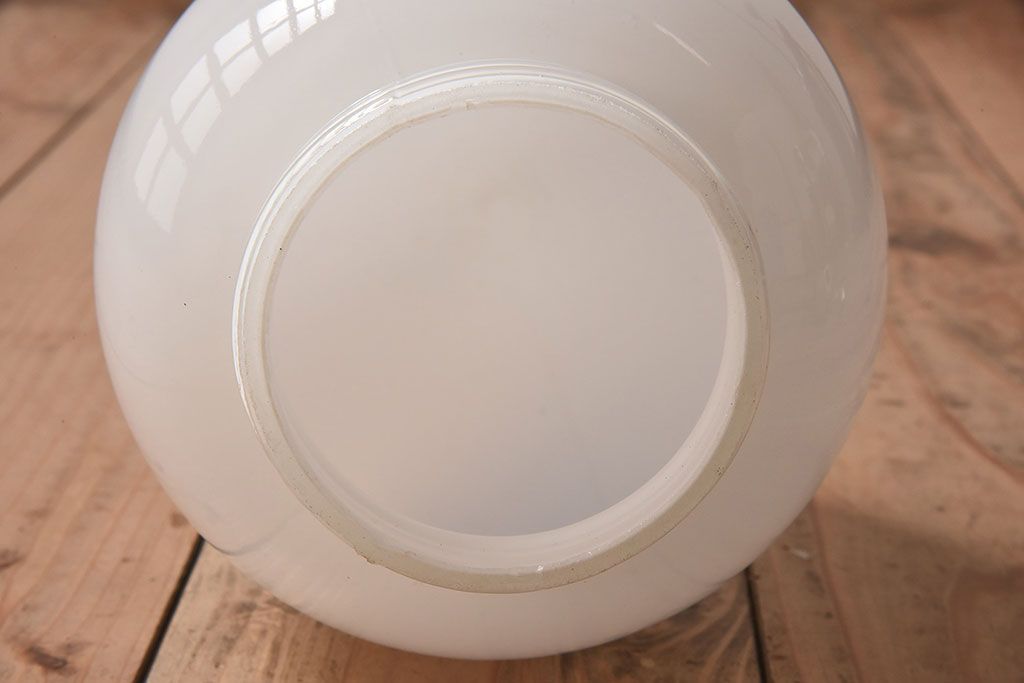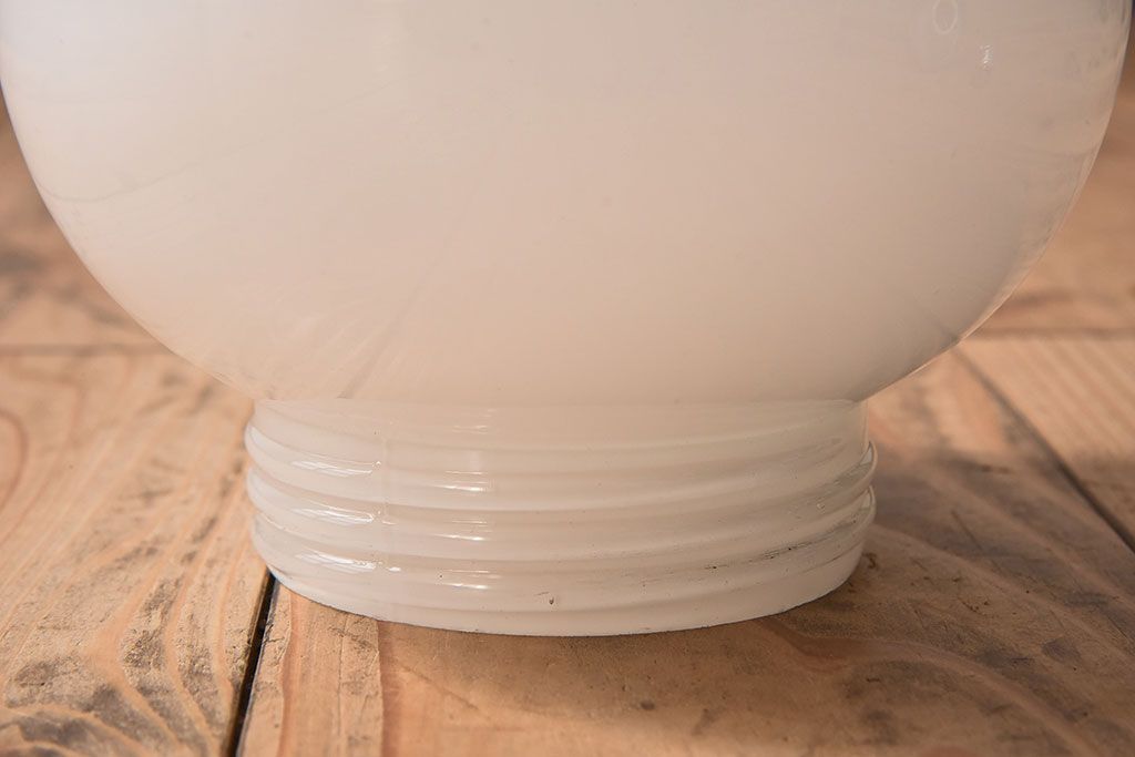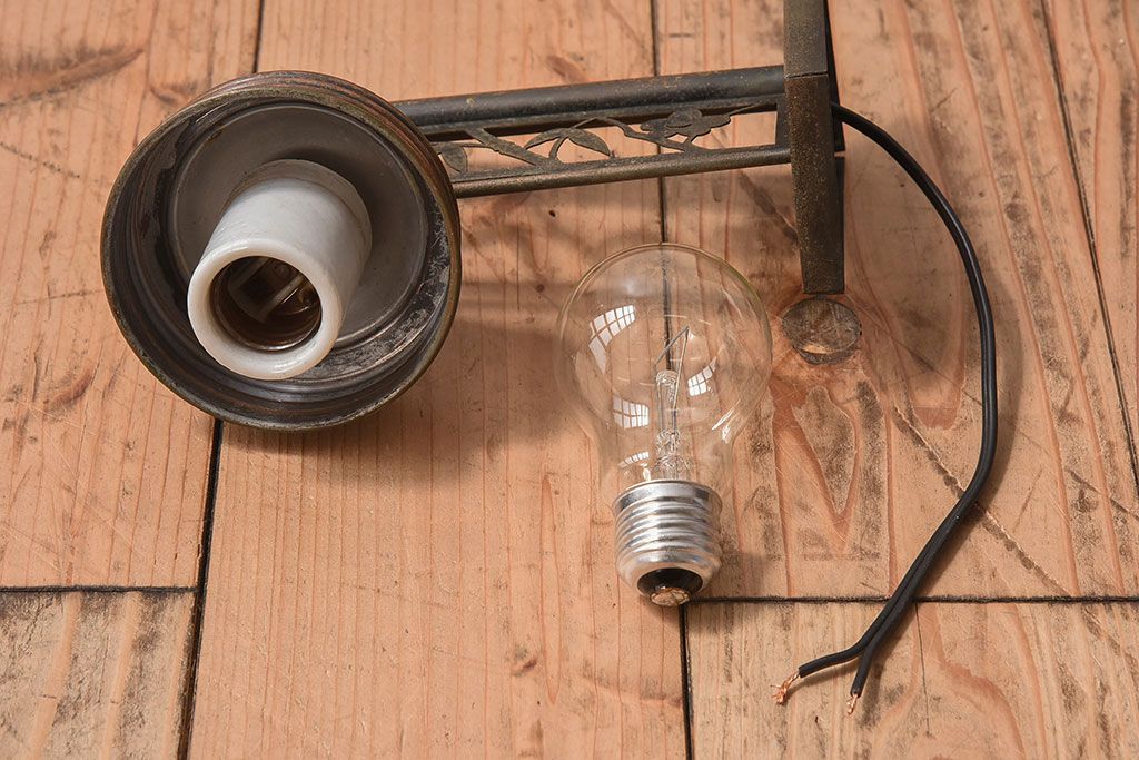 つぼみ型 白いガラスのアンティーク壁付け照明(ライト)です。 つぼみ型の丸いフォルムが愛らしい 和製アンティークの壁付け照明です。 金属部分には和を感じさせるデザインが施された 味わい深いお品です。 和モダンスタイルのインテリアにいかがでしょうか。 シェードの取付け部は棒を軸として360度回転します。 金具部分に錆が見られますが、目立つ傷・ダメージはなく、状態良好です。 画像にありますように点灯は確認しております。問題なくご使用いただけます。 適合電球はE26です。電球口径さえ合えば、LED電球への交換もお客様ご自身で簡単にできます。 取付け部は配線そのままです。取付け部の画像もございますので、ご確認の上お買い求めください。 使用上問題のあるダメージはありません。
