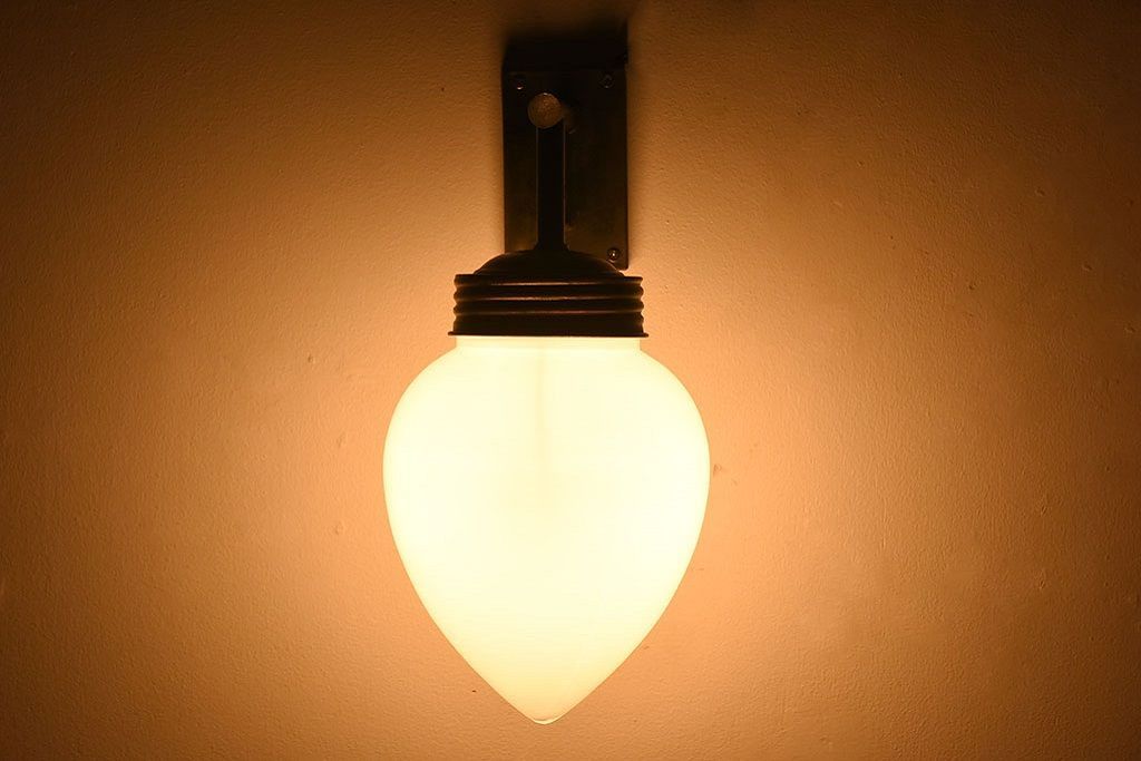 つぼみ型 白いガラスのアンティーク壁付け照明(ライト)