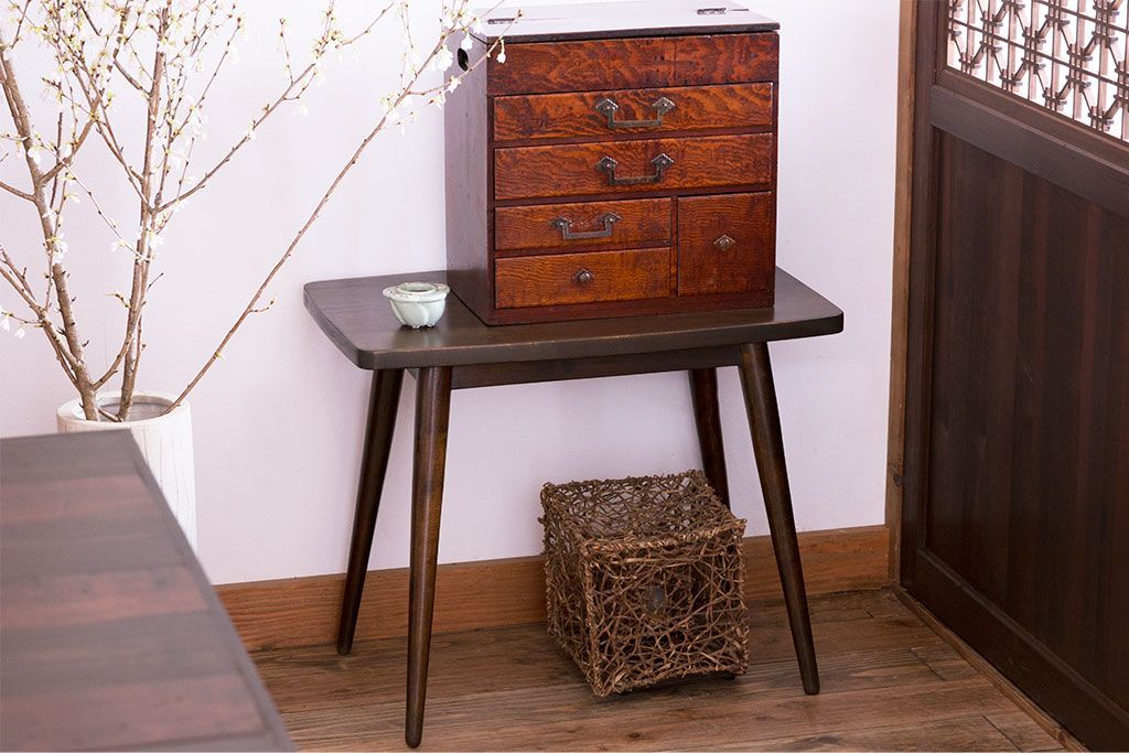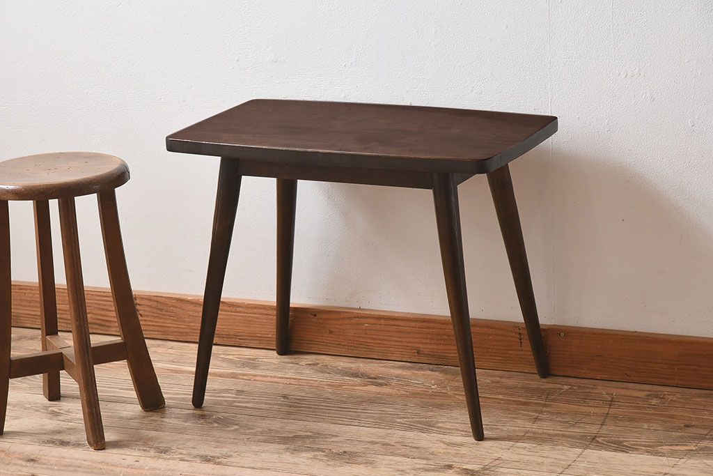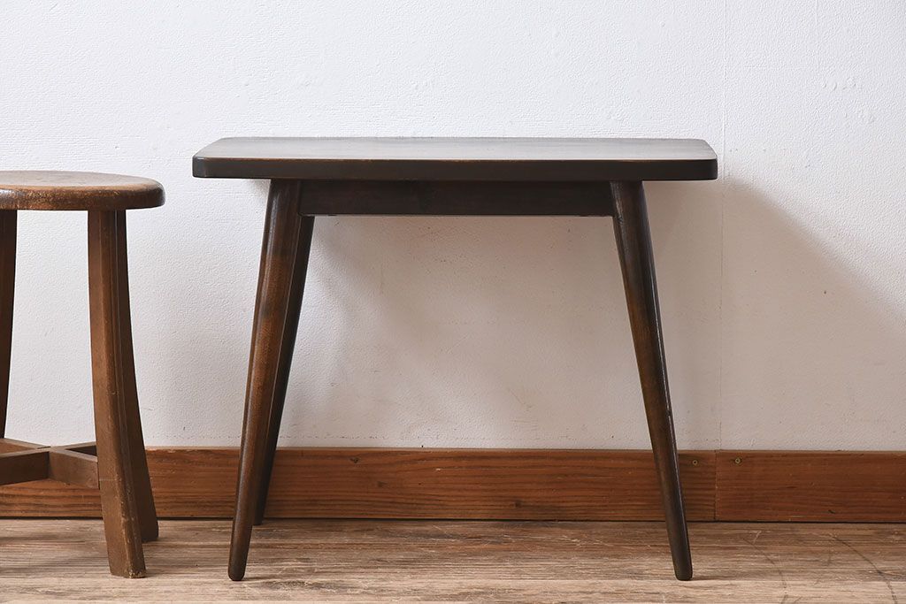 ラフジュ工房> テーブル> センターテーブル・ローテーブル > アンティーク家具 天板一枚板!シンプルな古い木のアンティークサイドテーブル