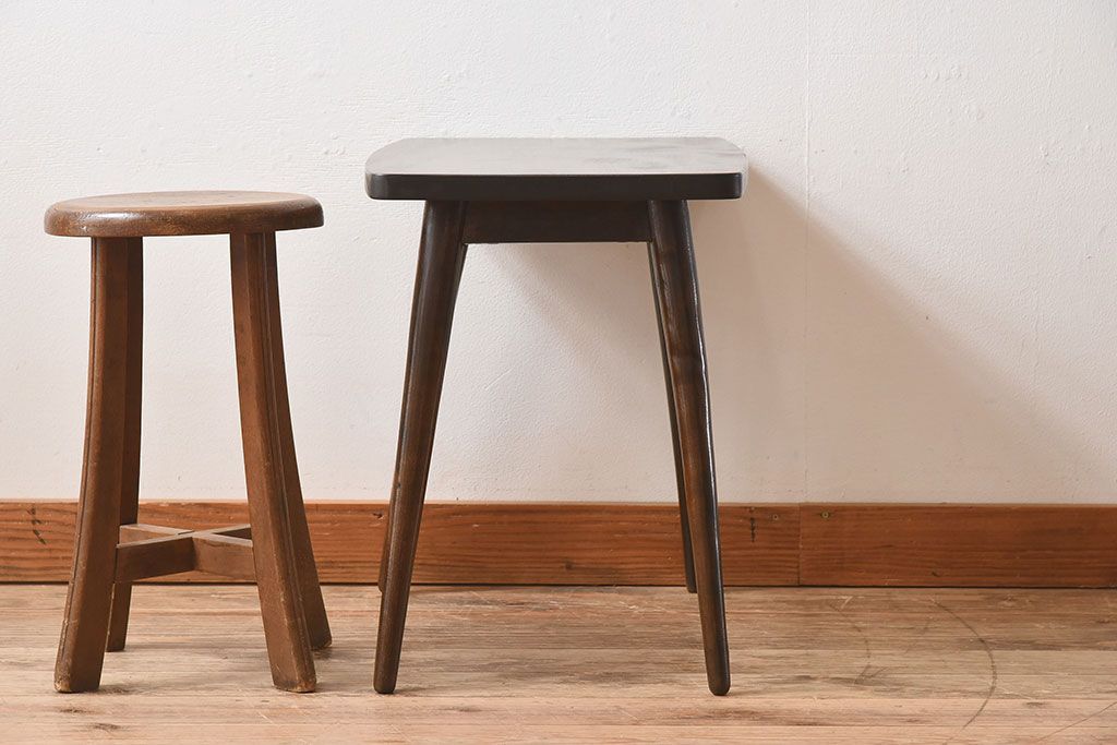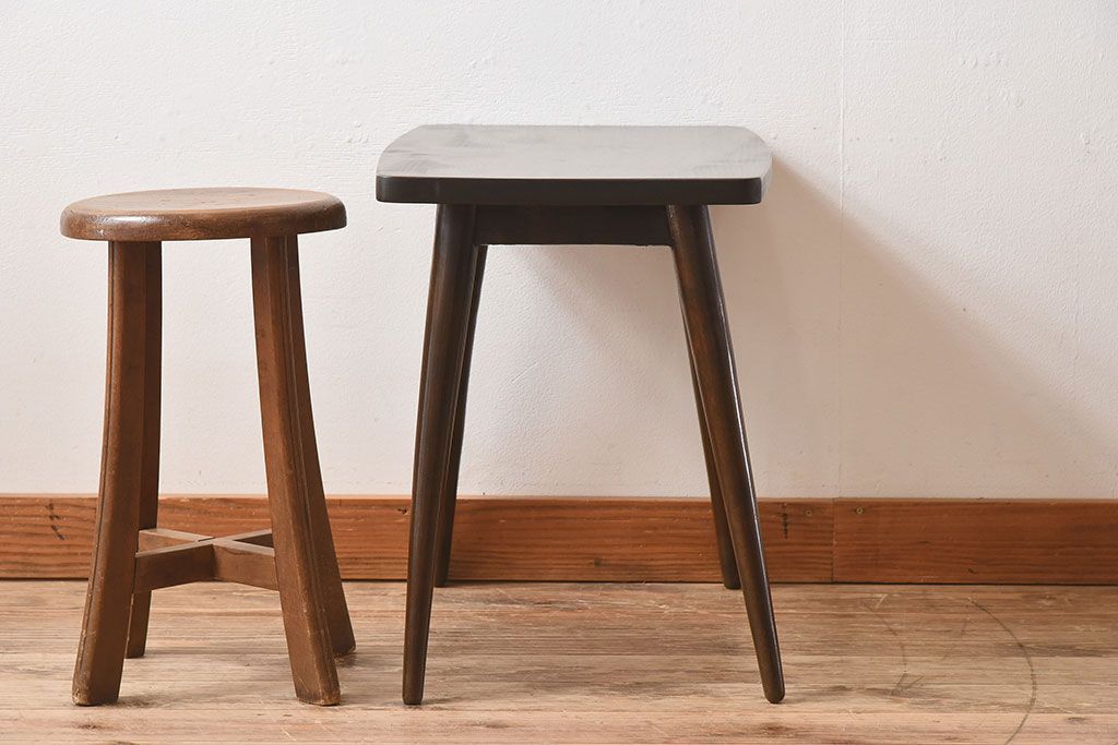 ラフジュ工房> テーブル> サイドテーブル > アンティーク家具 天板一枚板!シンプルな古い木のアンティークサイドテーブル