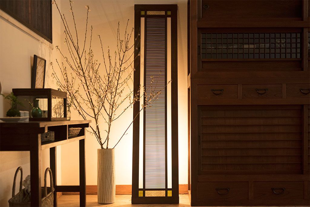 上品な水屋箪笥が主役。やさしい和家具で彩る、春待つダイニングにてこの商品の使用例がご覧いただけます。"