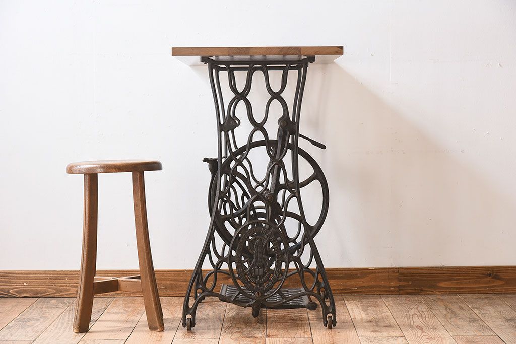 ラフジュ工房> テーブル> サイドテーブル > レトロ家具 アンティーク シンプルレトロなシンガー社製ミシンテーブル(シンガーミシン、ミシン台)(2)