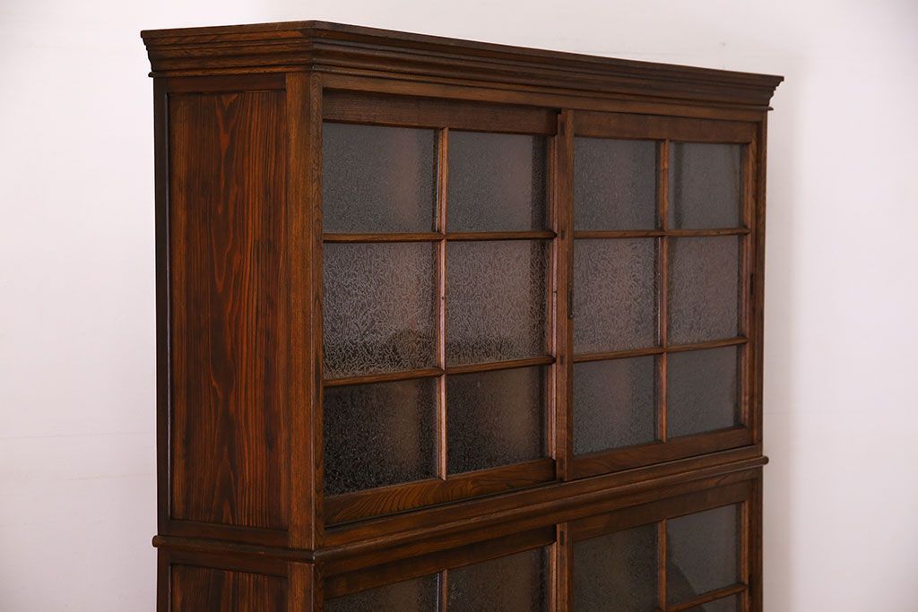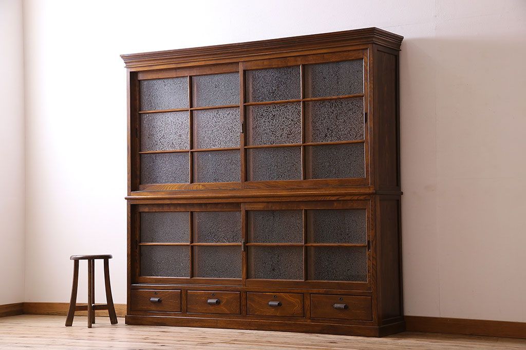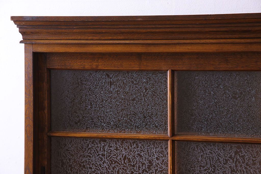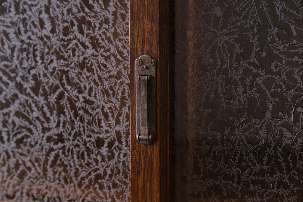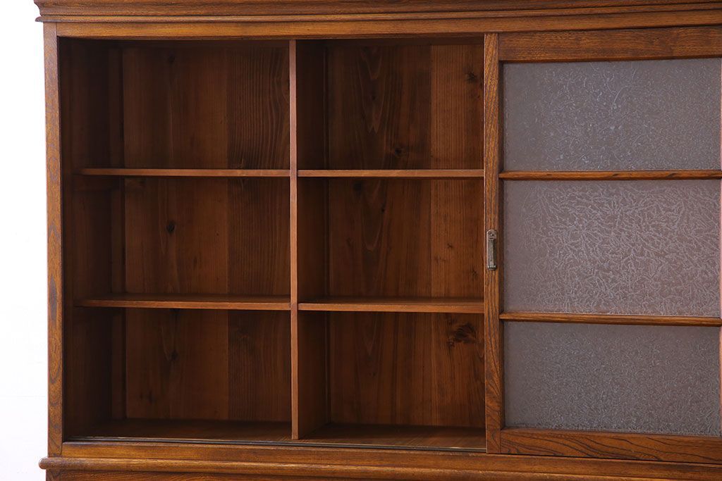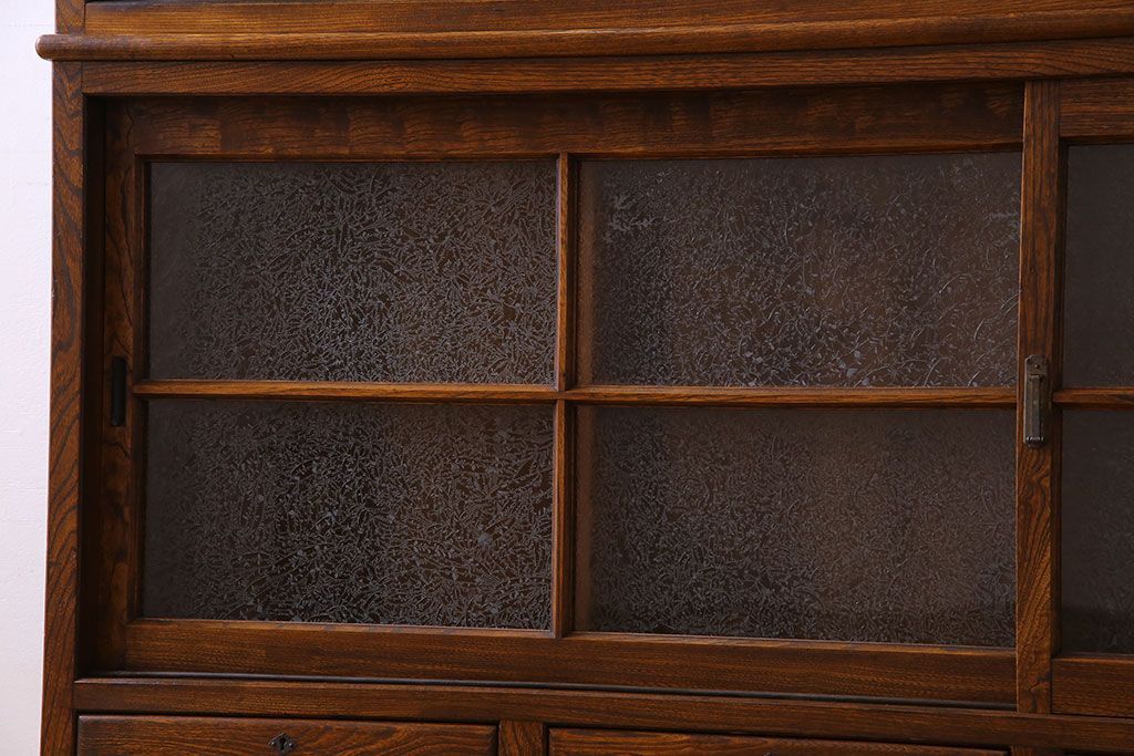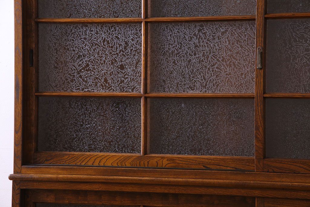アンティーク家具 和製アンティーク 極上品!結霜ガラス引き戸の二段重ね収納棚(食器棚・水屋箪笥)