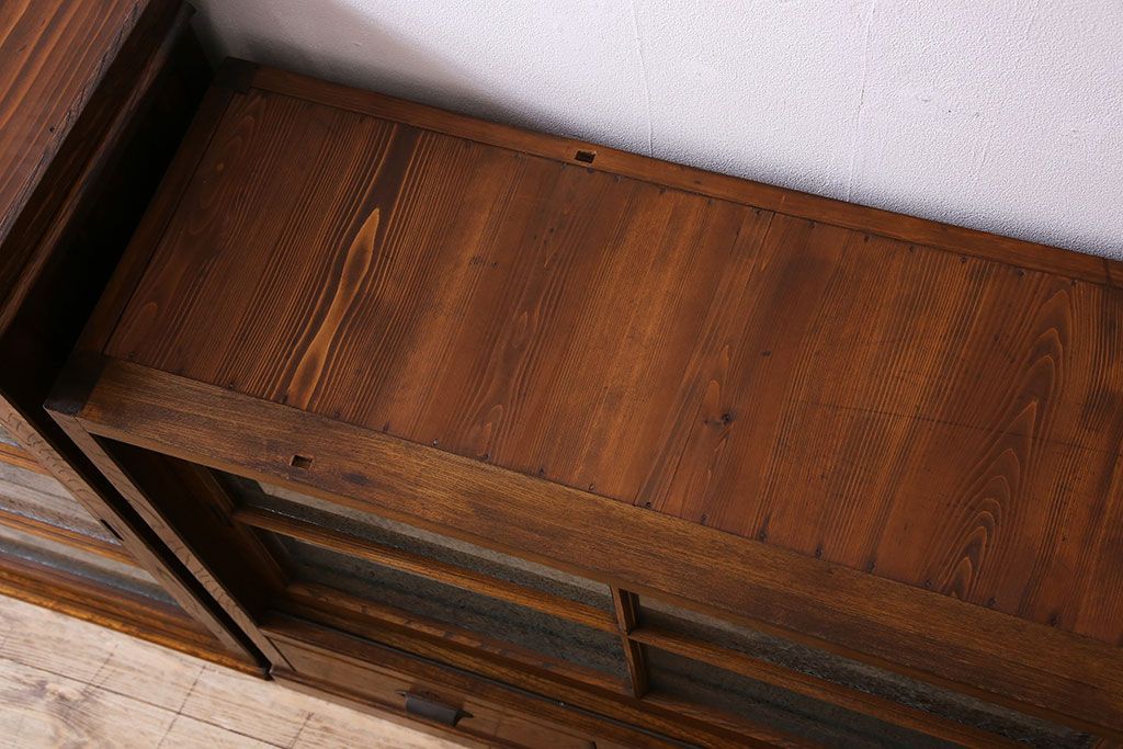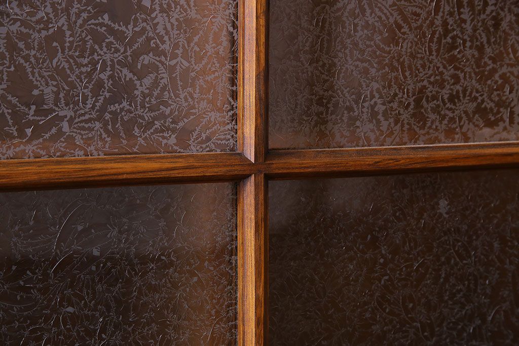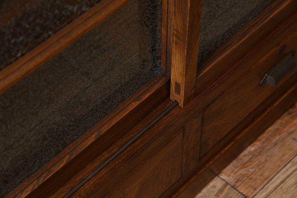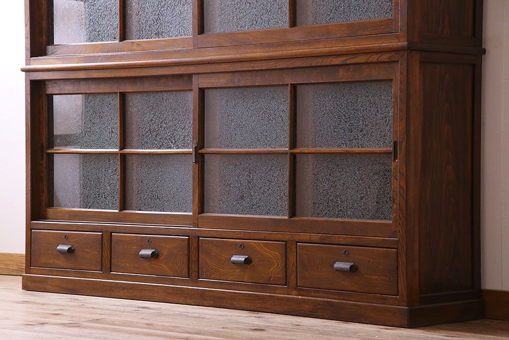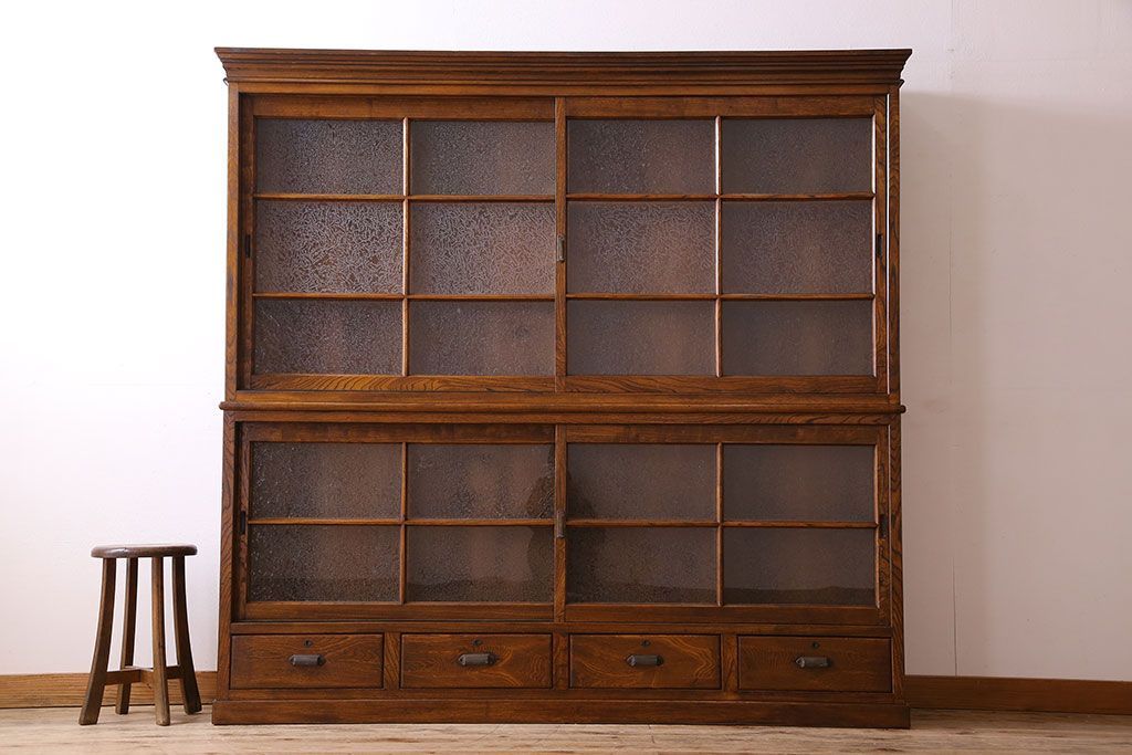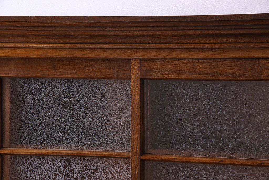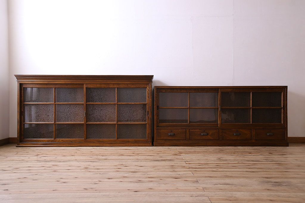 アンティーク家具 和製アンティーク 極上品!結霜ガラス引き戸の二段重ね収納棚(食器棚・水屋箪笥)