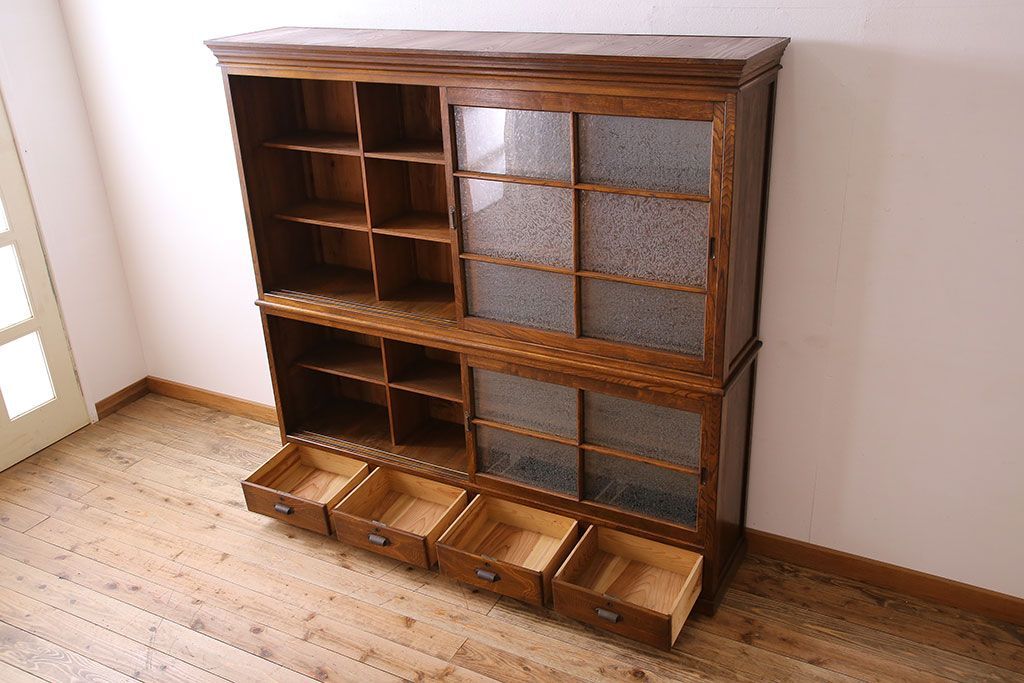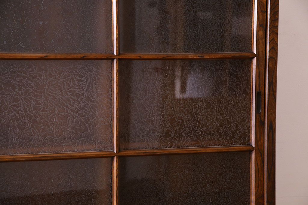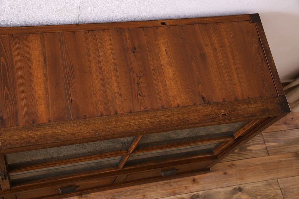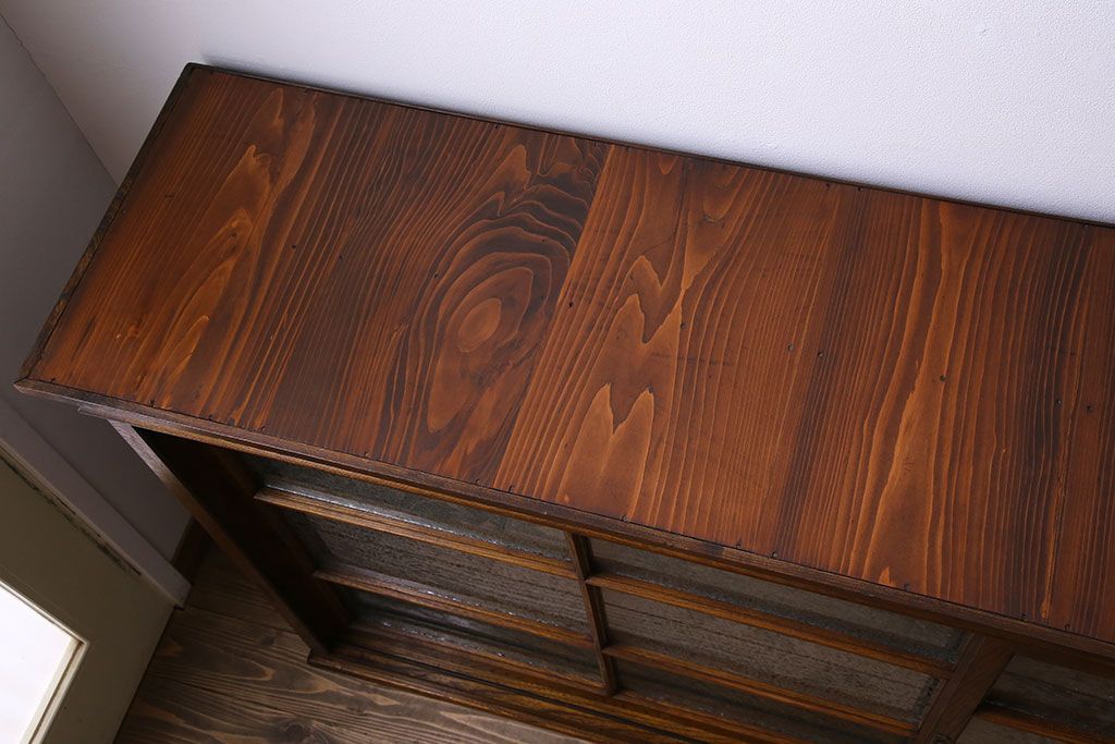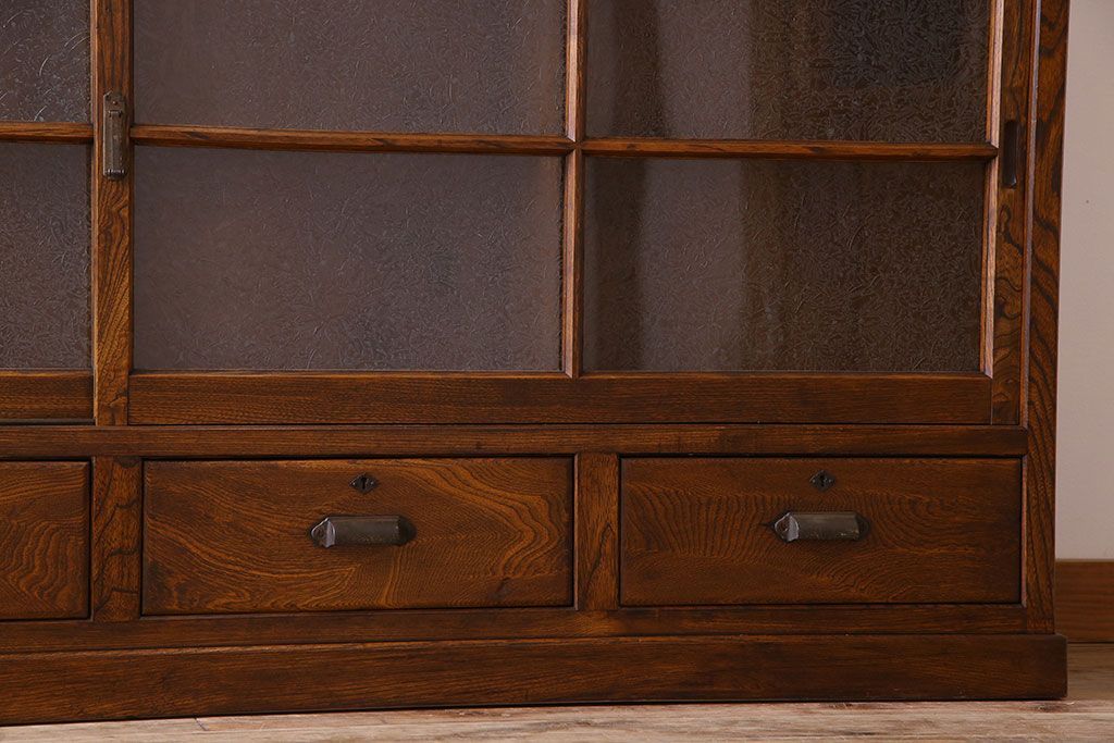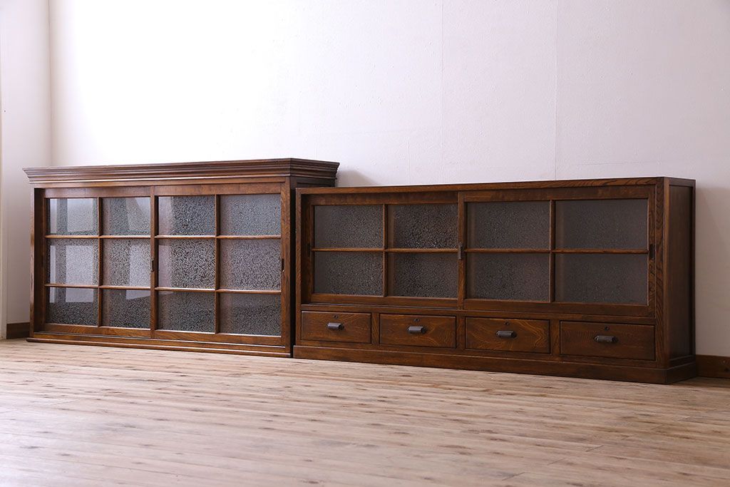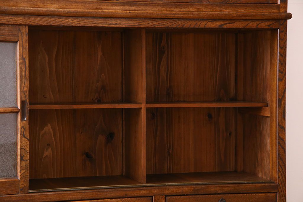 アンティーク家具 和製アンティーク 極上品!結霜ガラス引き戸の二段重ね収納棚(食器棚・水屋箪笥)