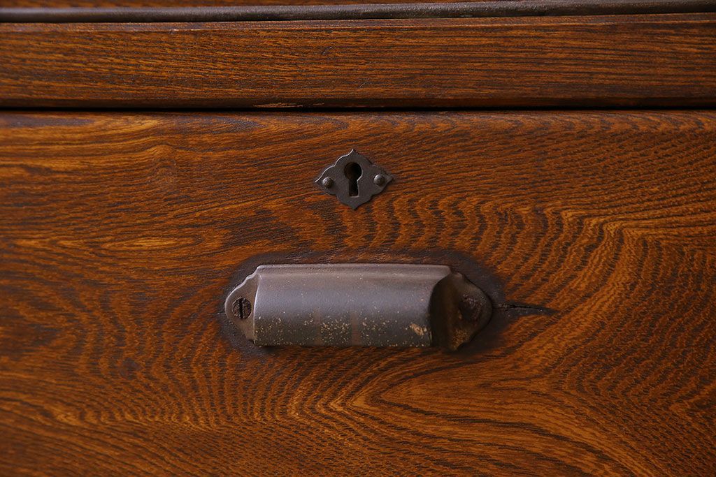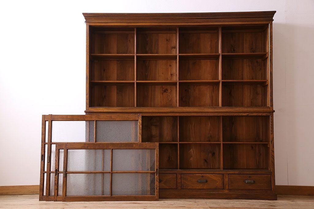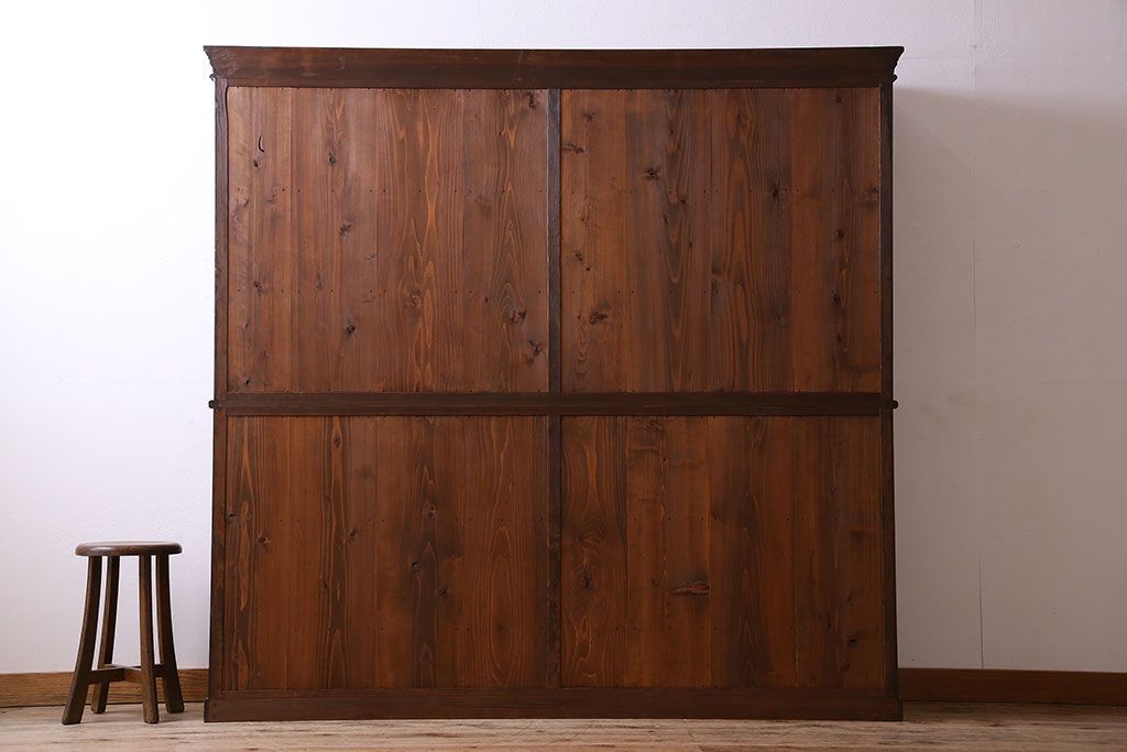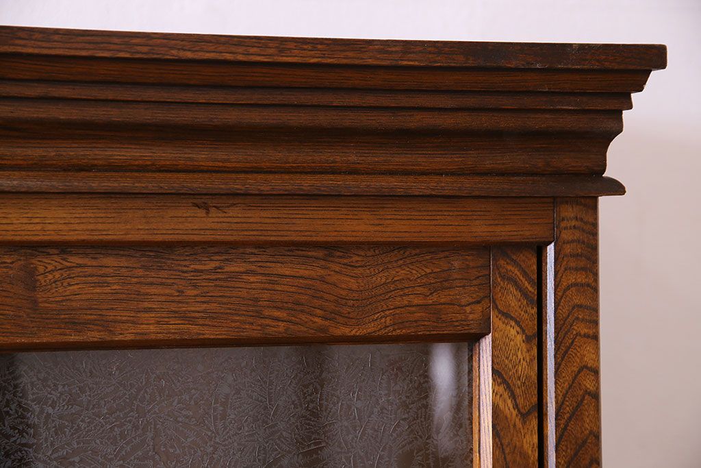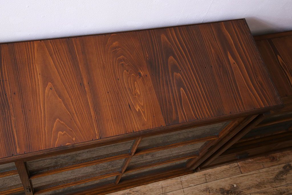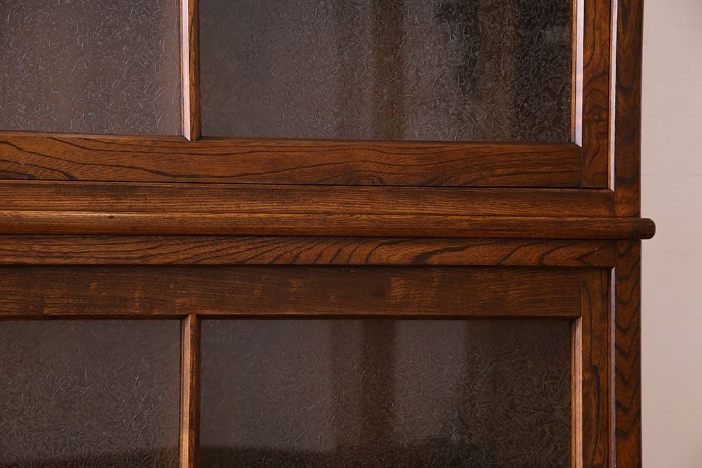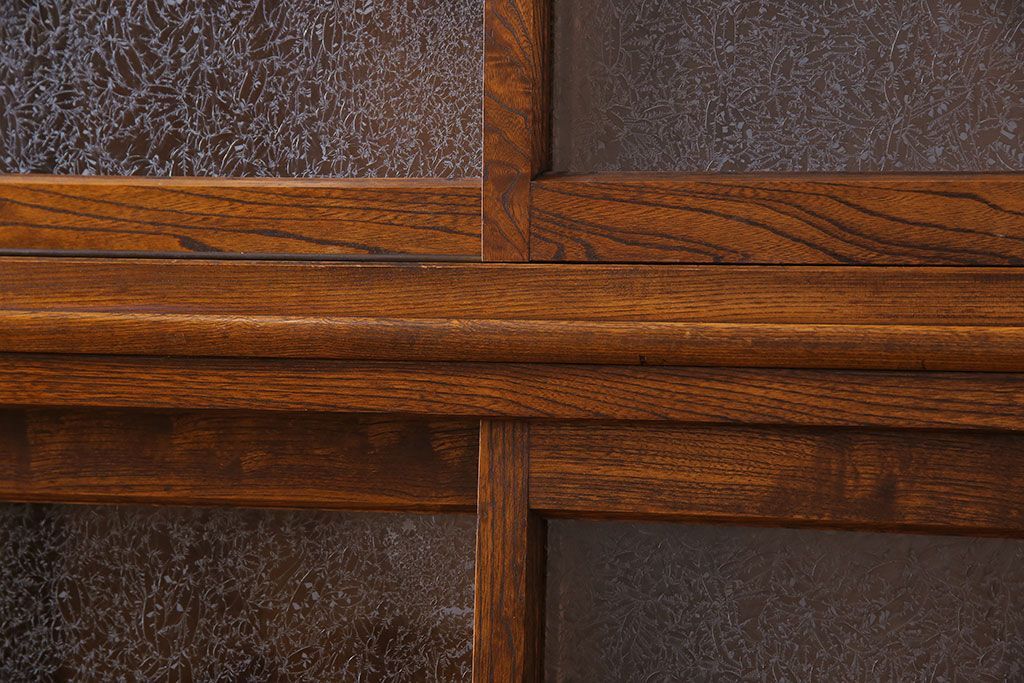 アンティーク家具 和製アンティーク 極上品!結霜ガラス引き戸の二段重ね収納棚(食器棚・水屋箪笥)