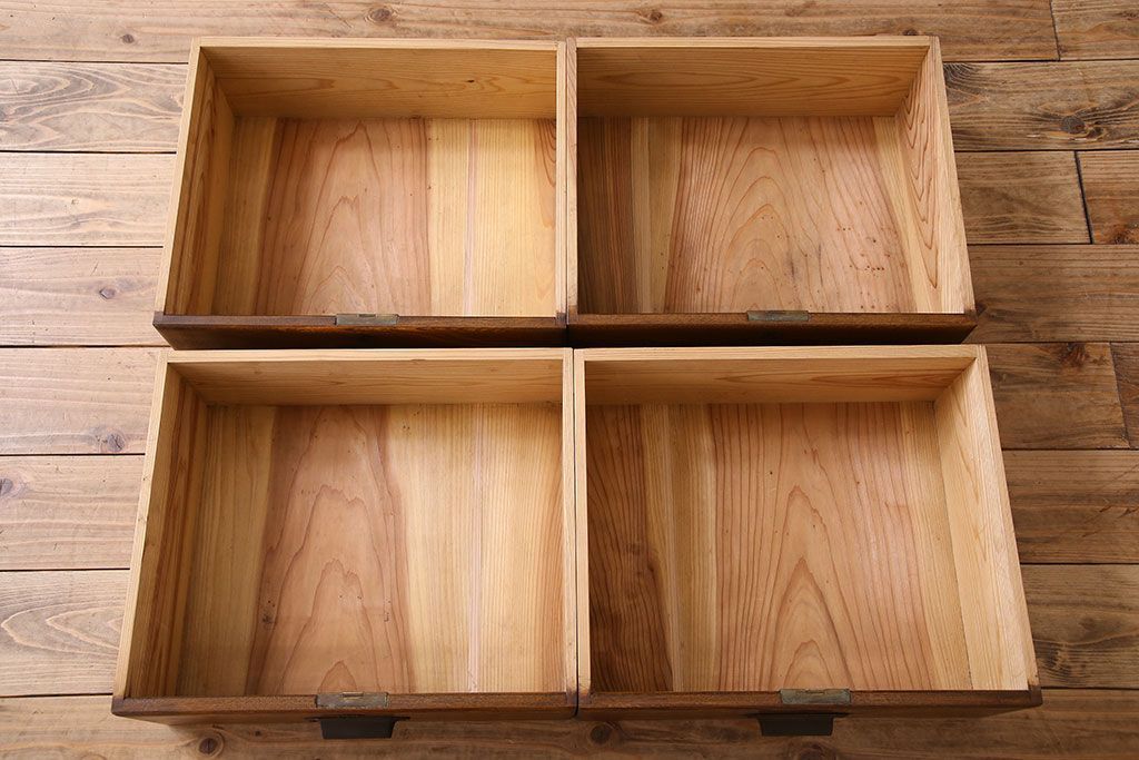 和製アンティーク 極上品!結霜ガラス引き戸の二段重ね収納棚(食器棚・水屋箪笥)です。