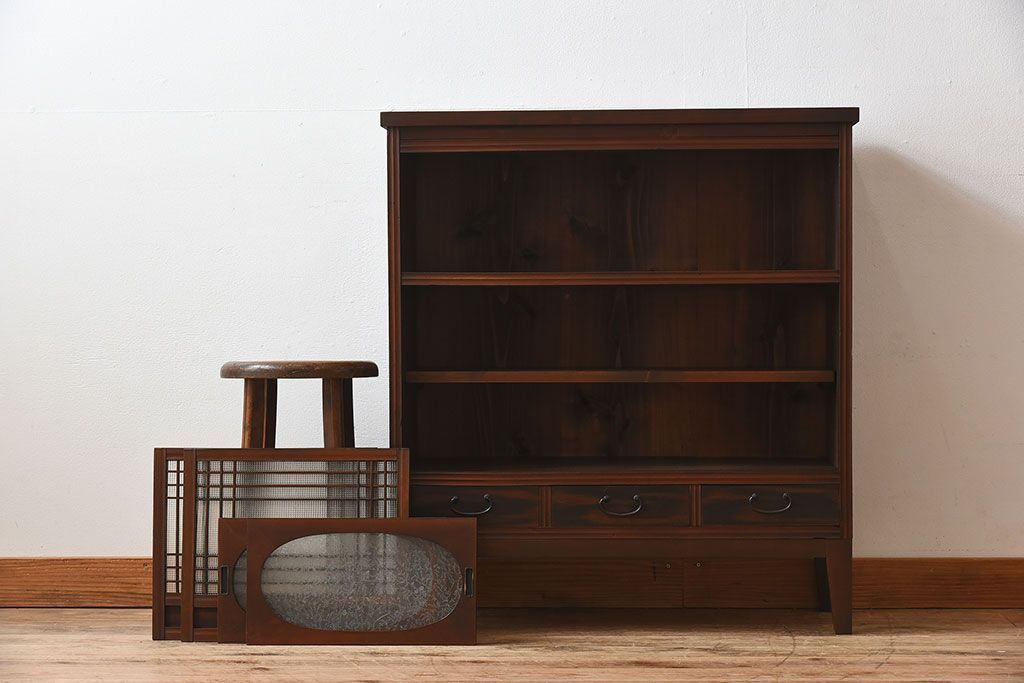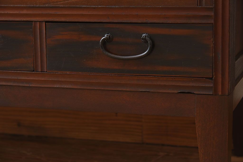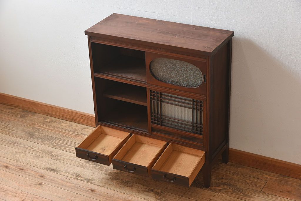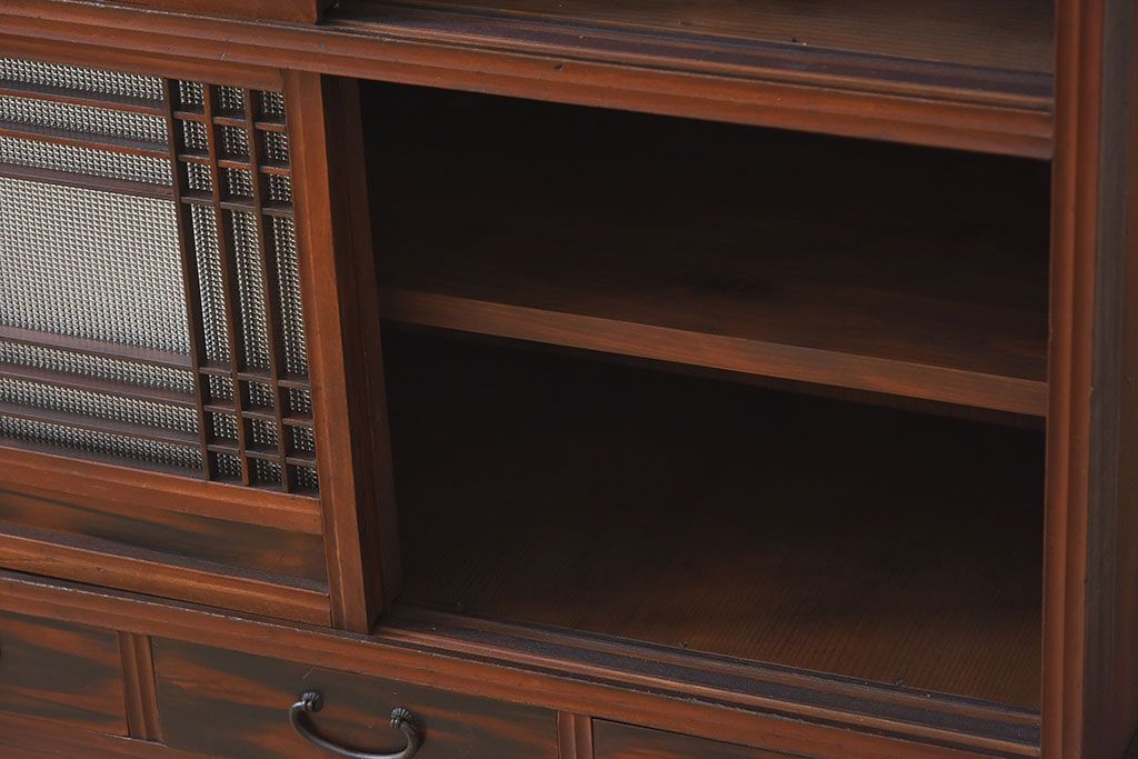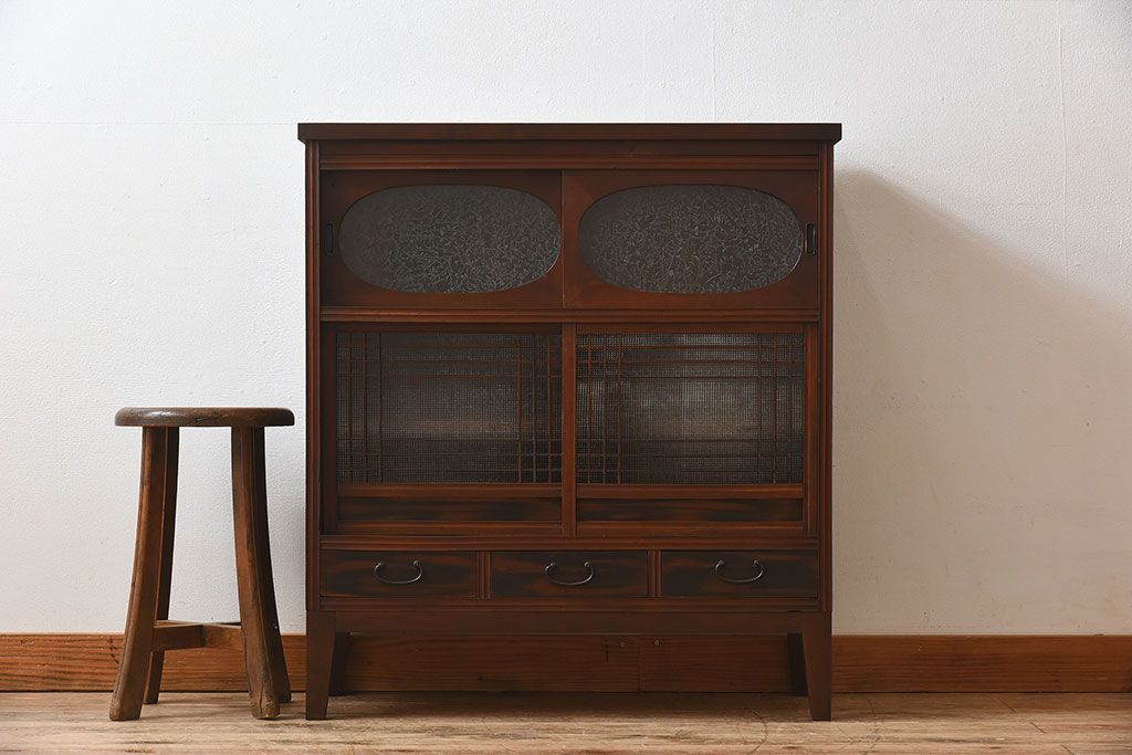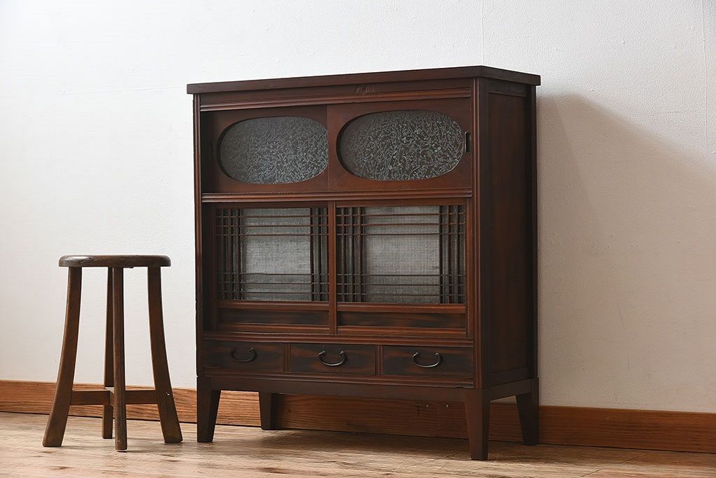 ラフジュ工房> キャビネット・戸棚> 食器棚・カップボード > アンティーク家具 和製アンティーク 引き戸がおしゃれなガラス戸棚