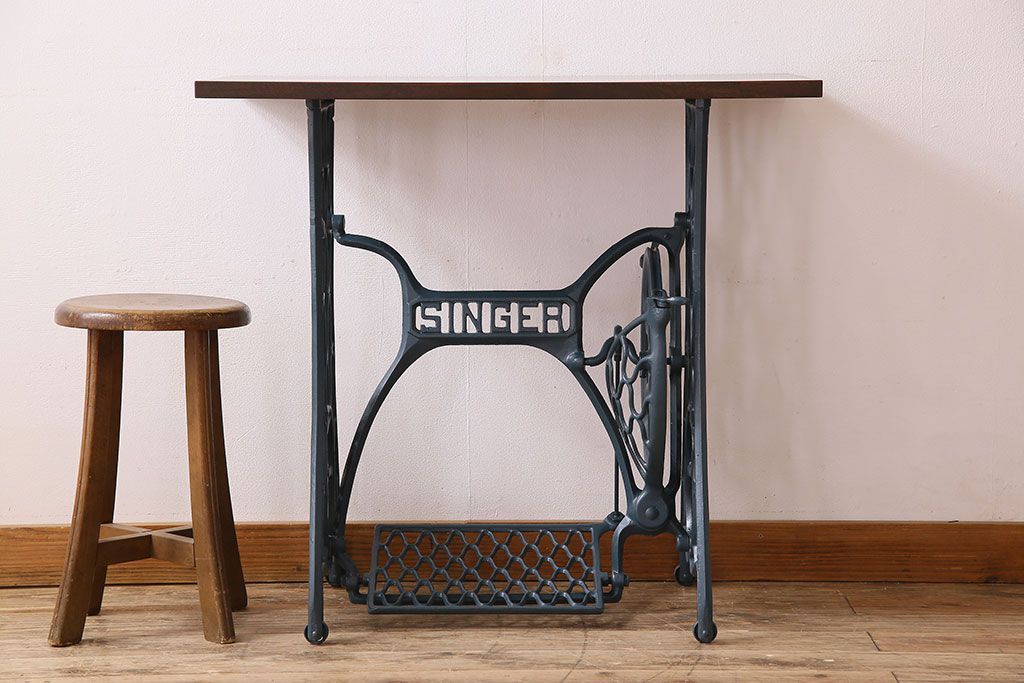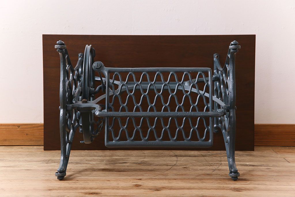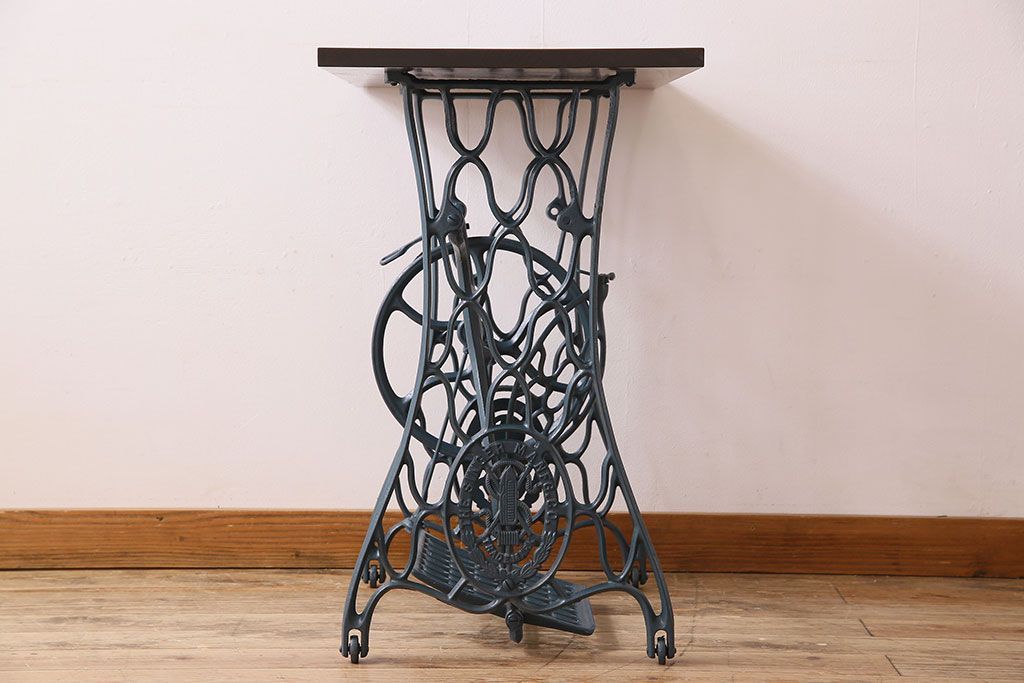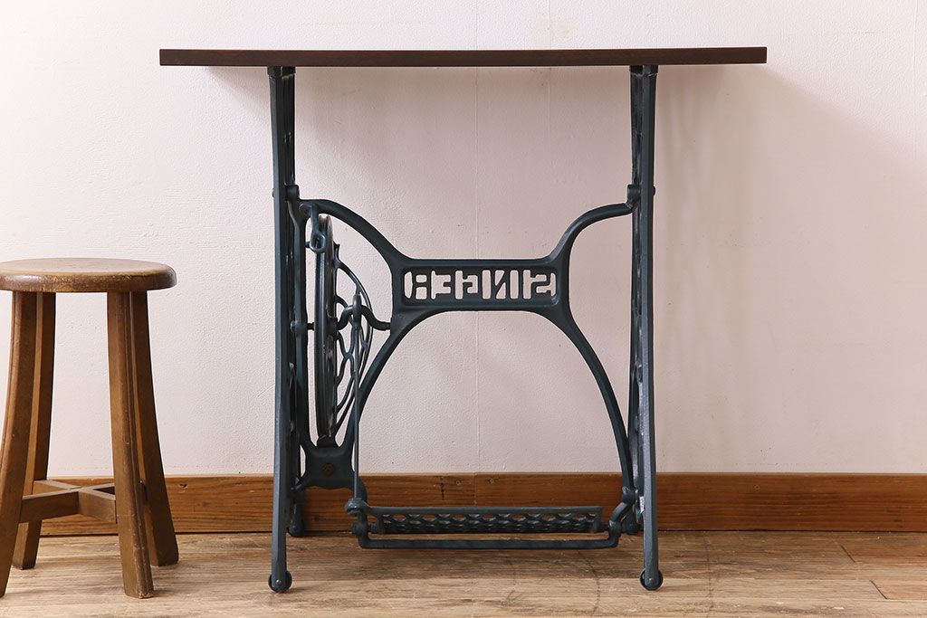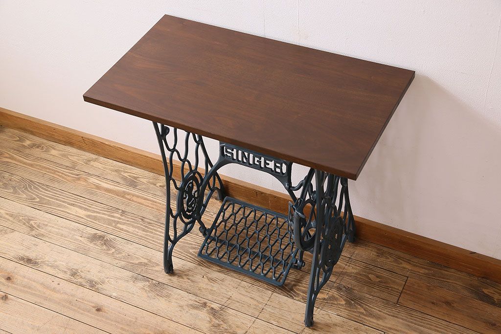 ラフジュ工房> テーブル> カフェテーブル・コーヒーテーブル > レトロ家具 アンティーク ネイビーペイントレッグ レトロなシンガー社製ミシンテーブル(シンガーミシン、ミシン台)(2)