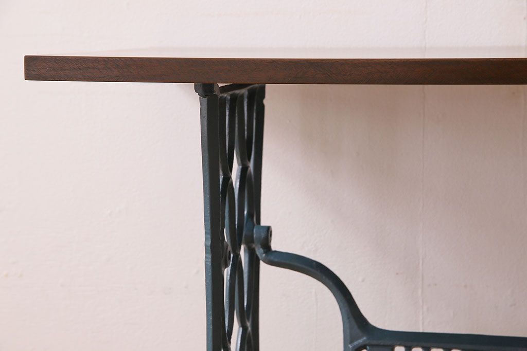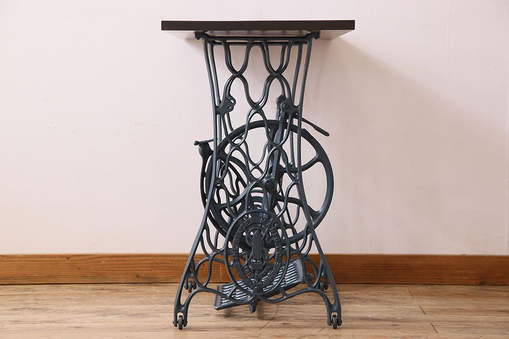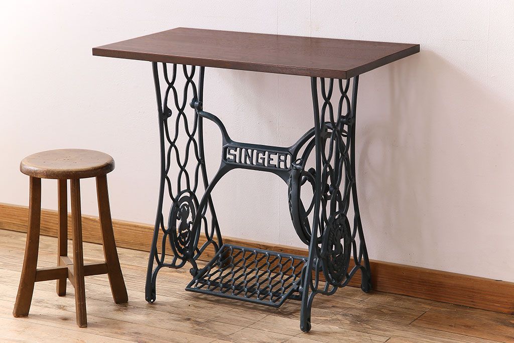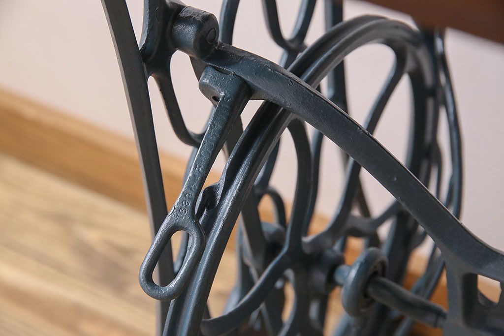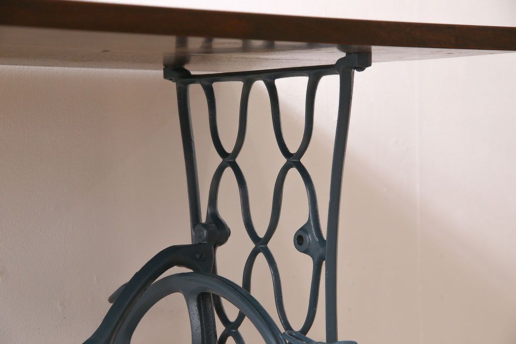ラフジュ工房> テーブル> カフェテーブル・コーヒーテーブル > レトロ家具 アンティーク ネイビーペイントレッグ レトロなシンガー社製ミシンテーブル(シンガーミシン、ミシン台)(2)