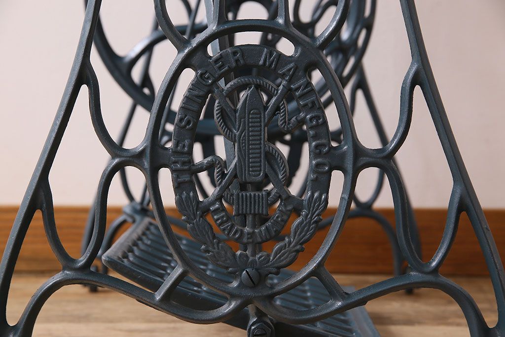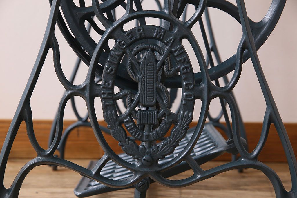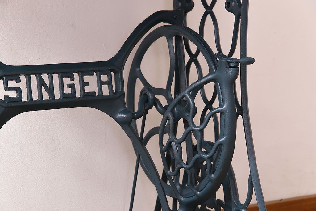 ラフジュ工房> テーブル> ミシンテーブル > レトロ家具 アンティーク ネイビーペイントレッグ レトロなシンガー社製ミシンテーブル(シンガーミシン、ミシン台)(2)