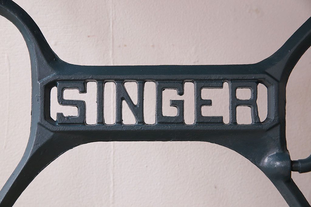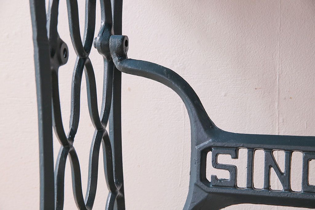ラフジュ工房> テーブル> 作業台 > レトロ家具 アンティーク ネイビーペイントレッグ レトロなシンガー社製ミシンテーブル(シンガーミシン、ミシン台)(2)